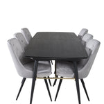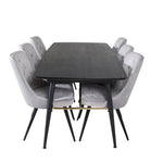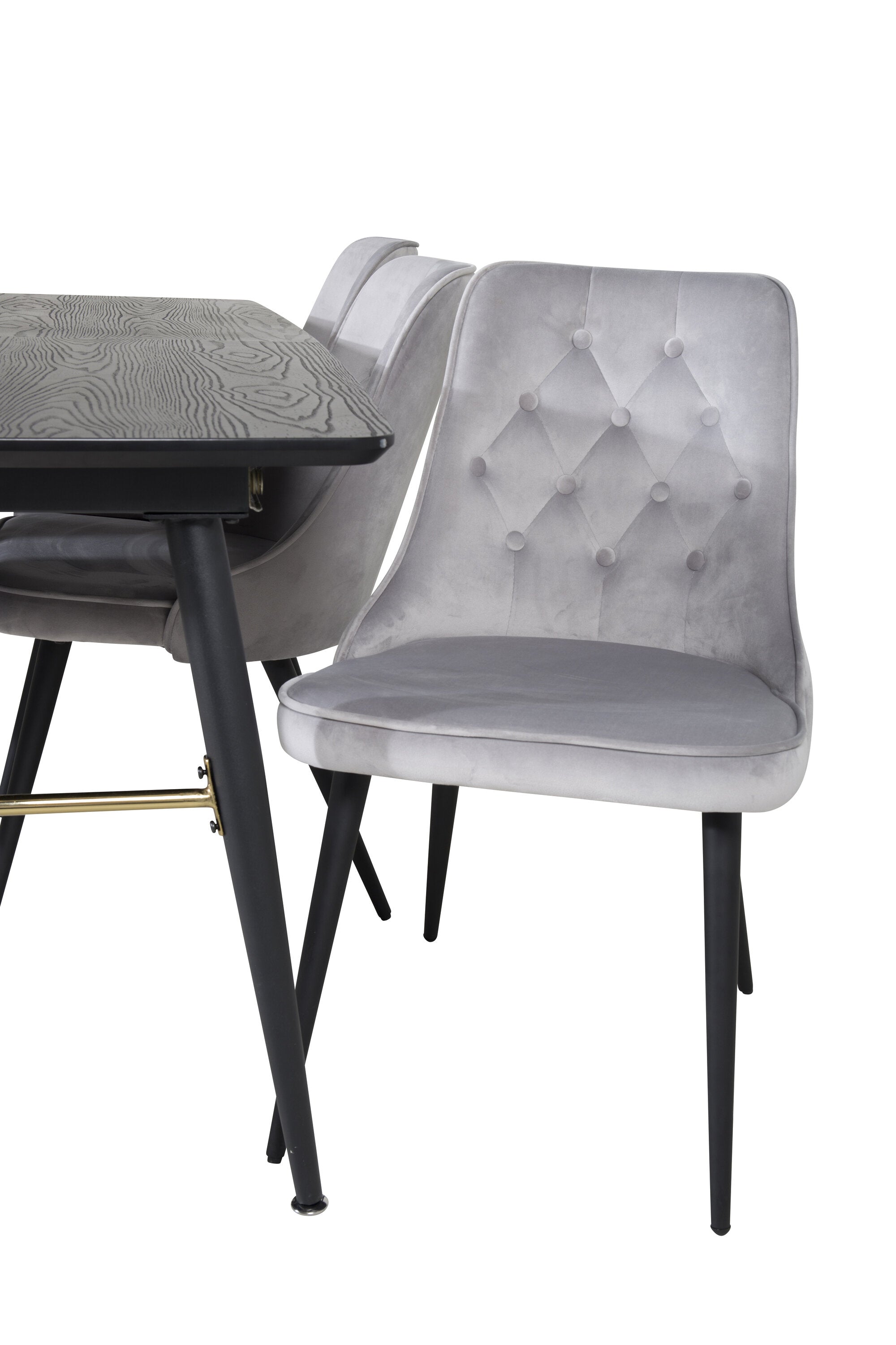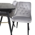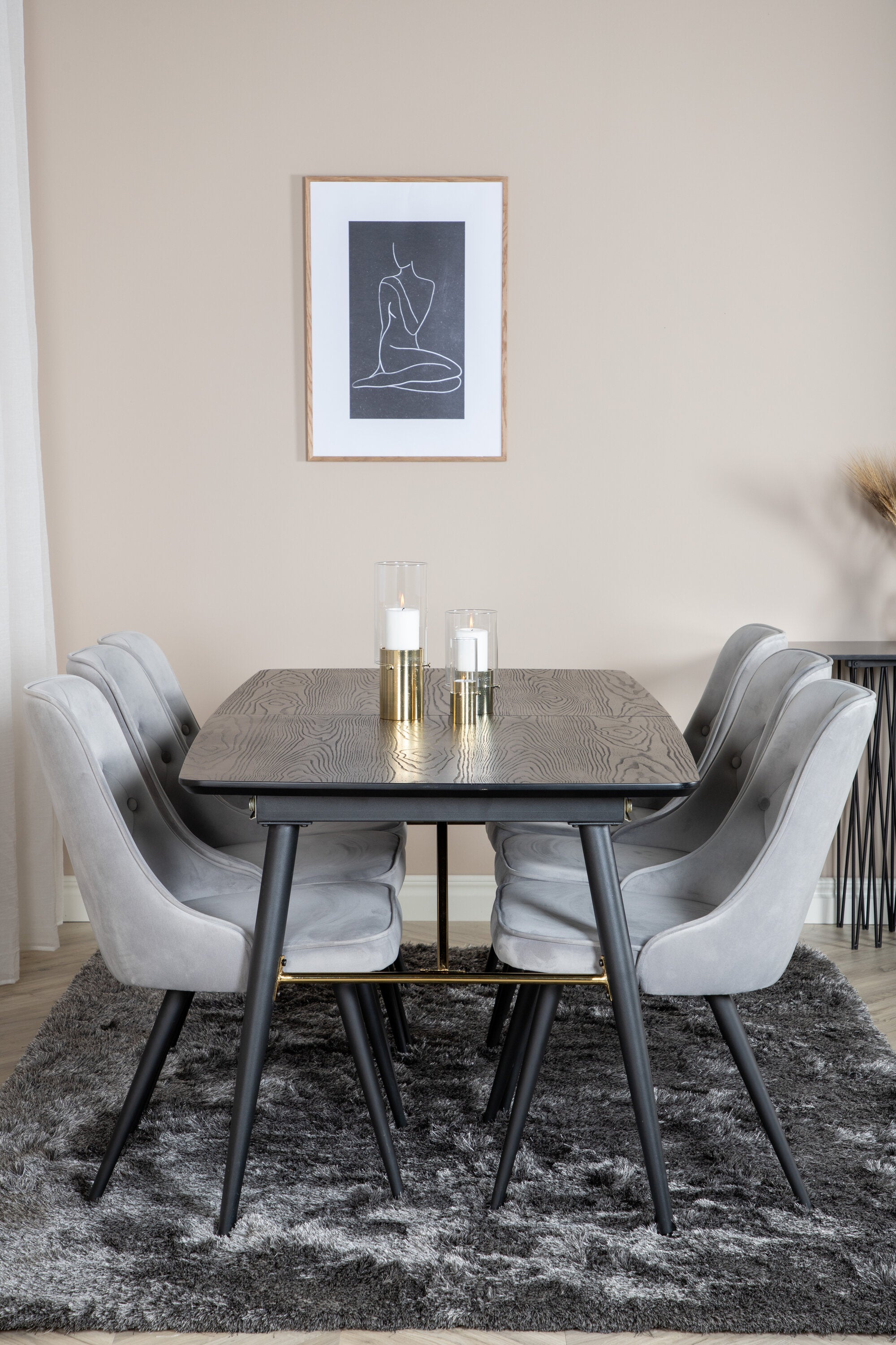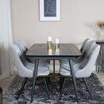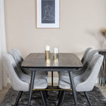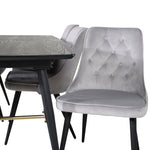 Nákup předem sestavené skupiny potravin je jak trendově bezpečný, tak praktický! Zde kombinujeme náš jídelní stůl Gold s našimi šedými jídelními židlemi Velvet vhodnými k sezení. Stolek má ve spodní části luxusní zlaté detaily a je rozkládací. Nechte srdce domova charakterizovat vaši novou, poutavou skupinu potravin.