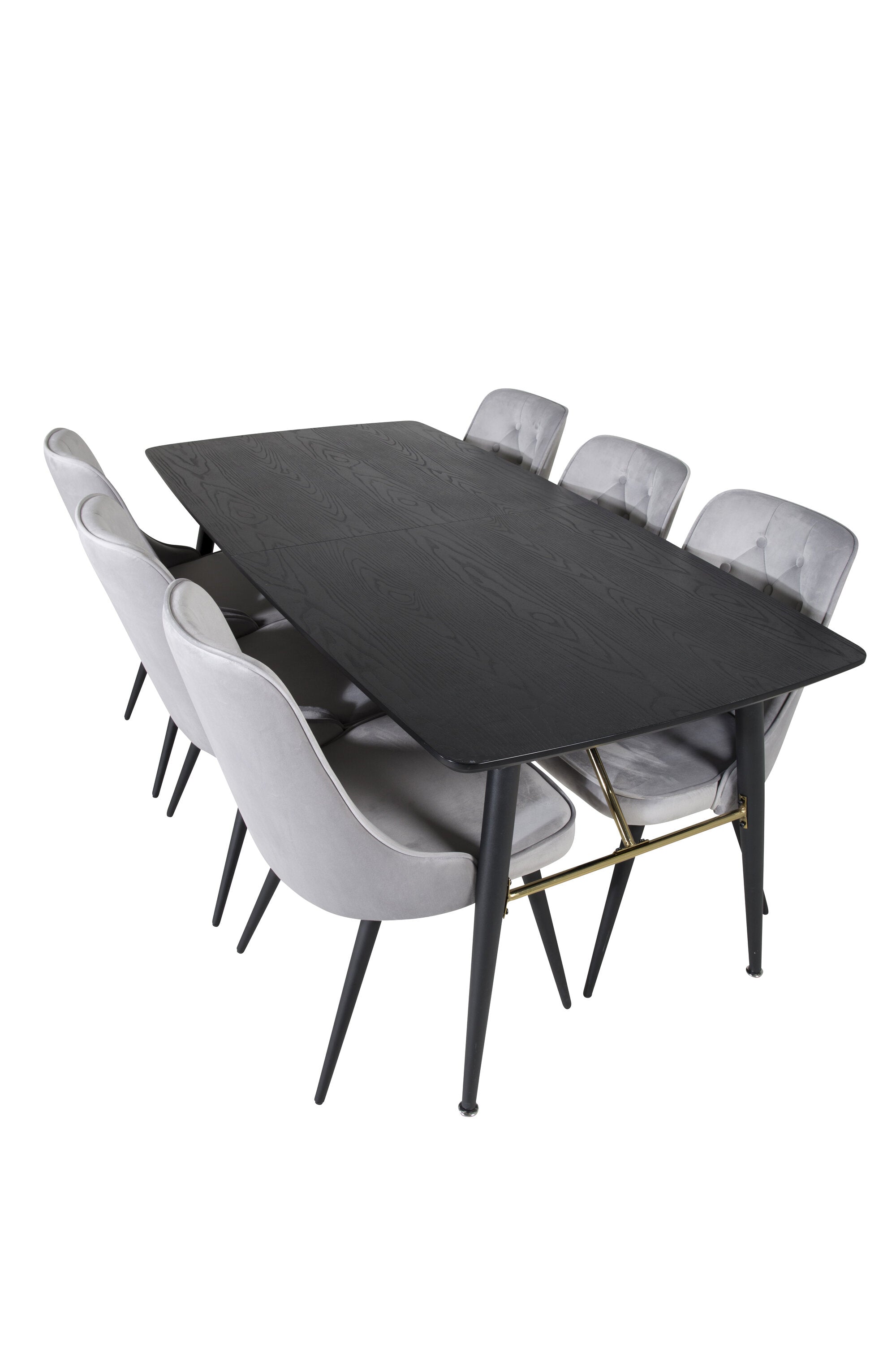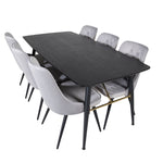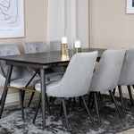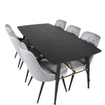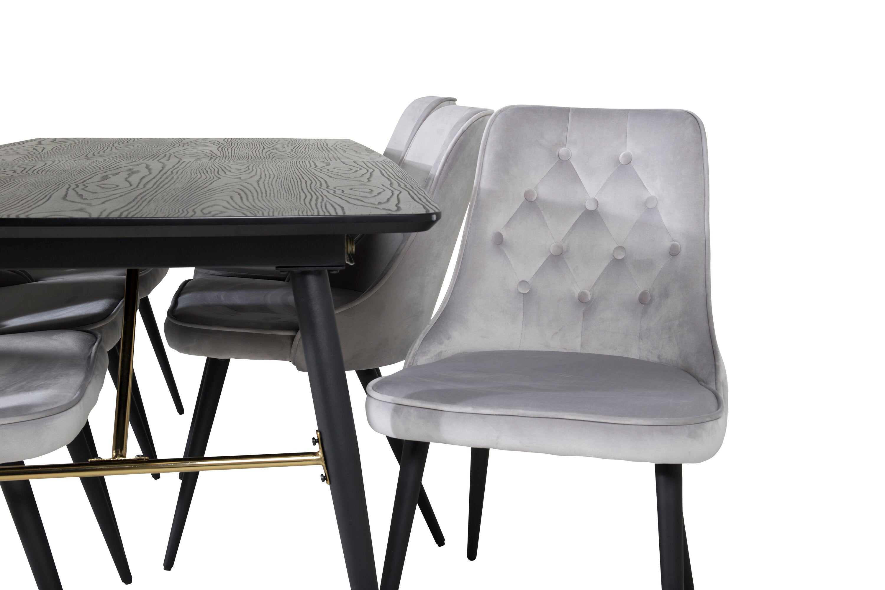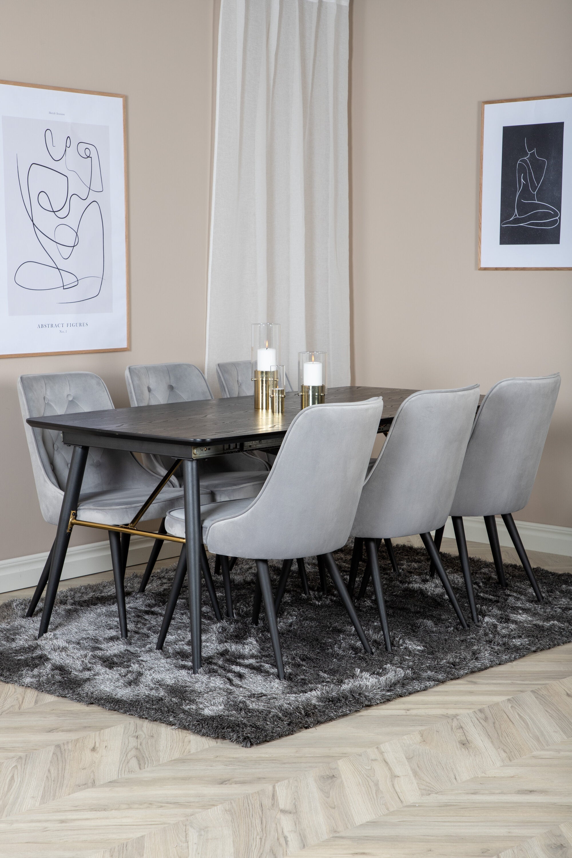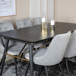 Zlatý rozkládací stůl - 180/220*85*H76 Černá dýha - Černé nohy - Mosazné detaily+Velvet Deluxe Jídelní židle - Světle šedá / Černá_6