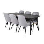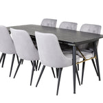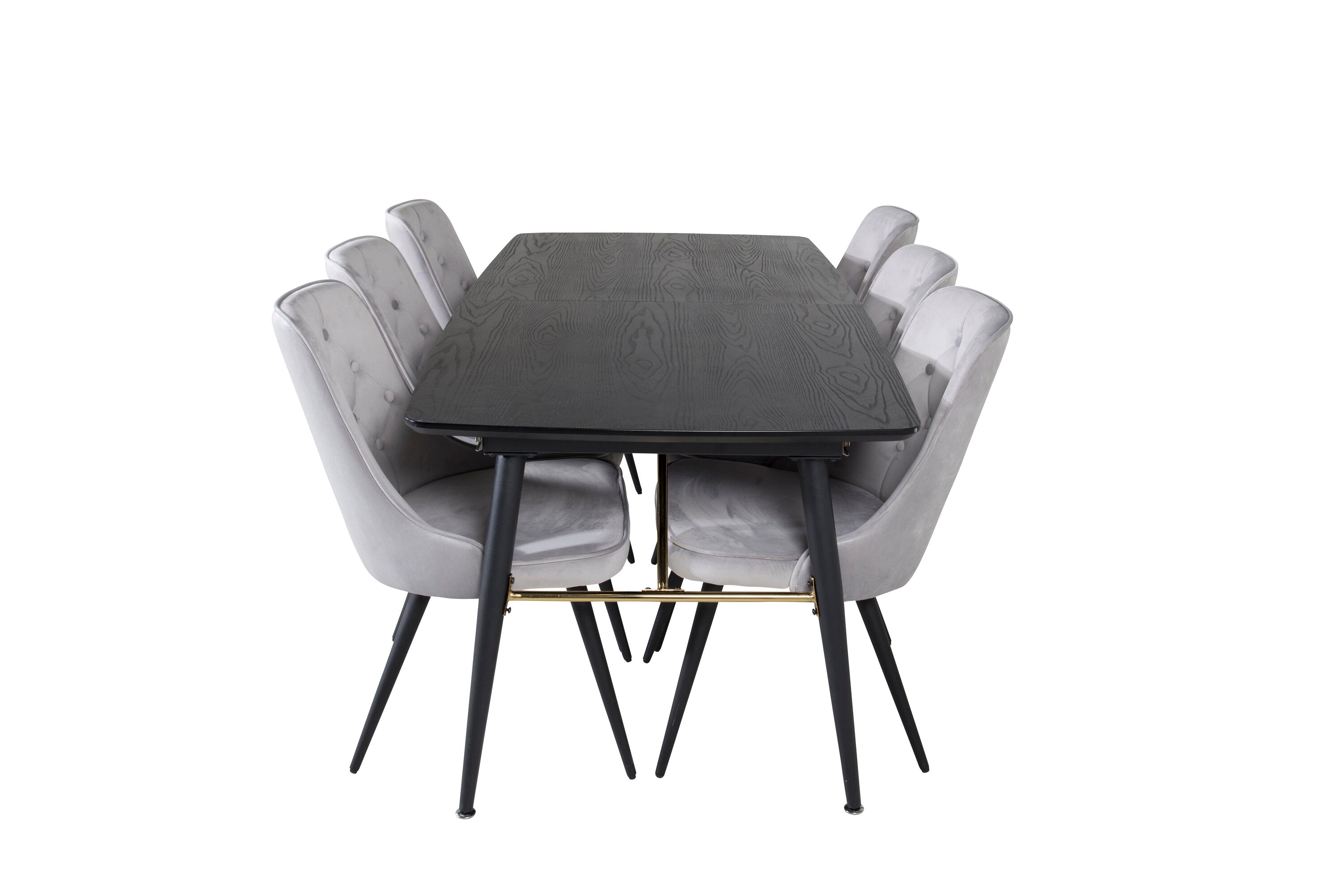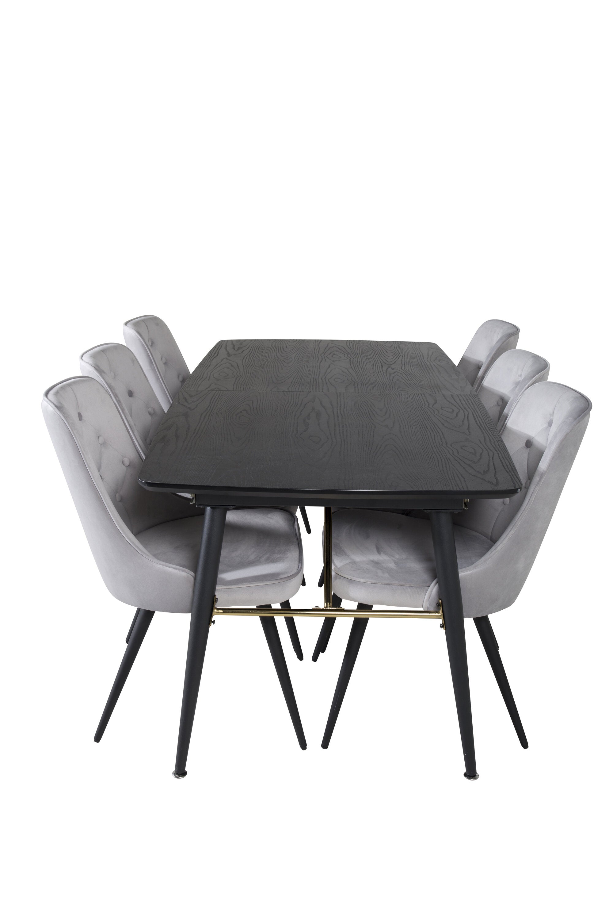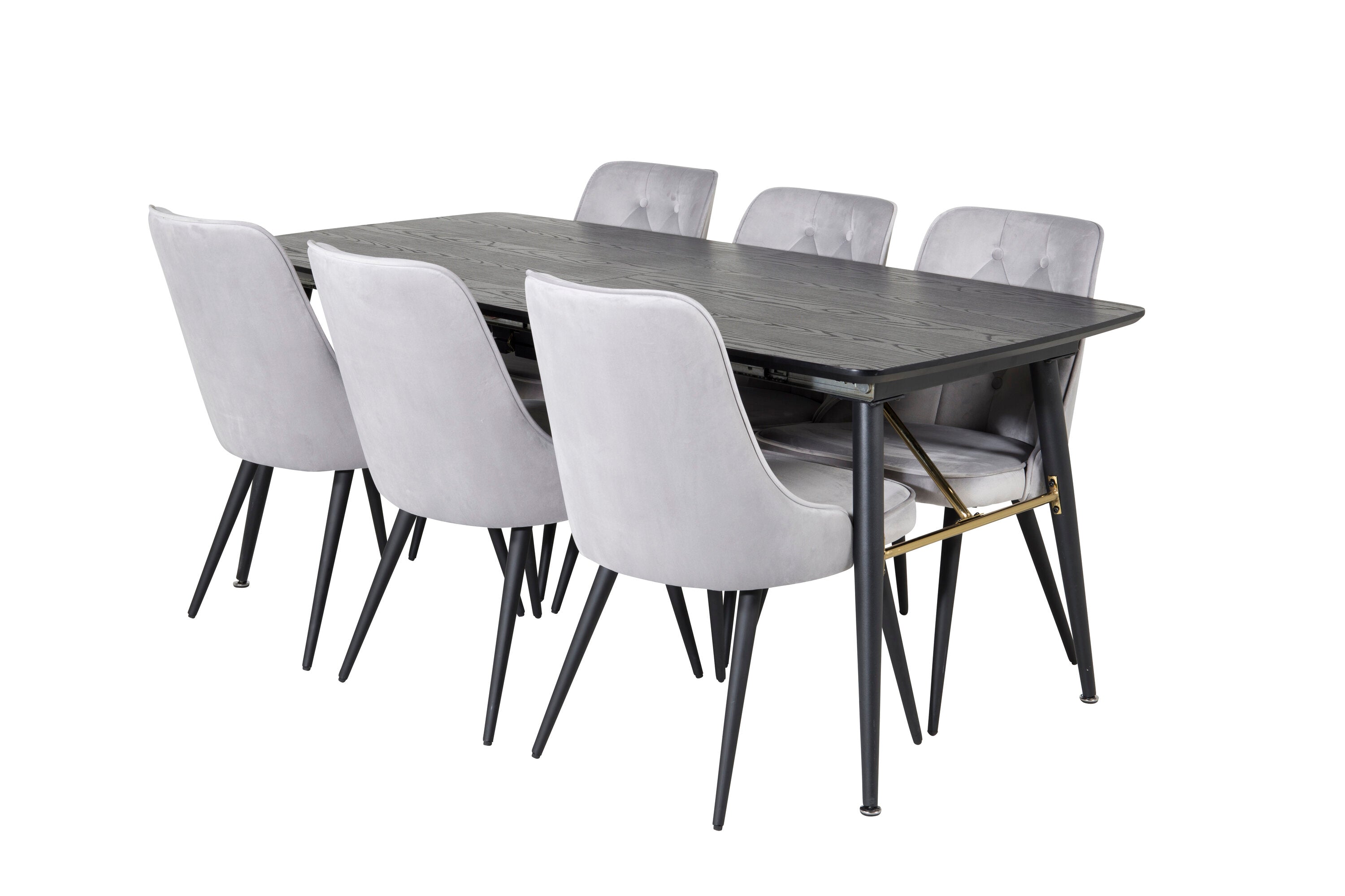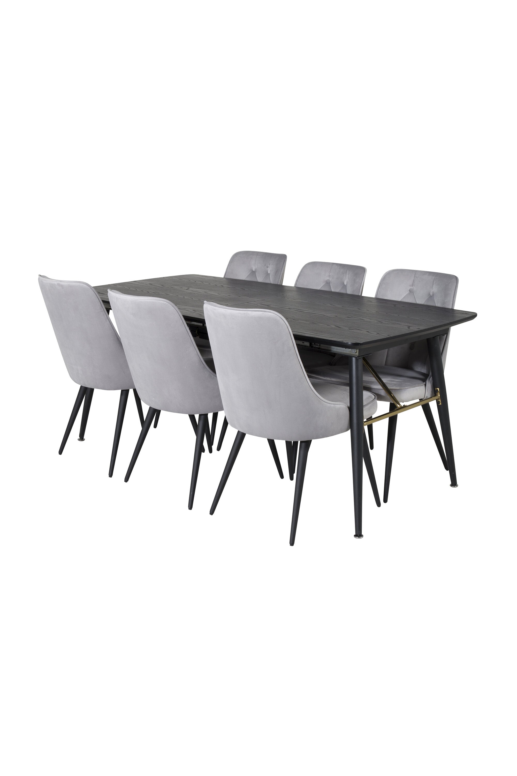 Zlatý rozkládací stůl - 180/220*85*H76 Černá dýha - Černé nohy - Mosazné detaily+Velvet Deluxe Jídelní židle - Světle šedá / Černá_6