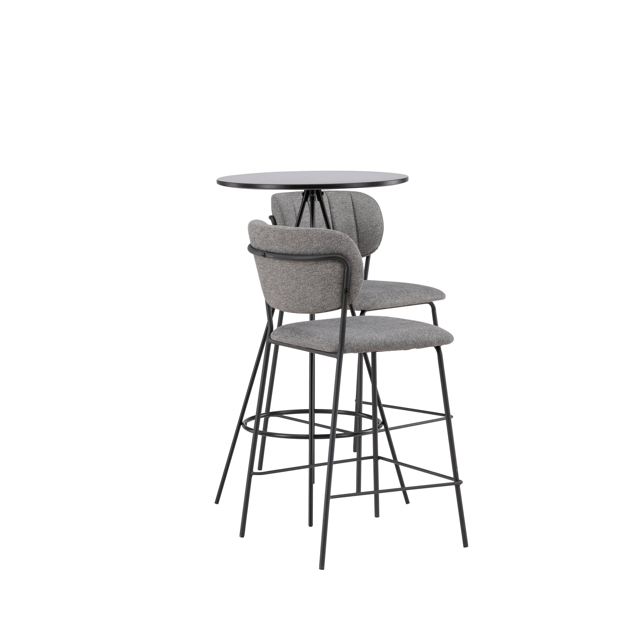 Bistro barový stůl φ60 – černý / MDF s dýhou + křeslo Bell Bar – černá / šedá látka _2