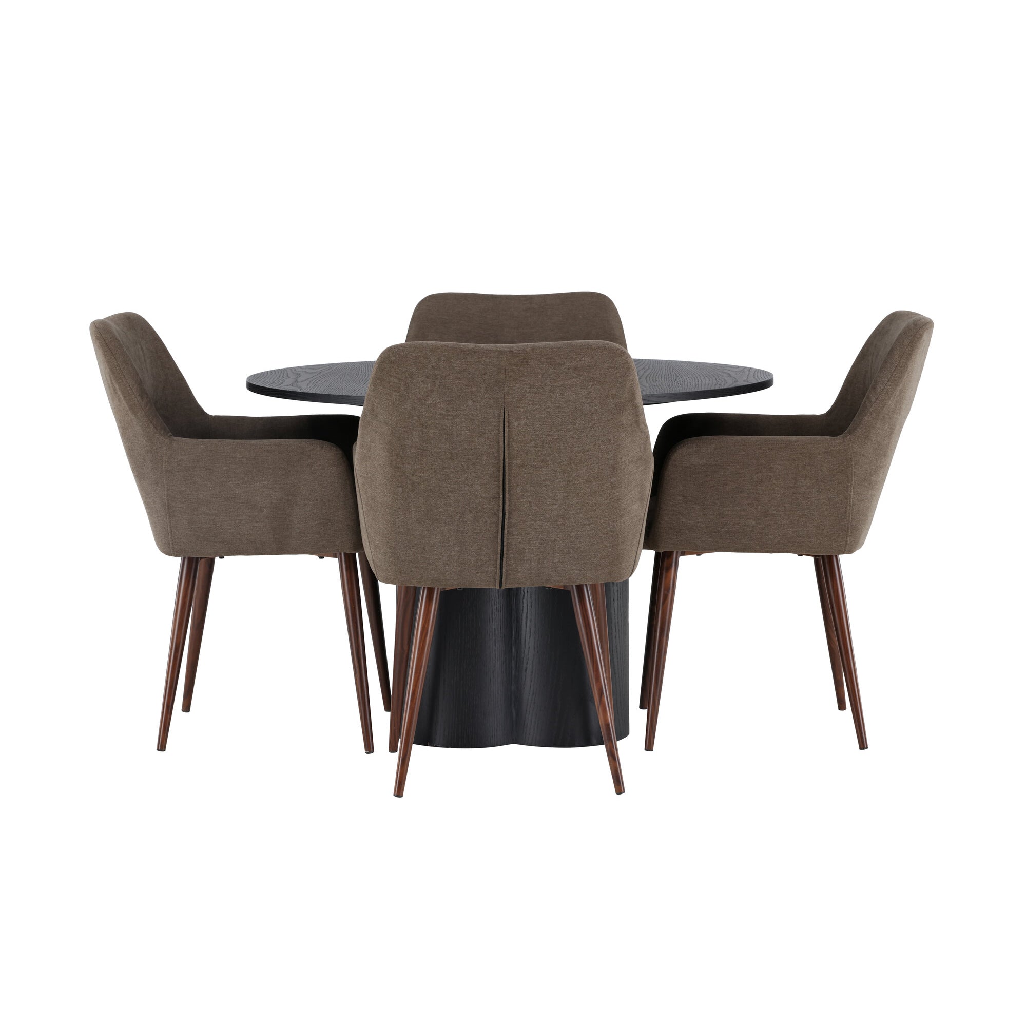 Jídelní stůl Matilda φ130 - černá / černá MDF s dýhou + jídelní židle Rosie - černá / tmavě šedá látka _4