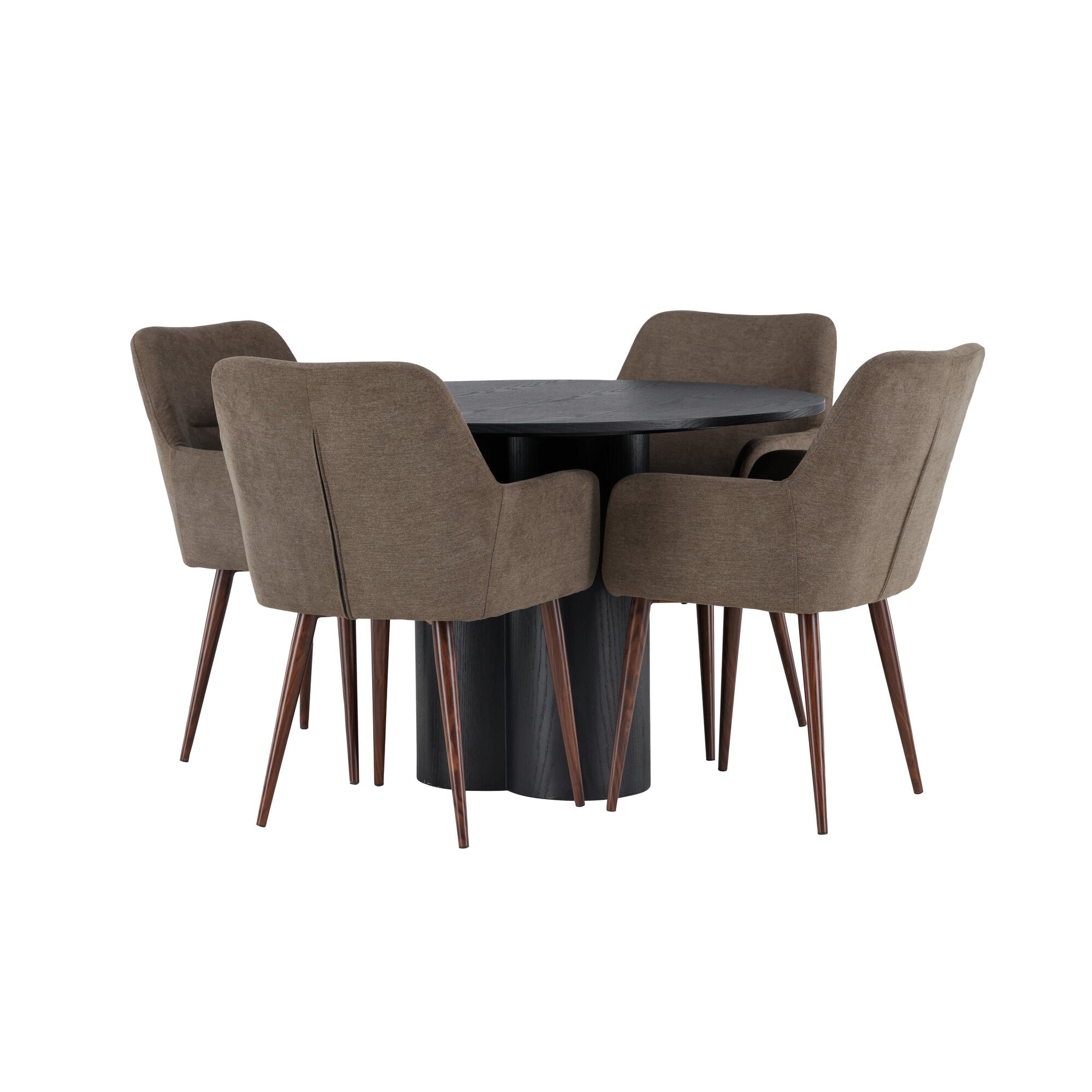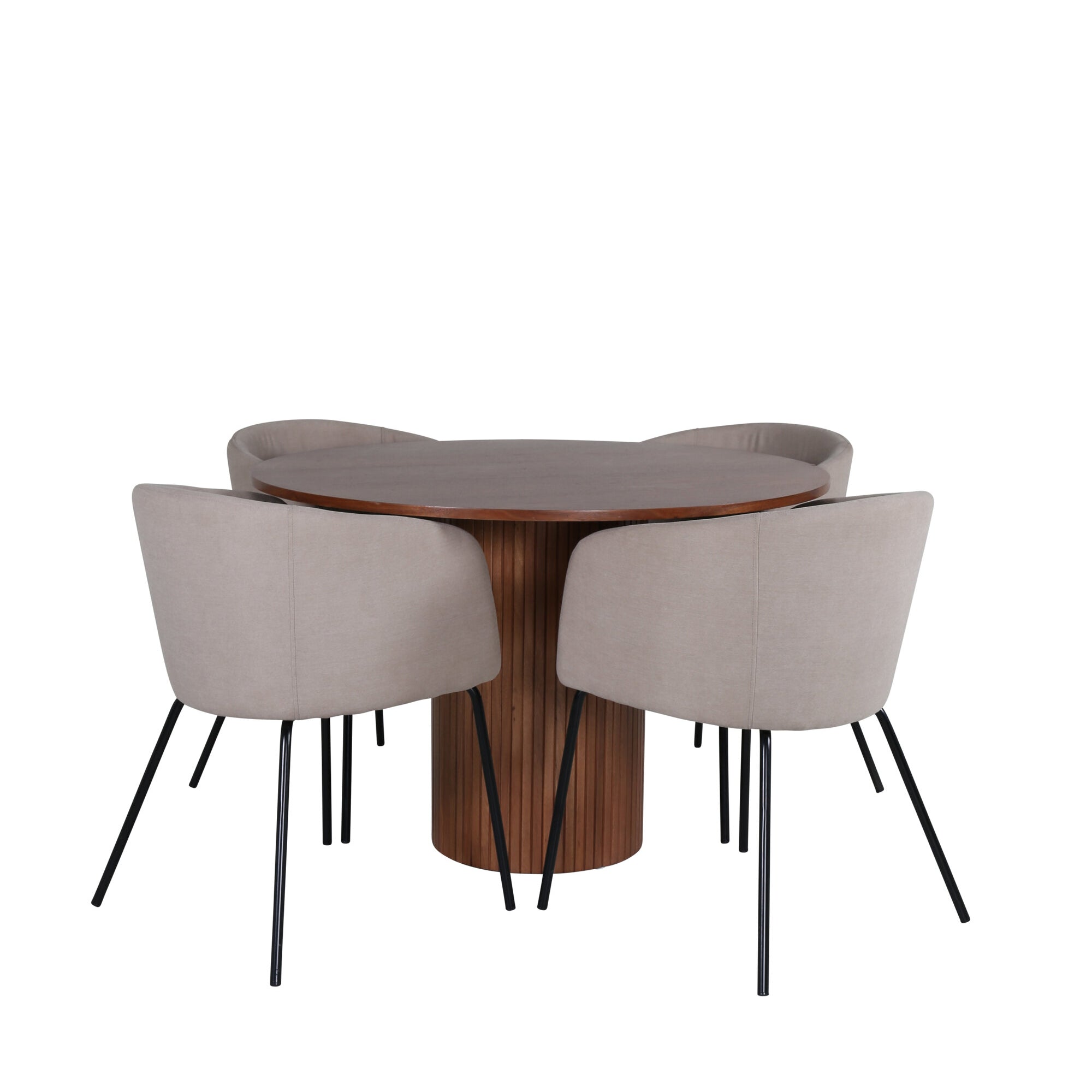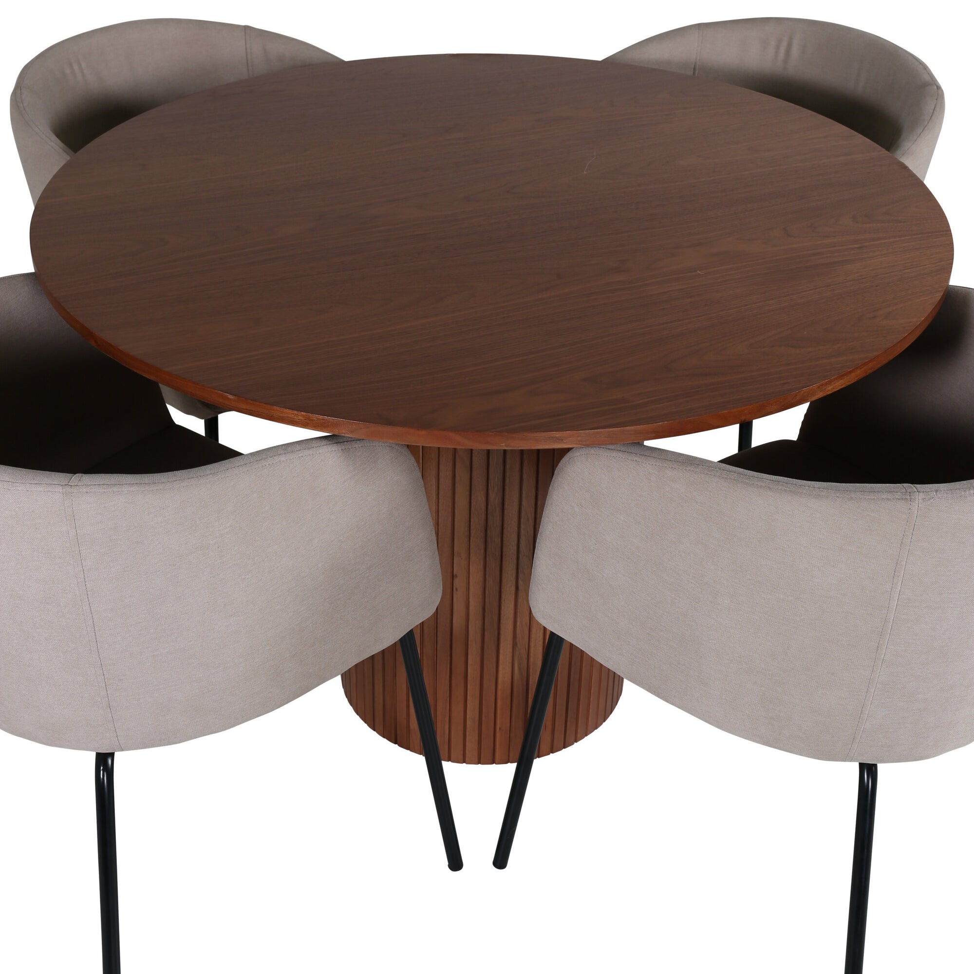Bianca kulatý jídelní stůl - ořech / černá dýha + židle Berit - černá / béžová látka (polyesterové prádlo)_4