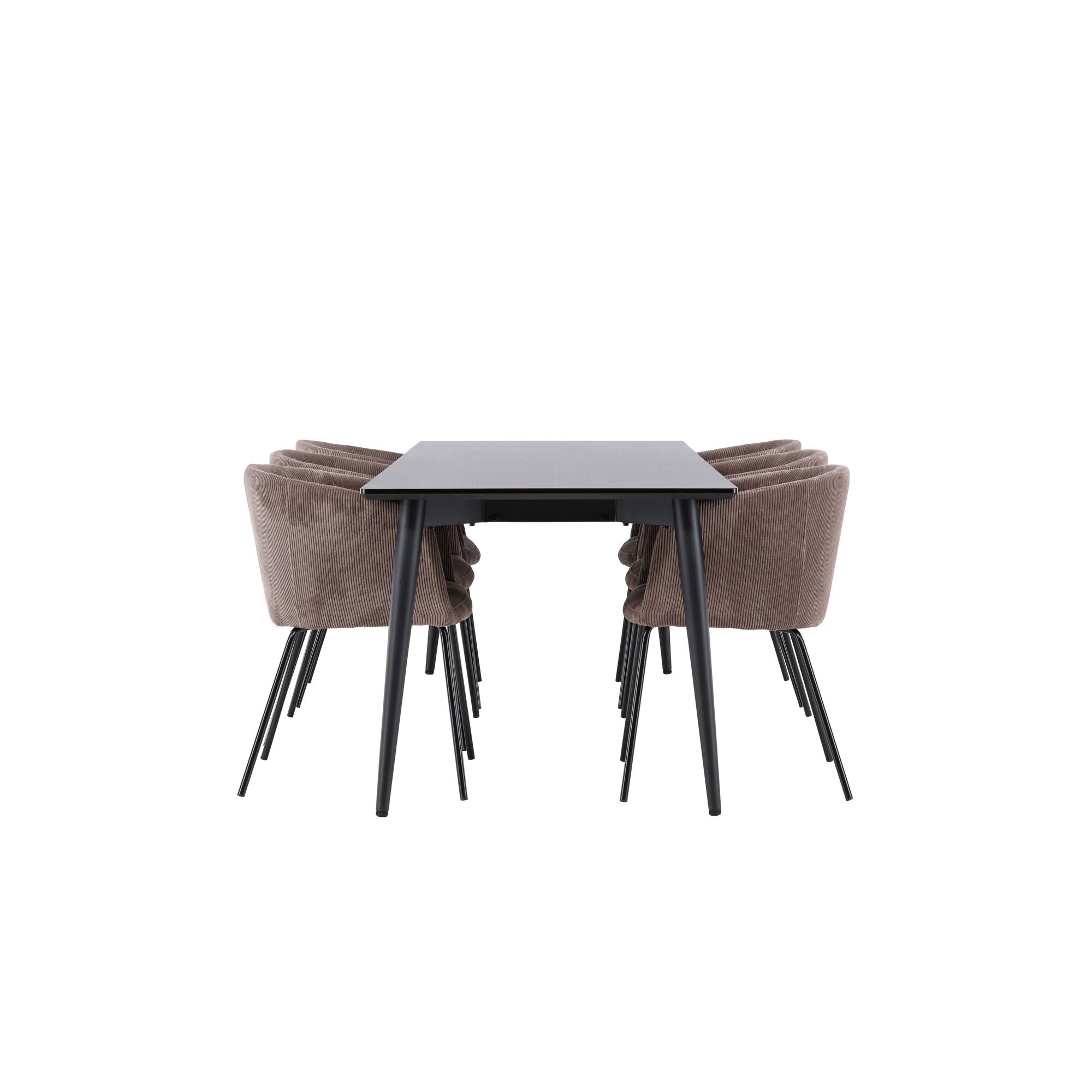 Jídelní stůl Olivia - černá / černá dýha + jídelní židle zítra - tmavý ořech / tmavě šedá / hnědá látka _4