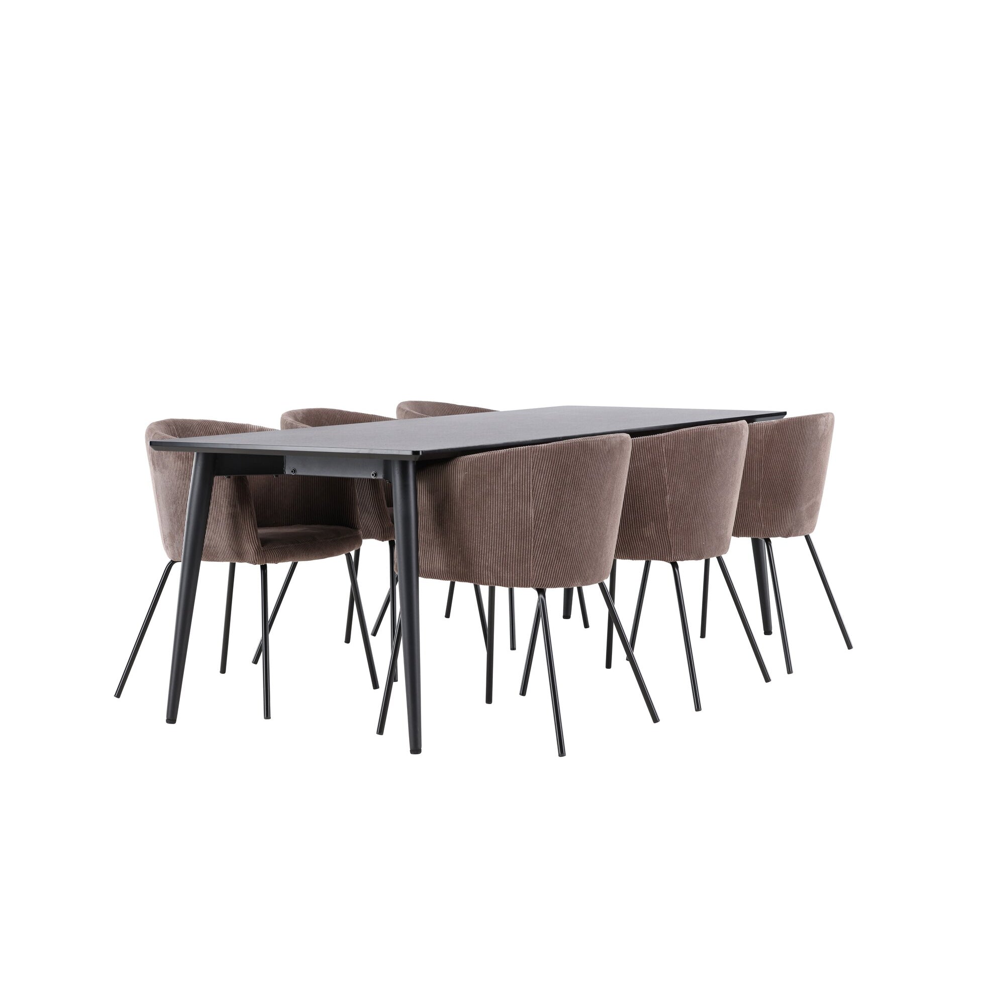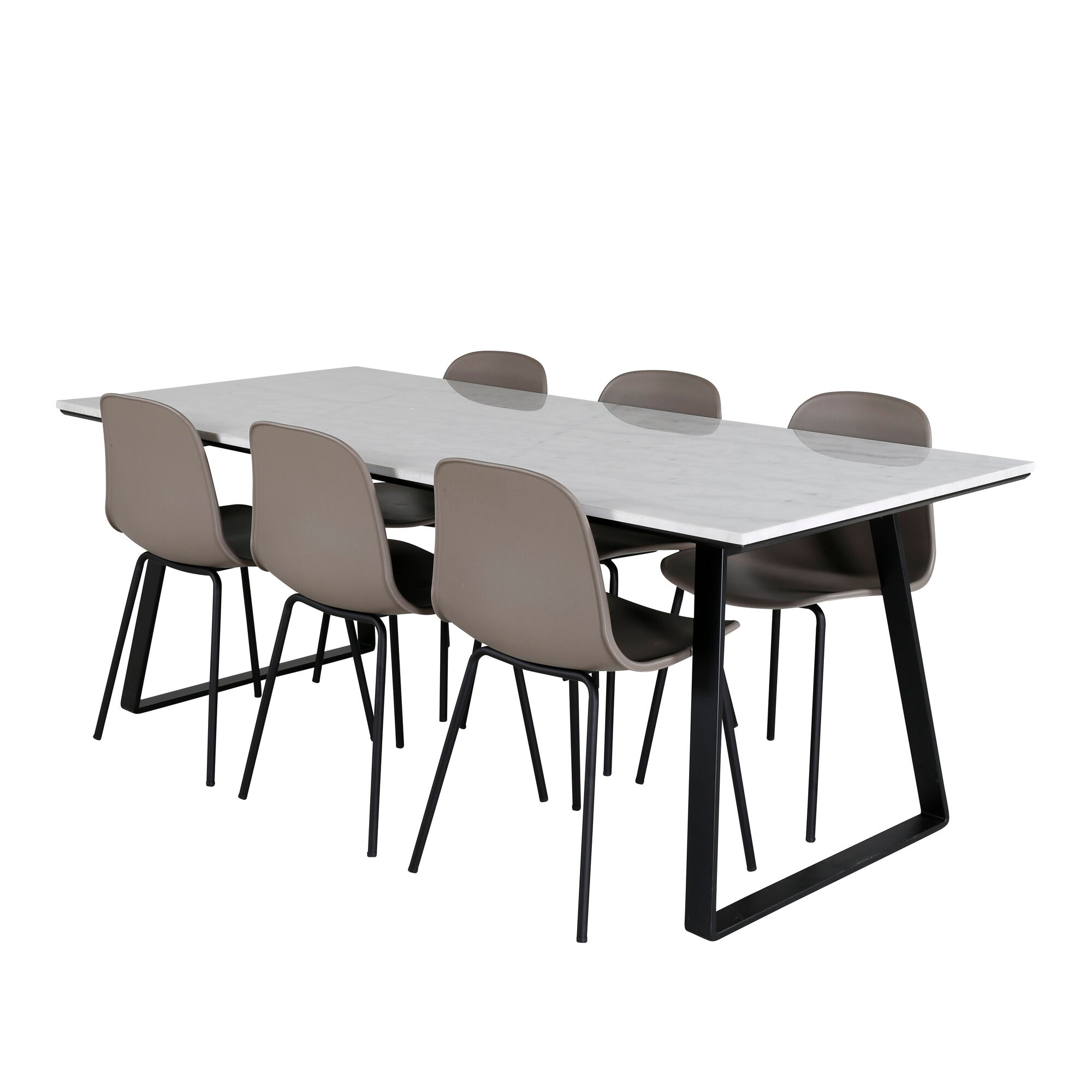 Stůl Narvik - béžový se 6 židlemi Edina - černá / hnědá