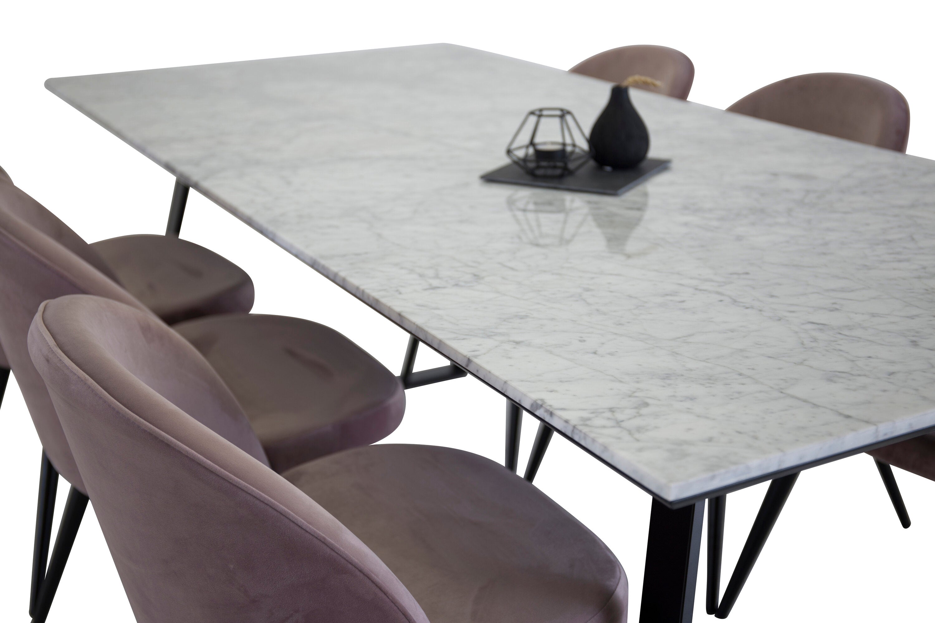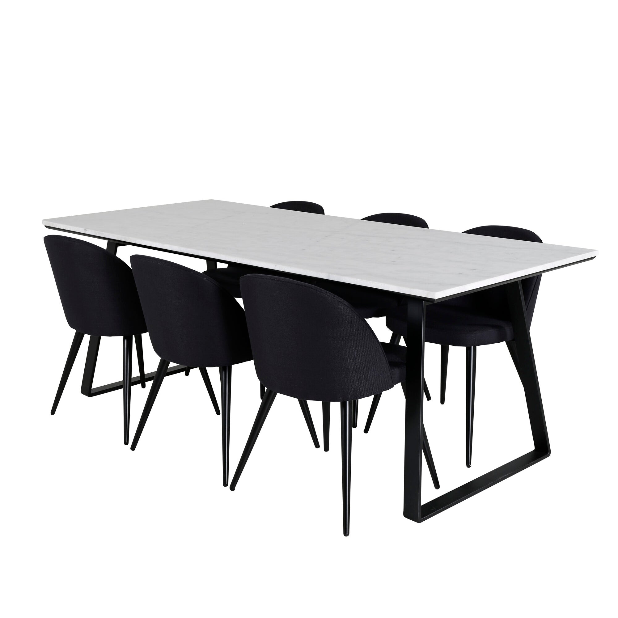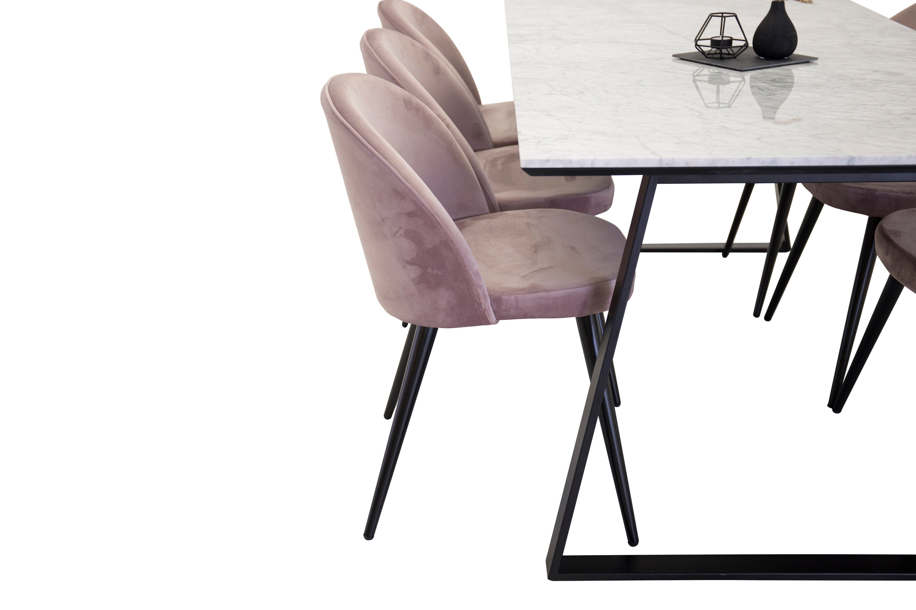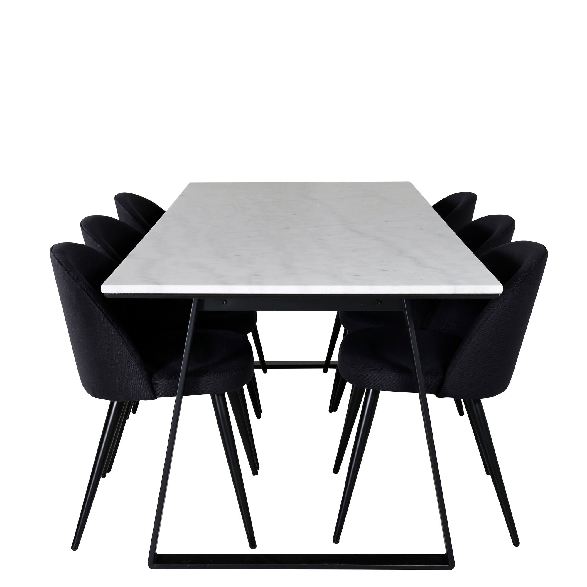 Estelle Matbord - Svart / Vit Marmor - 200*90*H76+Velvet jídelní židle - černá