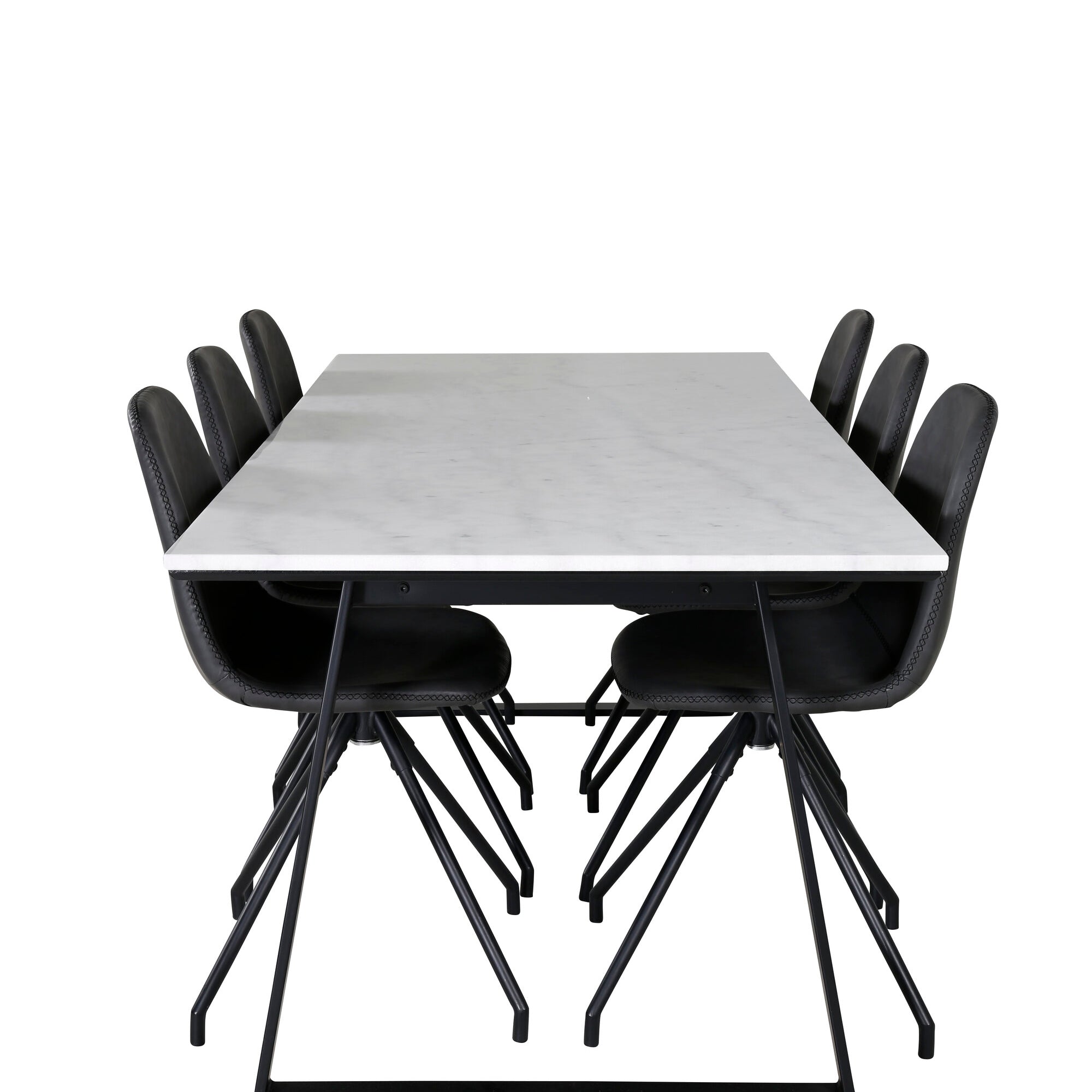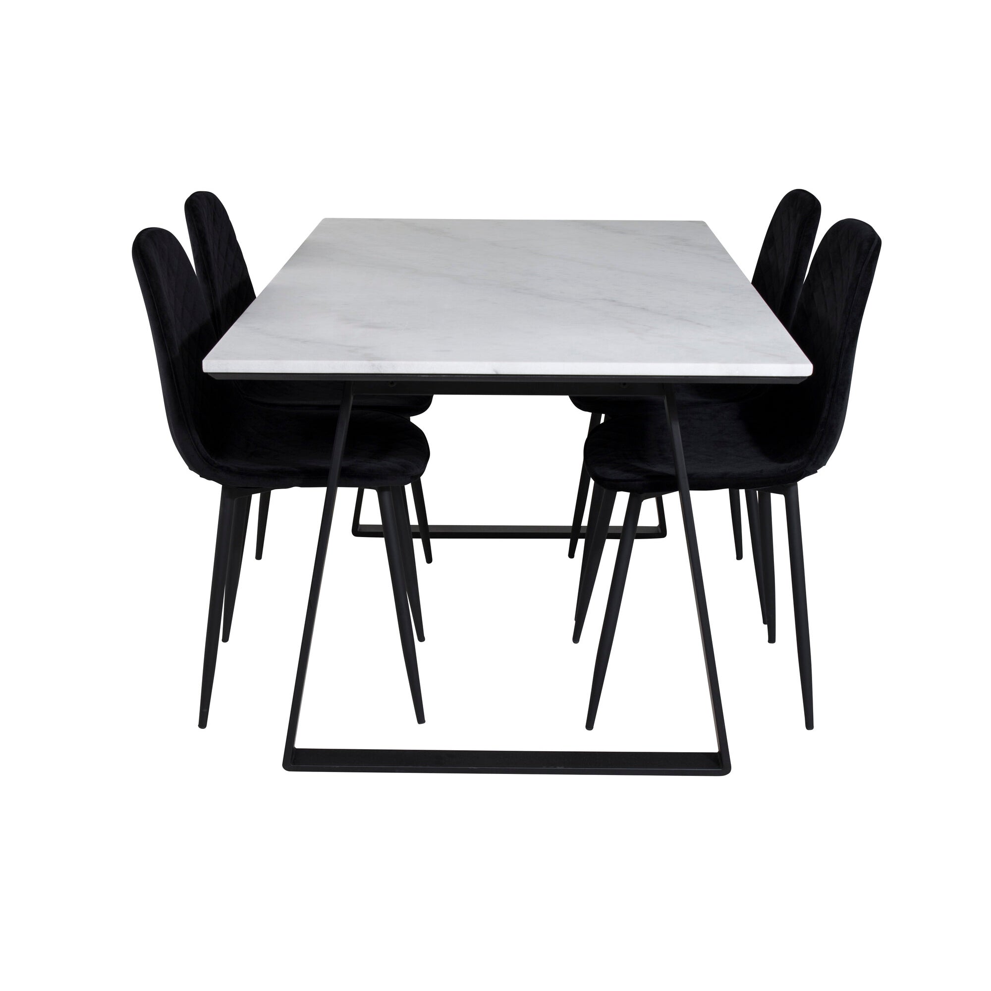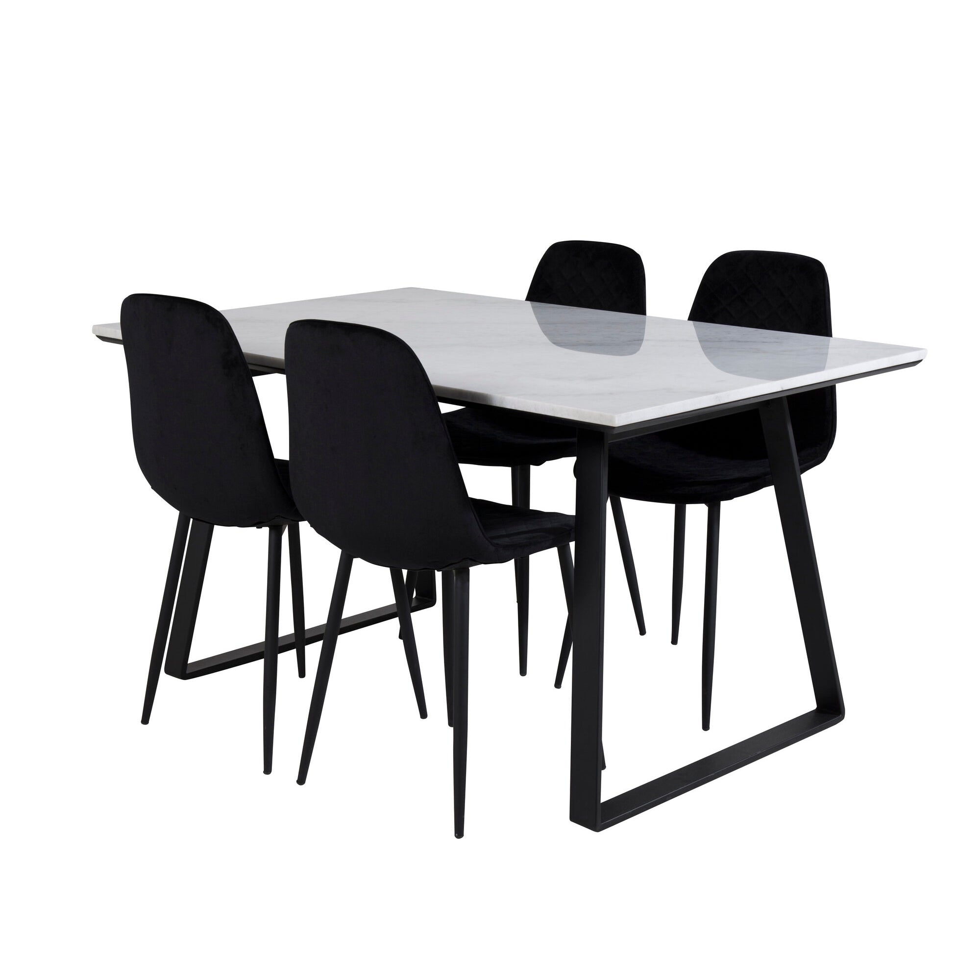 Estelle Matbord - Svart / Vit Marmor - 200*90*H76+Velvet jídelní židle - černá