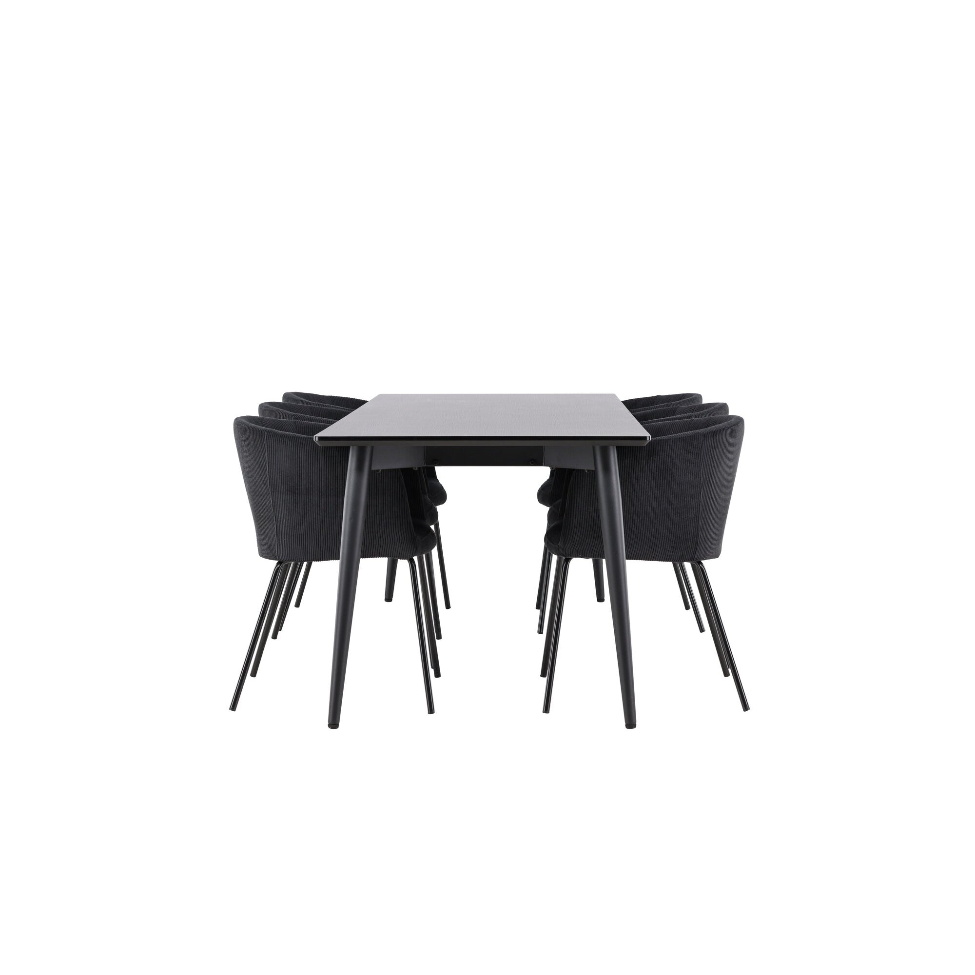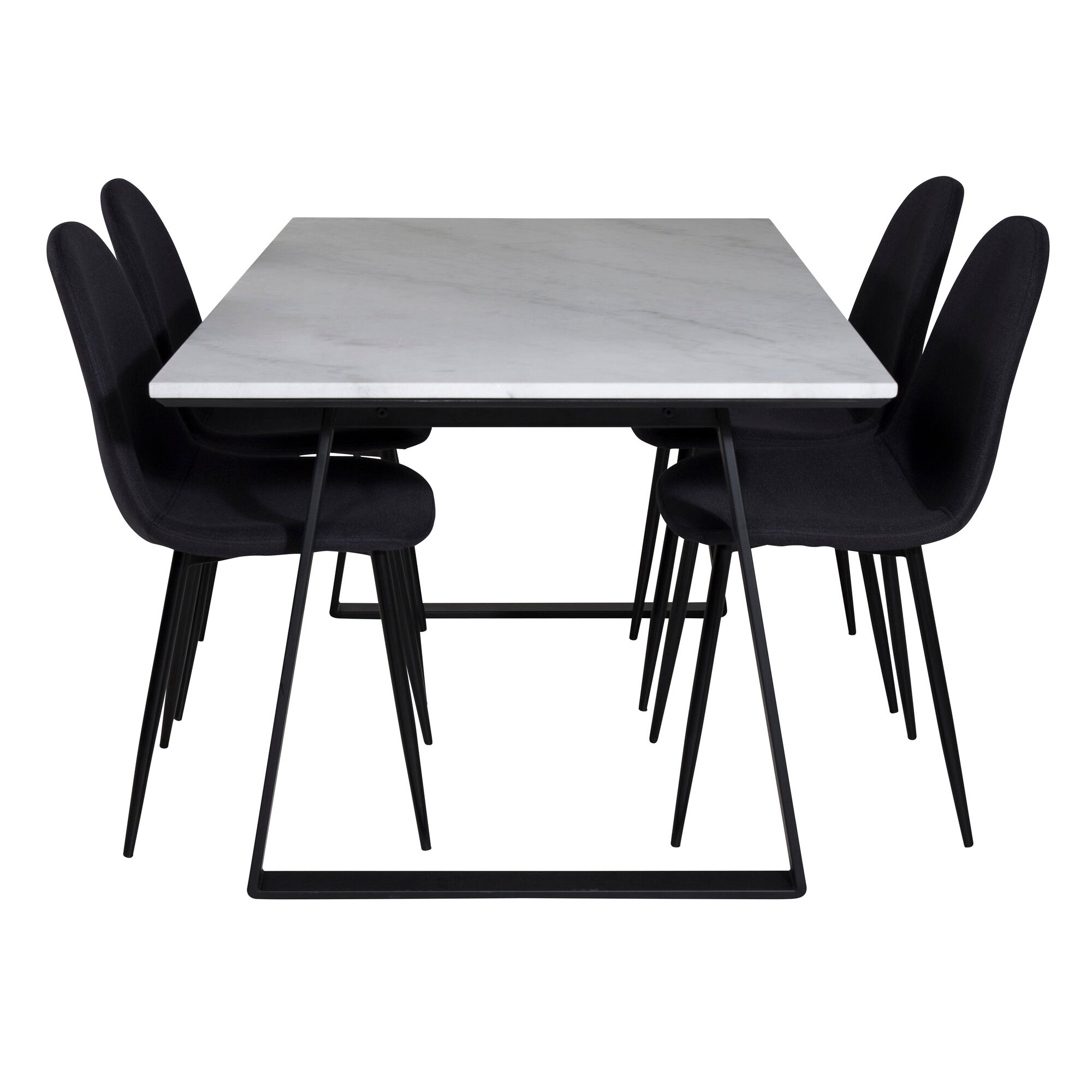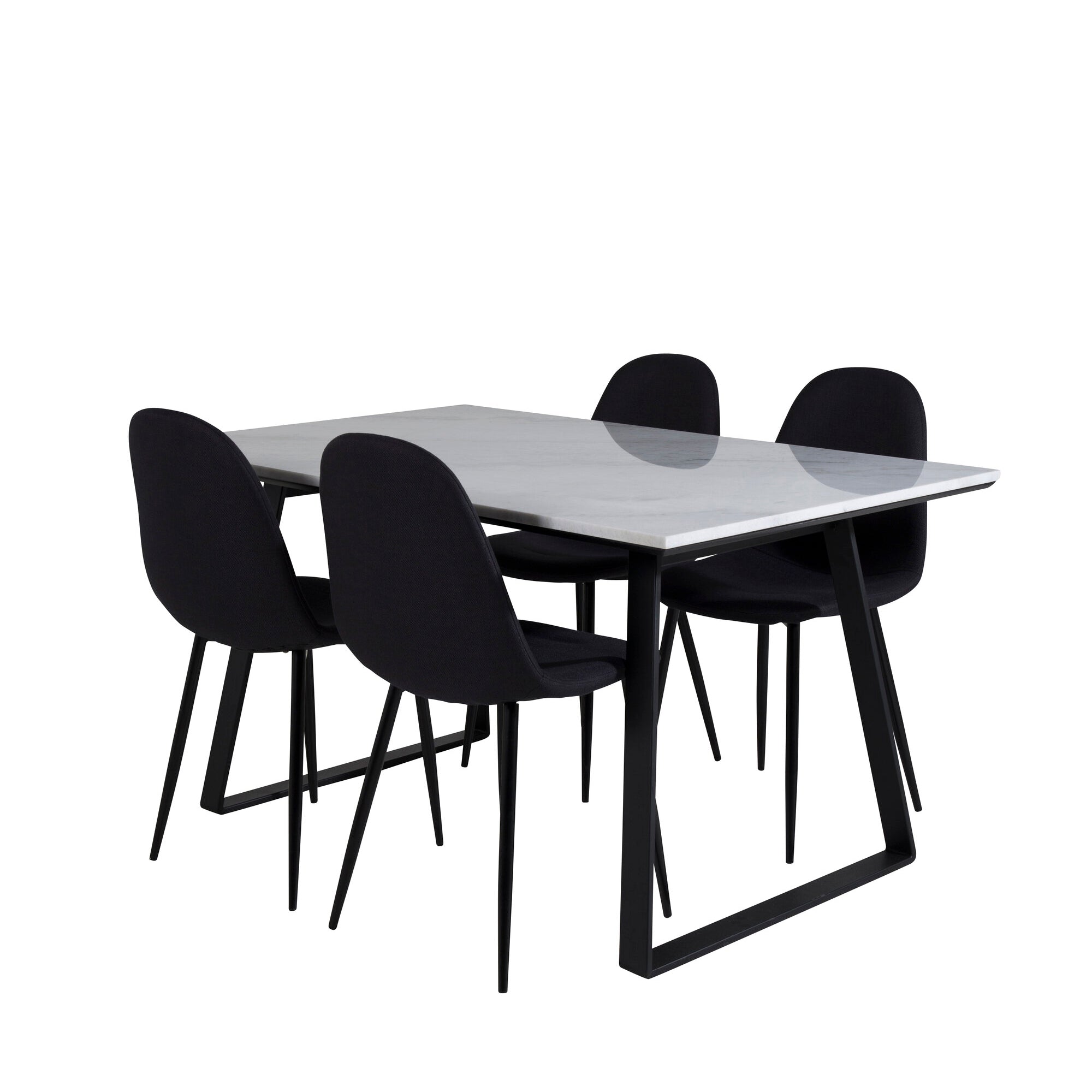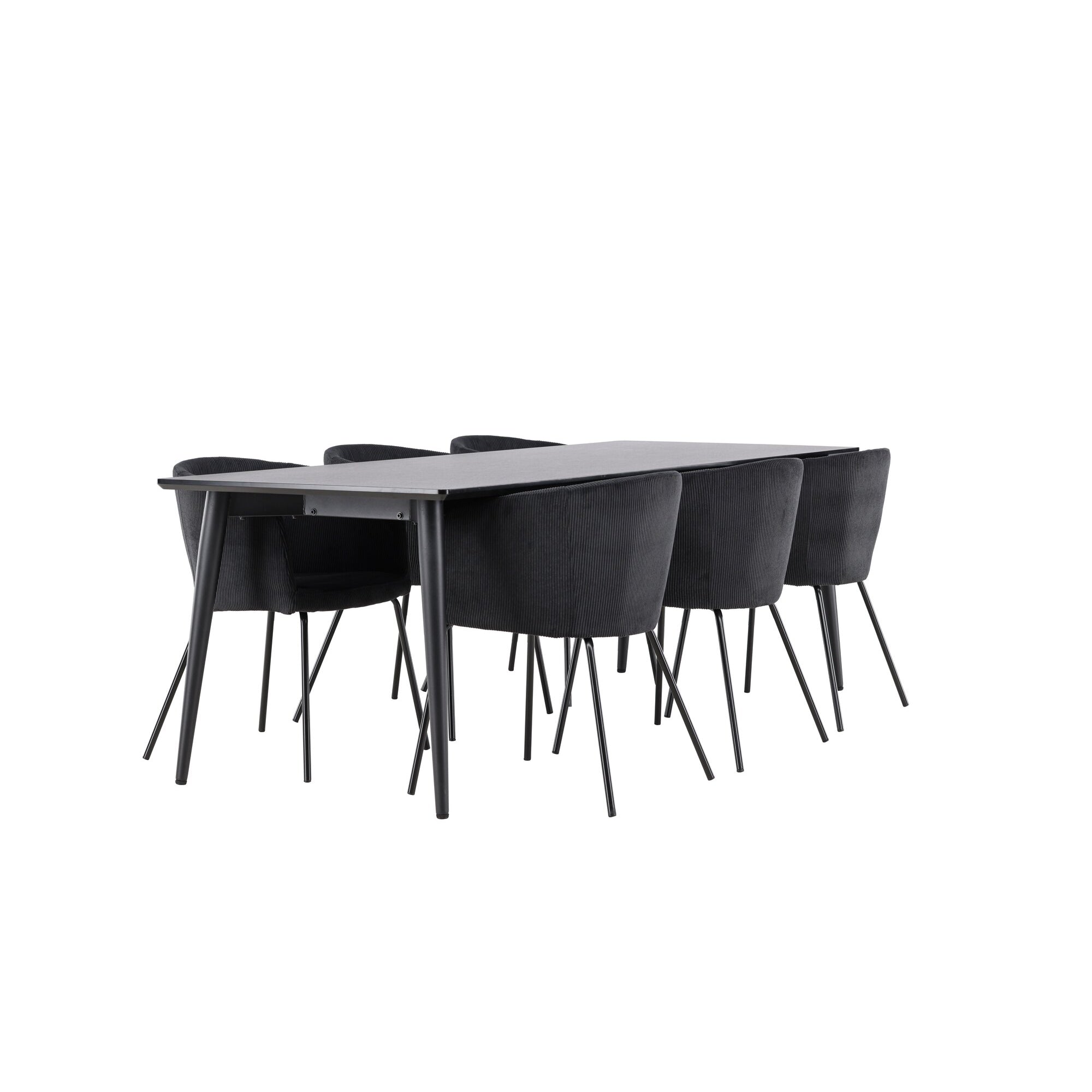 Estelle Matbord - Svart / Vit Marmor - 200*90*H76+Velvet jídelní židle - černá