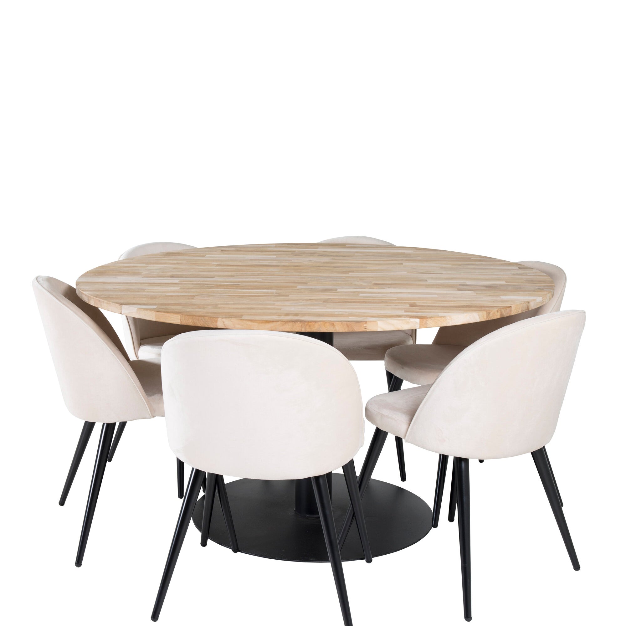 Kruhový stůl Cirebon - 140 cm - Teak / Black + Velvet Matstol - Svart / Créme _6