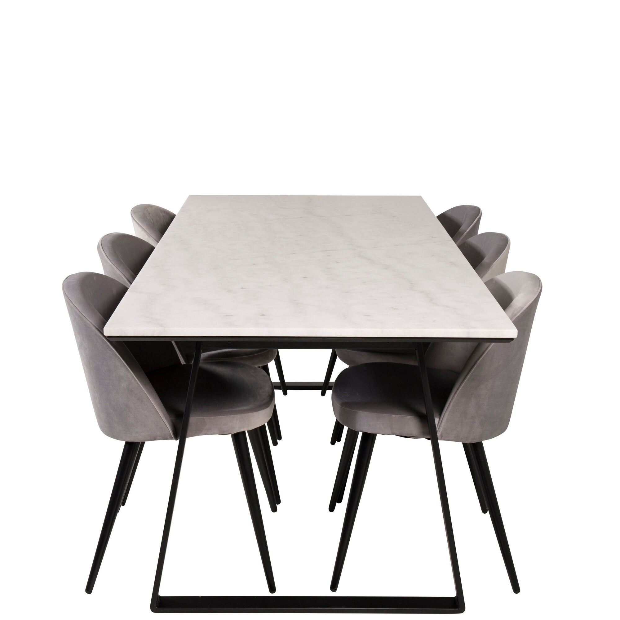 Estelle Matbord - Svart / Vit Marmor - 200*90*H76+Velvet Matstol - Svart / Ljusgrå Sammet_6