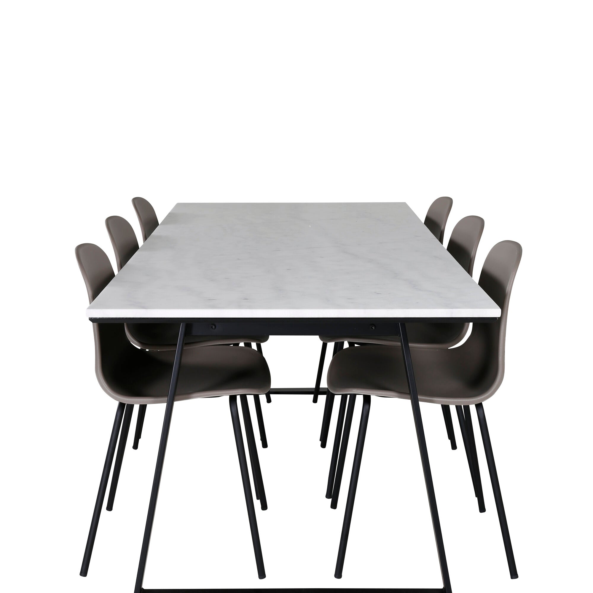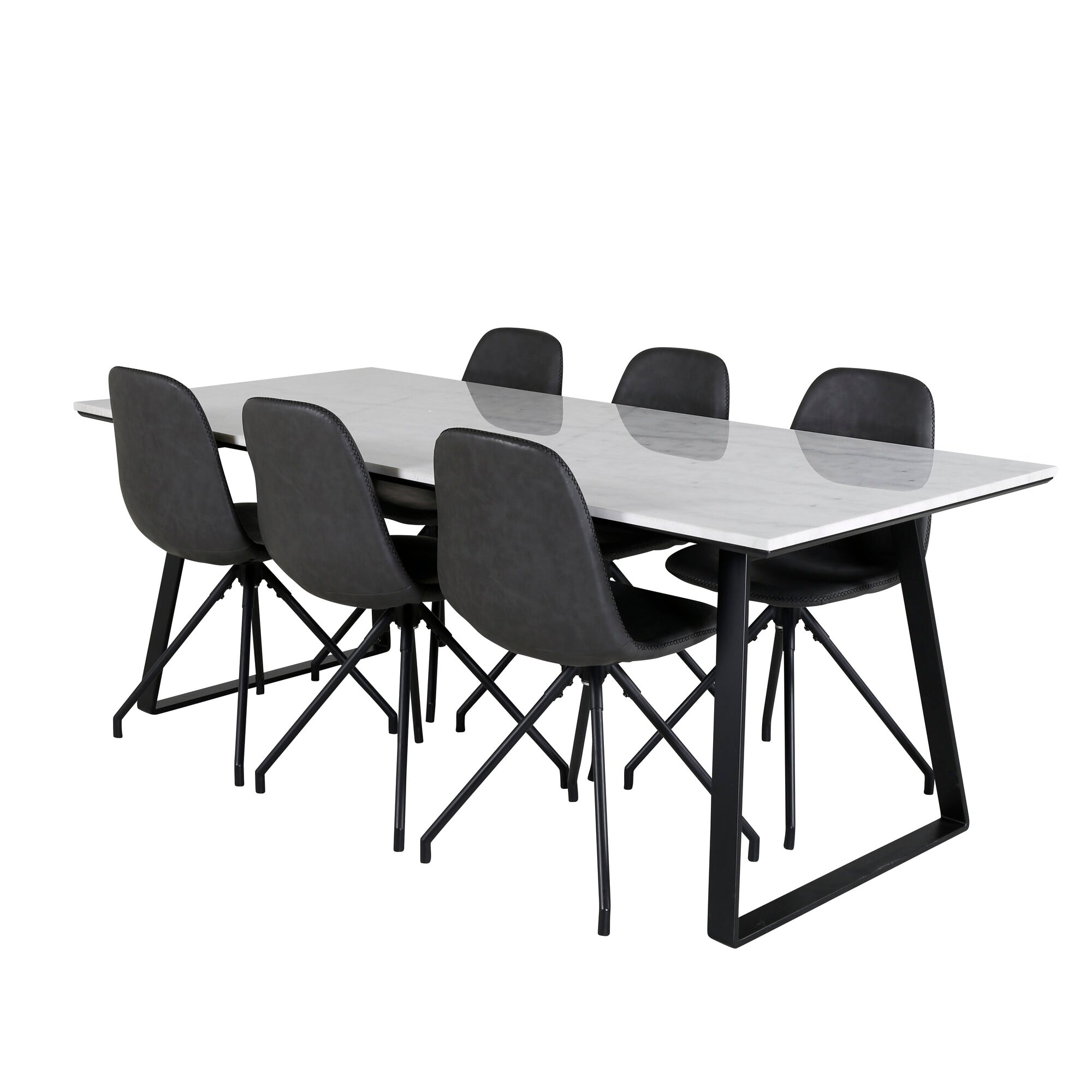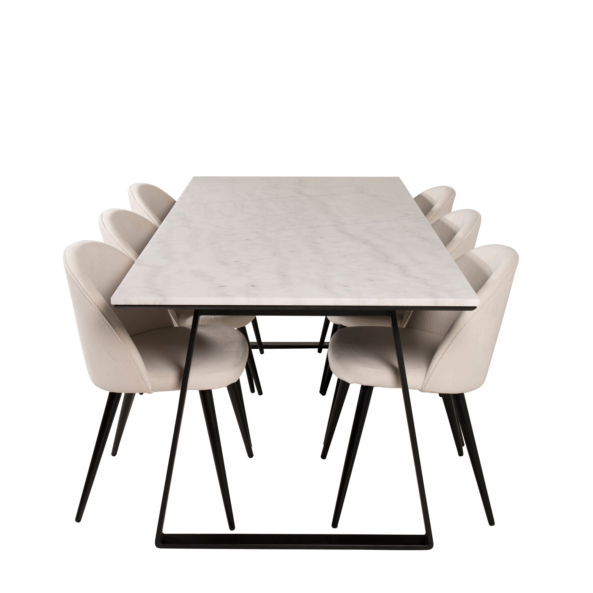 Estelle Matbord - Svart / Vit Marmor - 200*90*H76+Velvet Matstol - Svart / Gamme