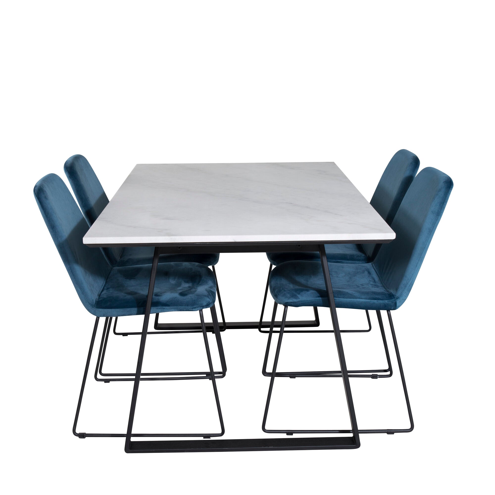 Jídelní stůl Estelle 140*90 - Bílá / Černá + Muce Jídelní židle - Černé nohy - Modrá Velvet_4