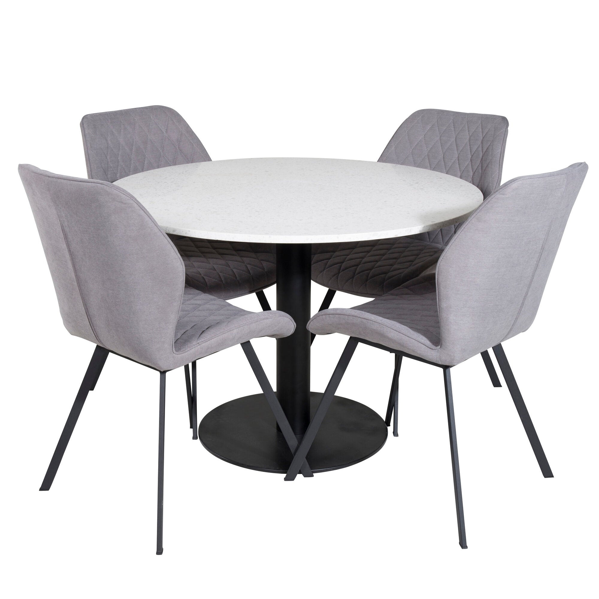 Jídelní stůl Razzia ø106cm - Bílá / Černá + Jídelní židle Gemma - Černé nohy - G