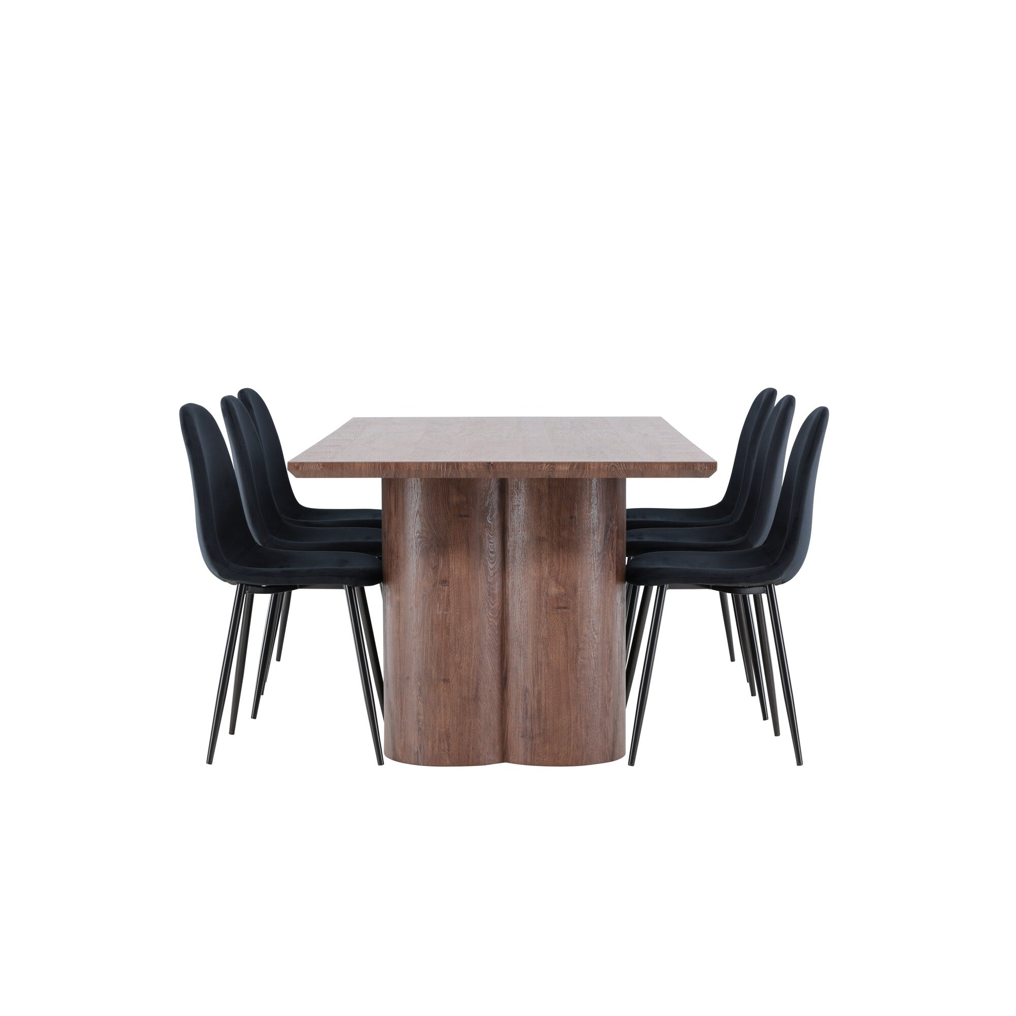 Cirebon Jídelní stůl 200*90cm - Teak / Černá - Polar Jídelní židle Černá PU 8