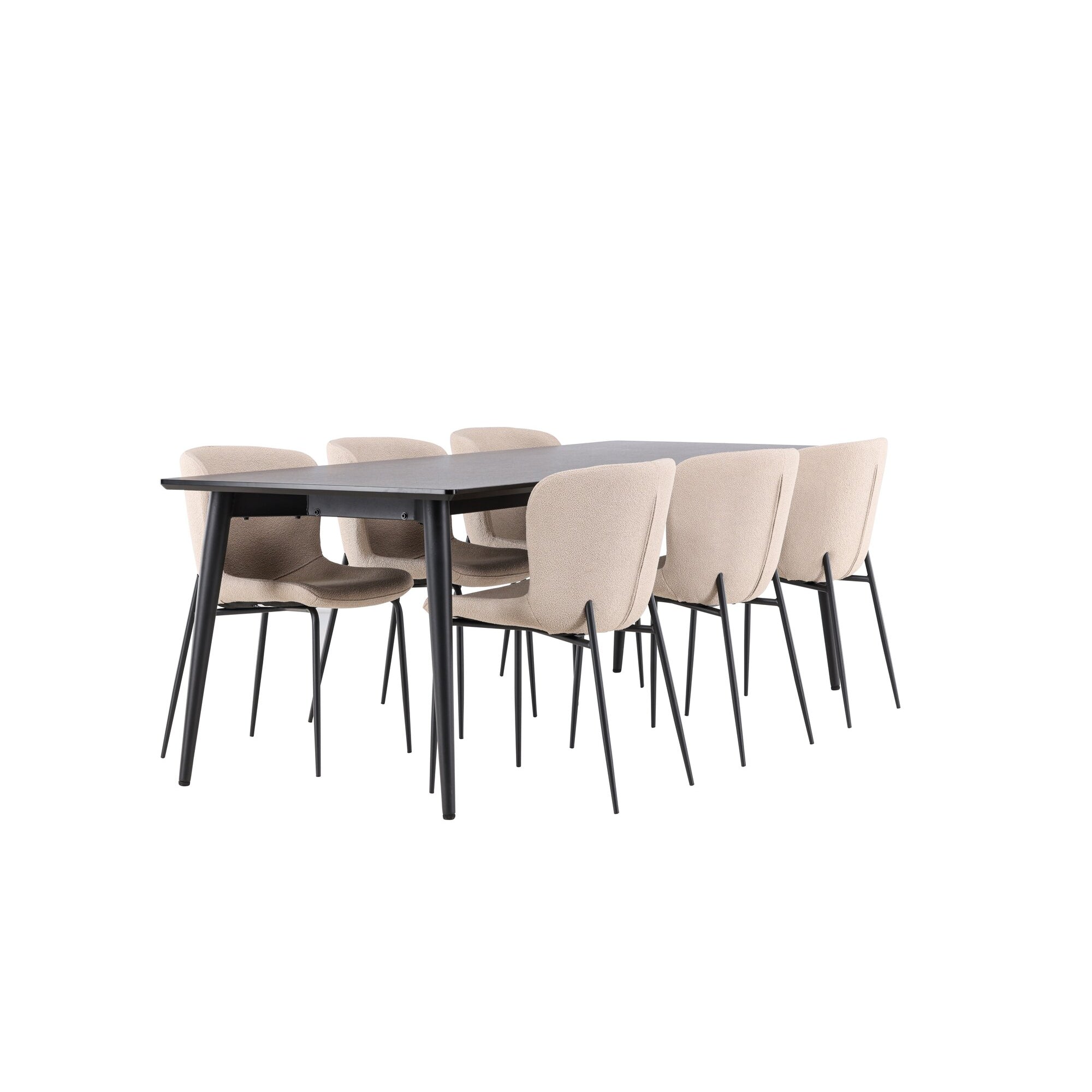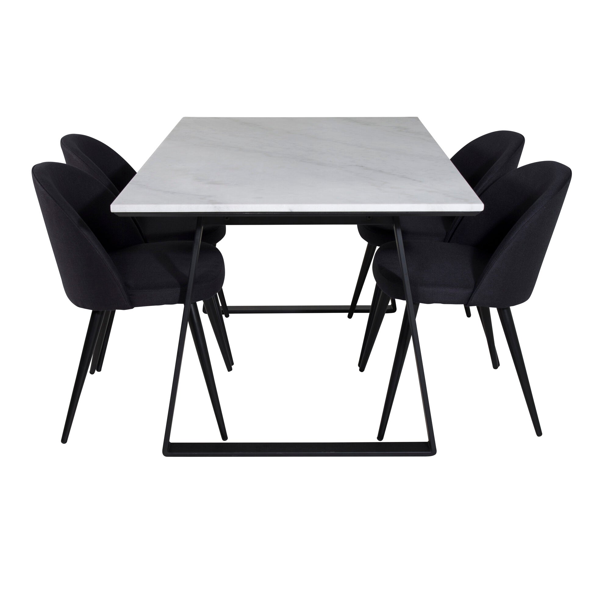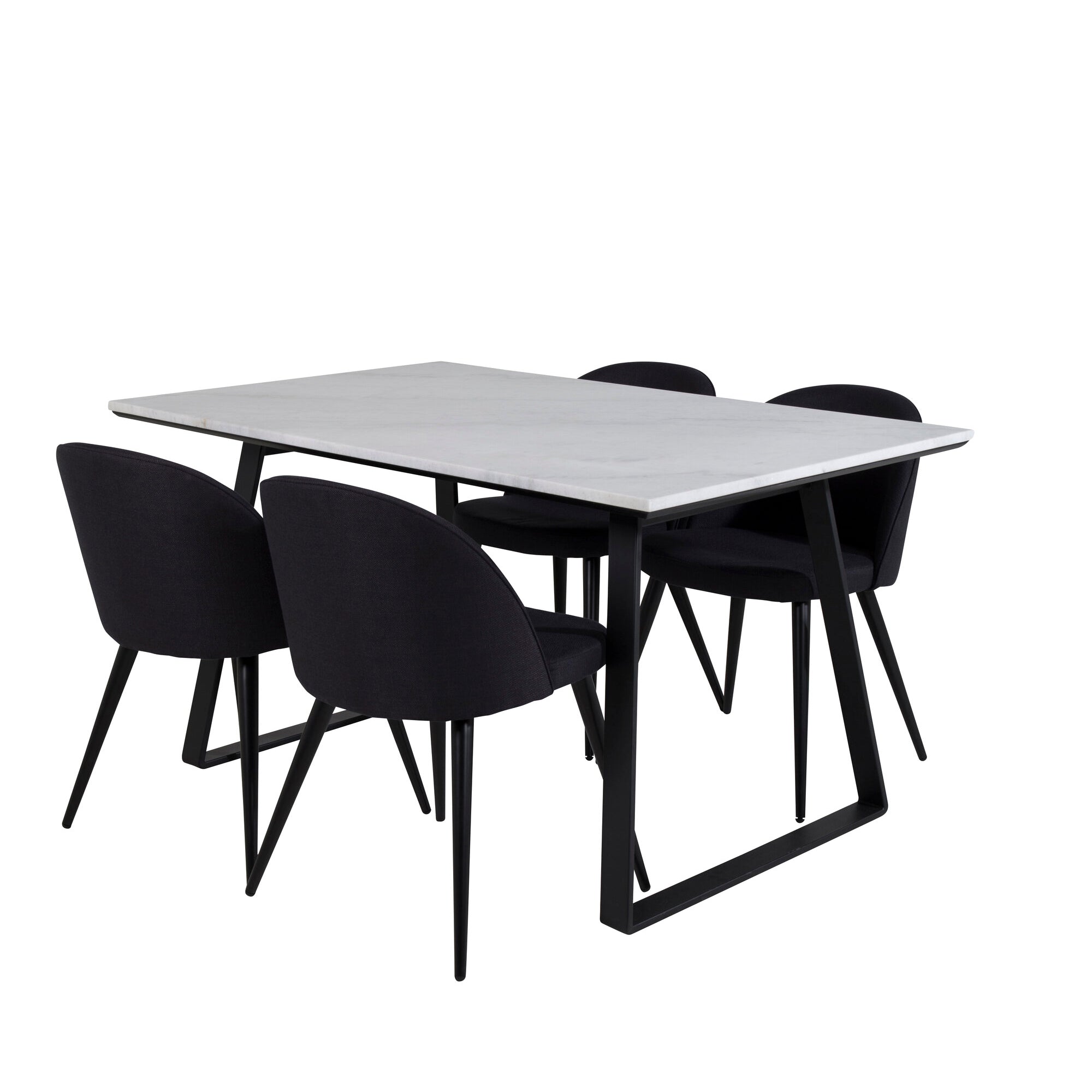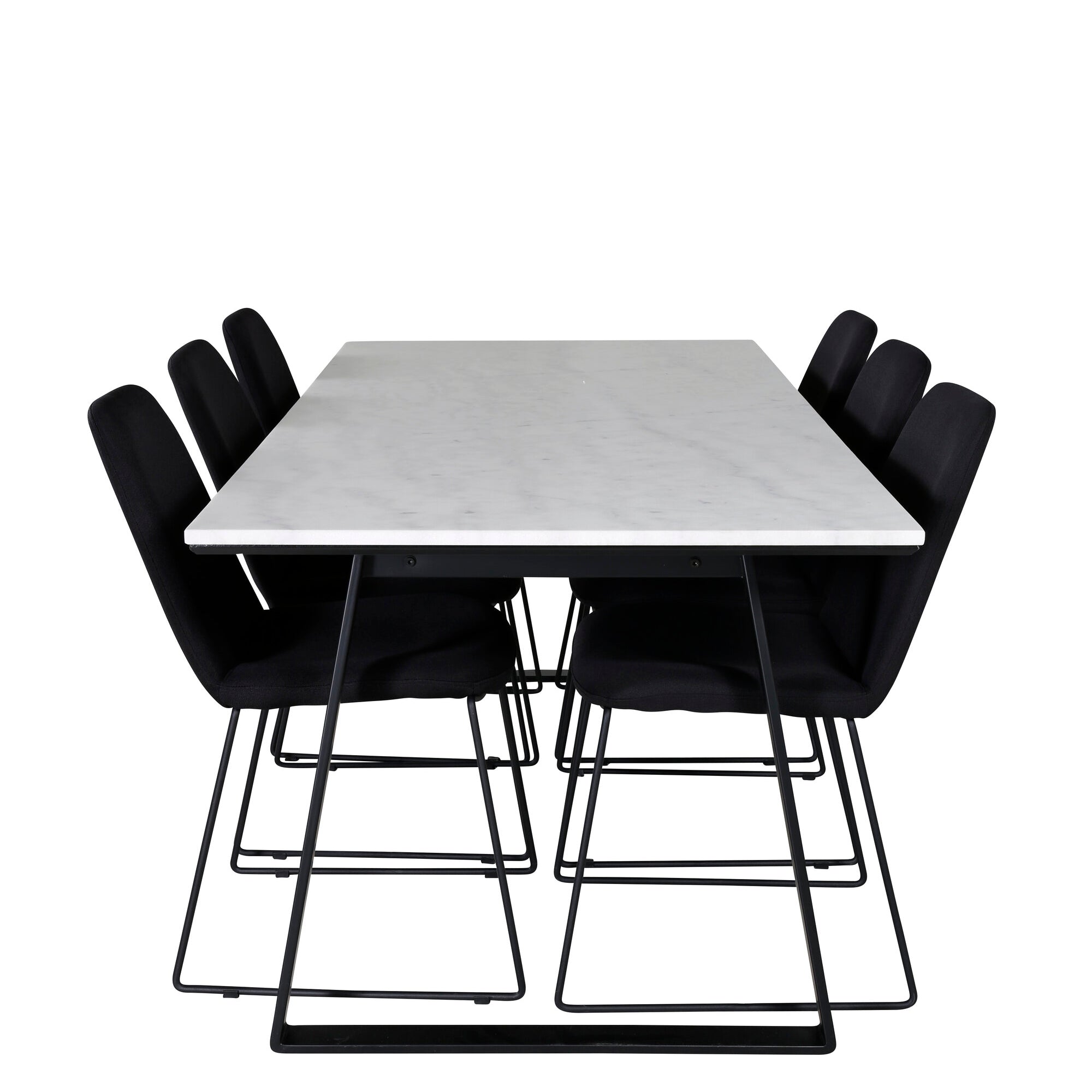 Estelle Jídelní stůl 200*90*H76 - Bílá / Černá + Muce Jídelní židle - Černé nohy - Černá Fabric_6
