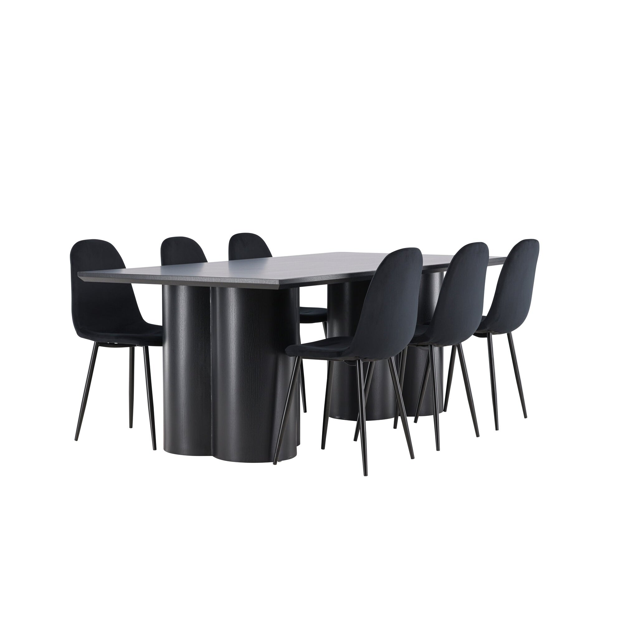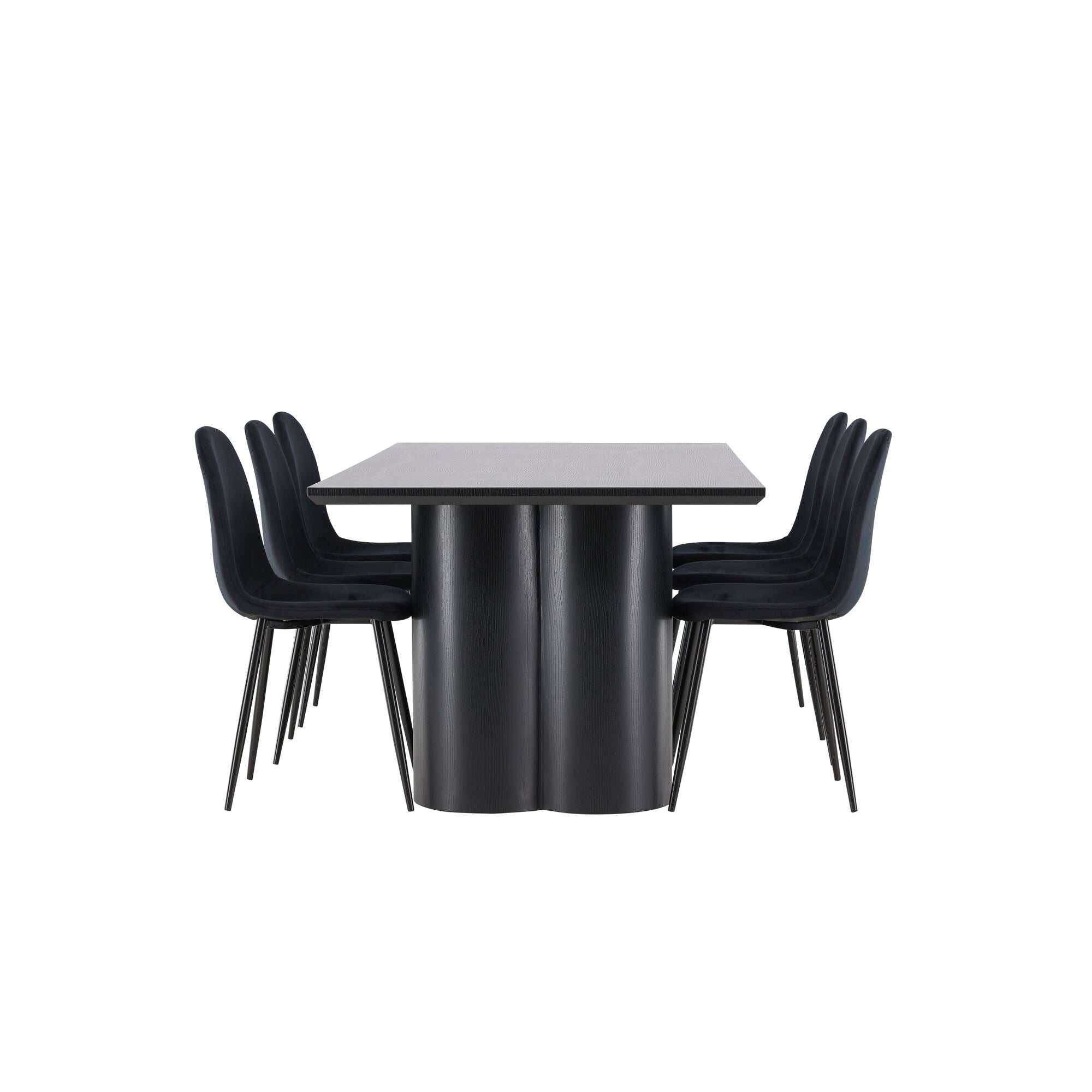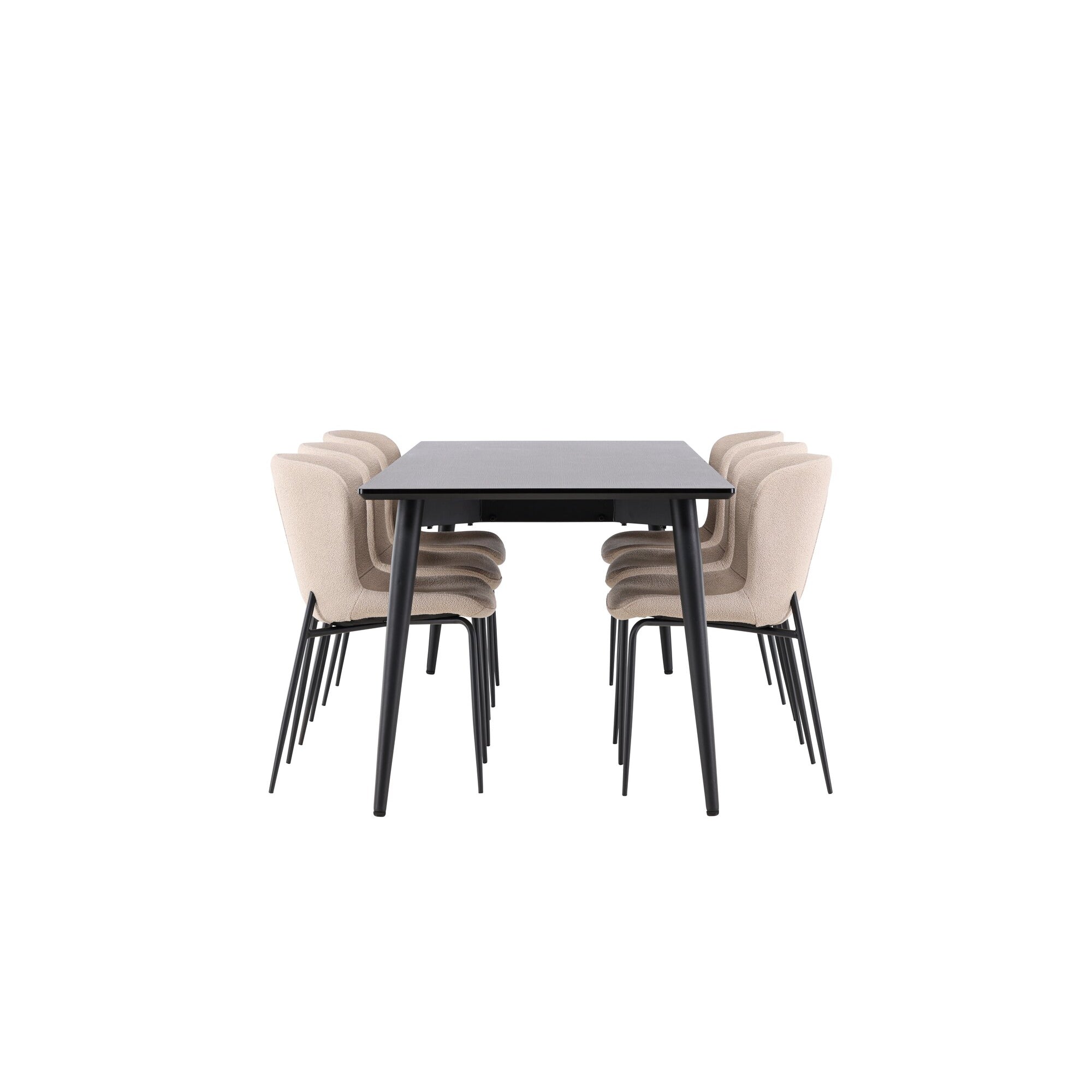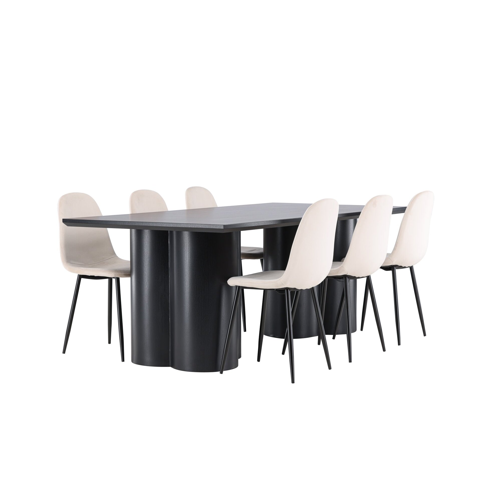Estelle Jídelní stůl 200*90*H76 - Bílá / Černá + Muce Jídelní židle - Černé nohy - Černá Fabric_6
