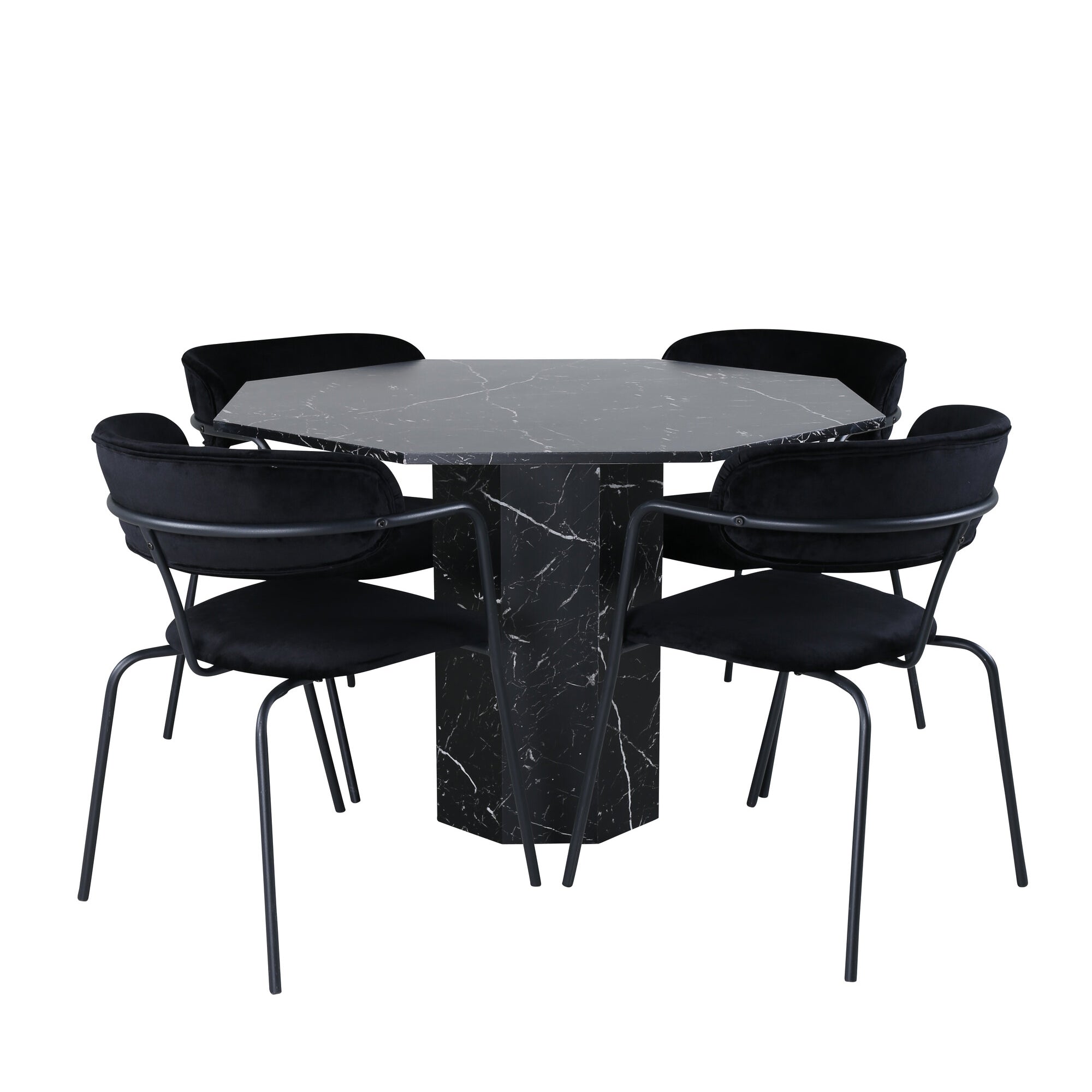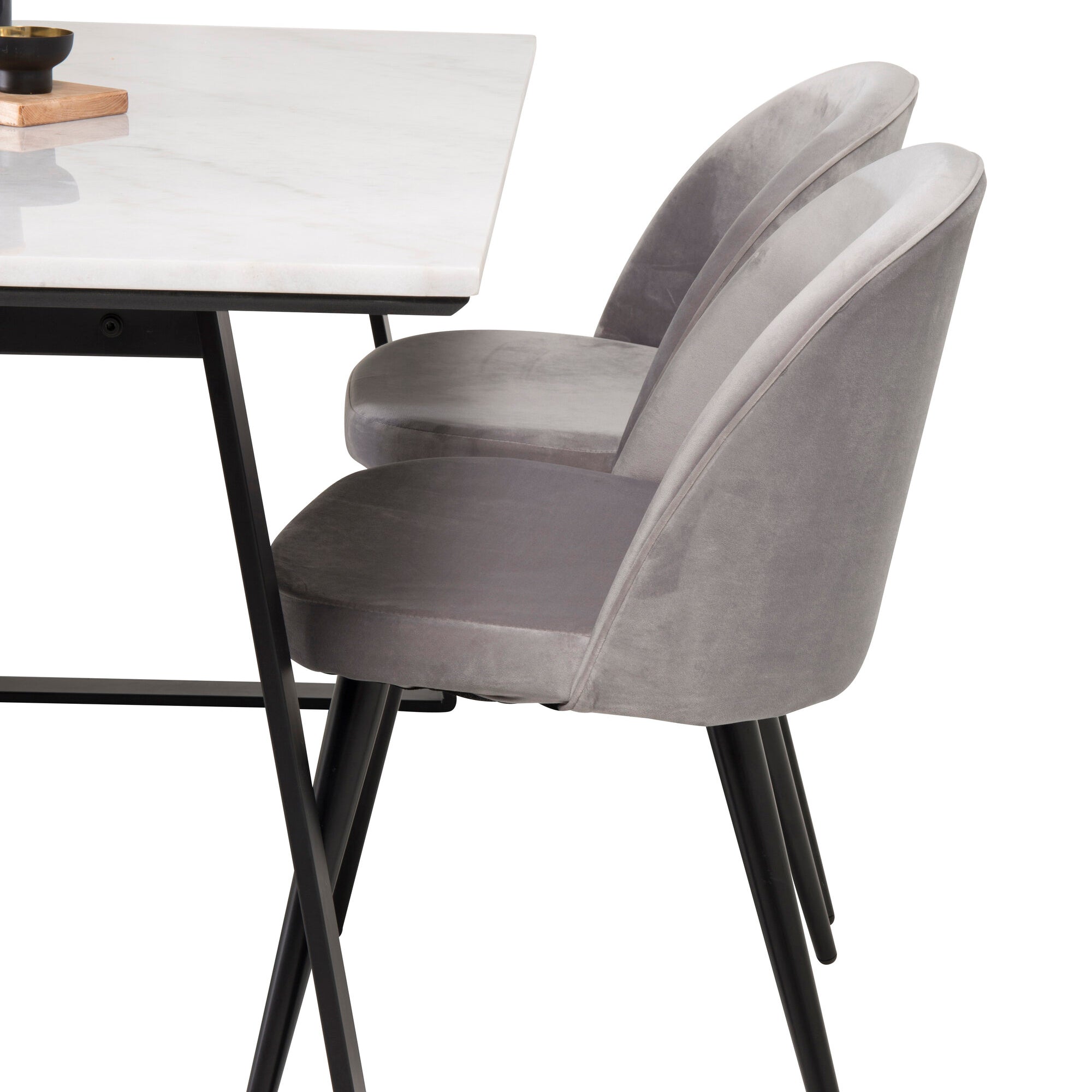 Estelle Jídelní stůl 140*90 - Bílý mramor / Černé nohy + Sametová jídelní židle -