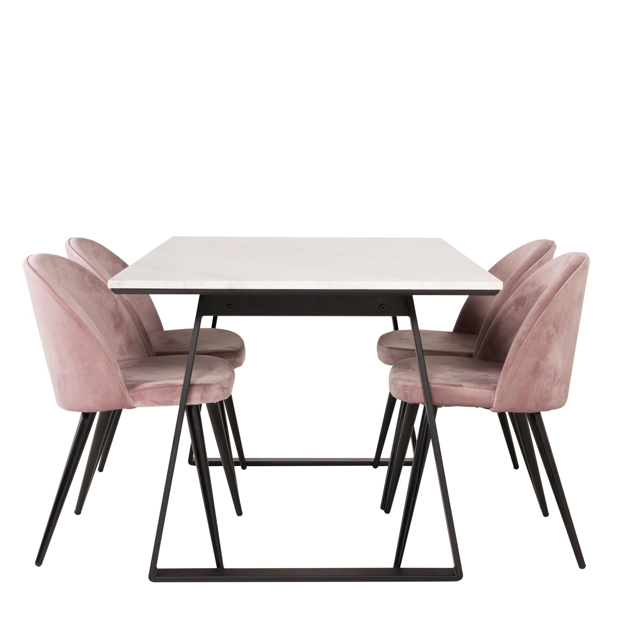 Jídelní stůl Estelle 140*90 – bílý mramor / černé nohy – sametová jídelní židle – růžová / černá 4
