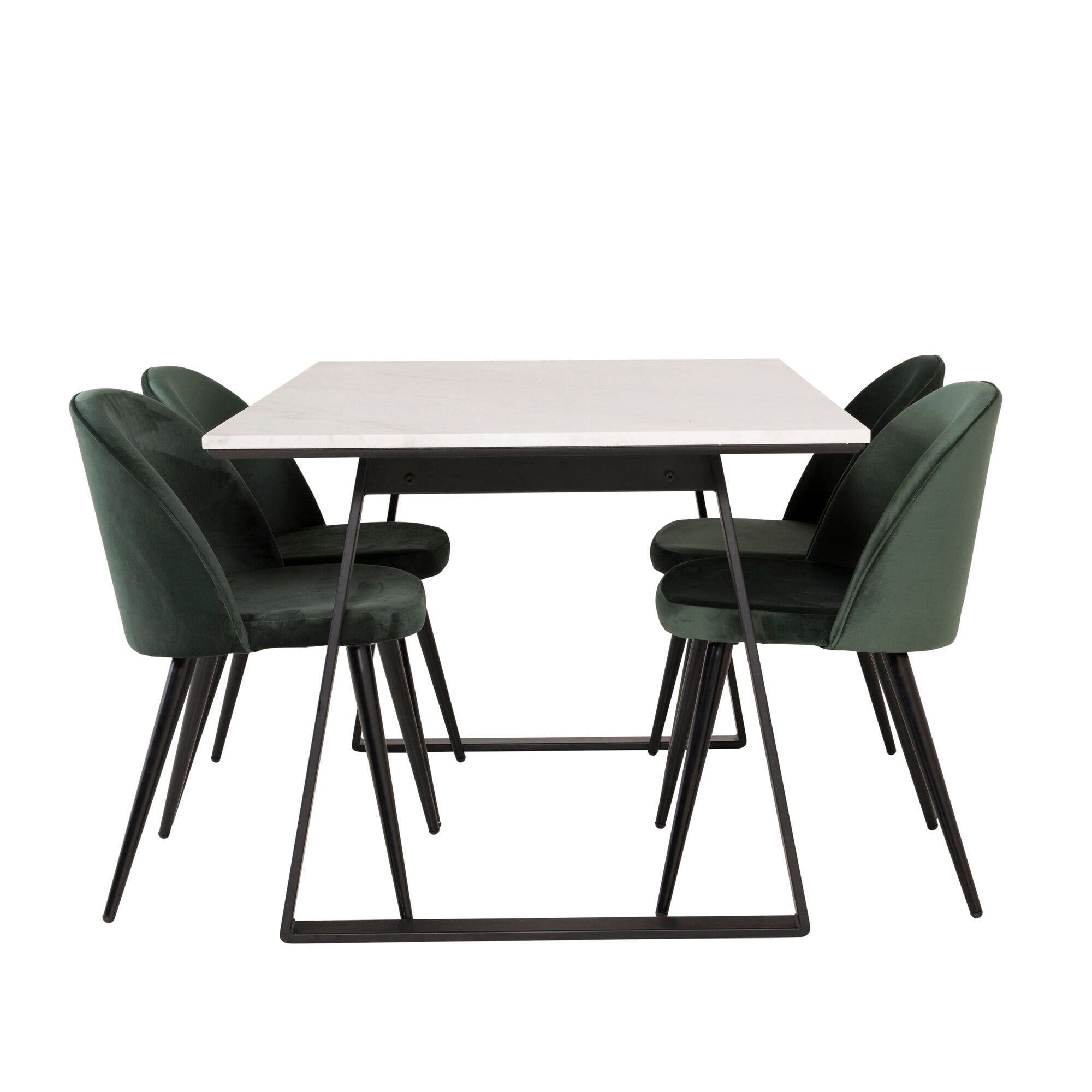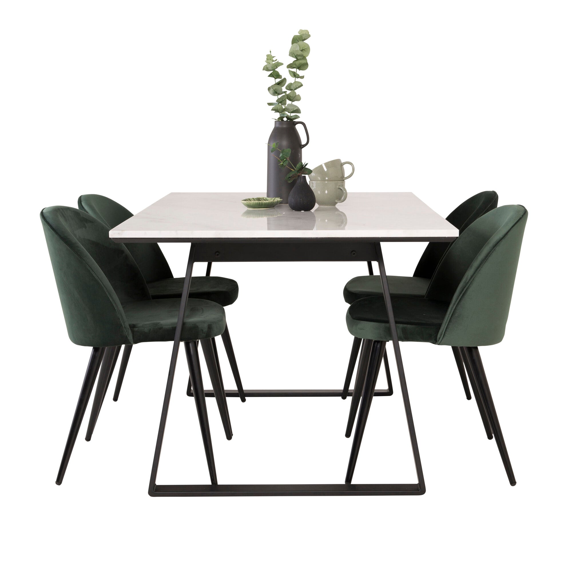 Jídelní stůl Estelle 140*90 – bílý mramor / černé nohy – sametová jídelní židle – zelená / černá 4