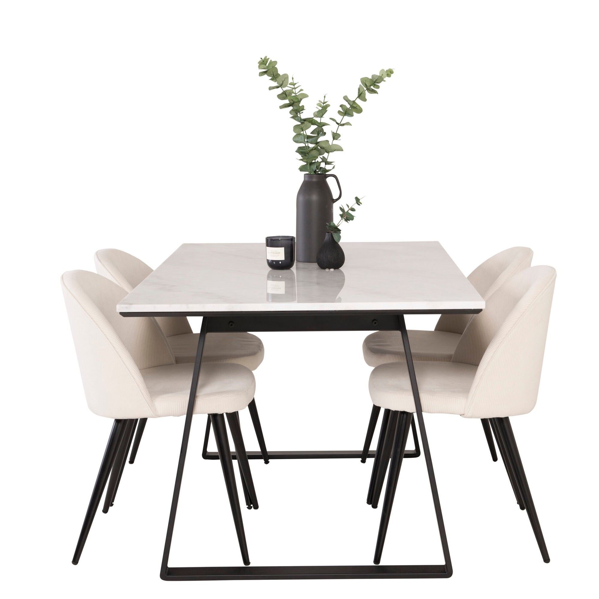 Estelle Jídelní stůl 140*90 - Bílý mramor / Černé nohyVelvet Matstol - Svart /
