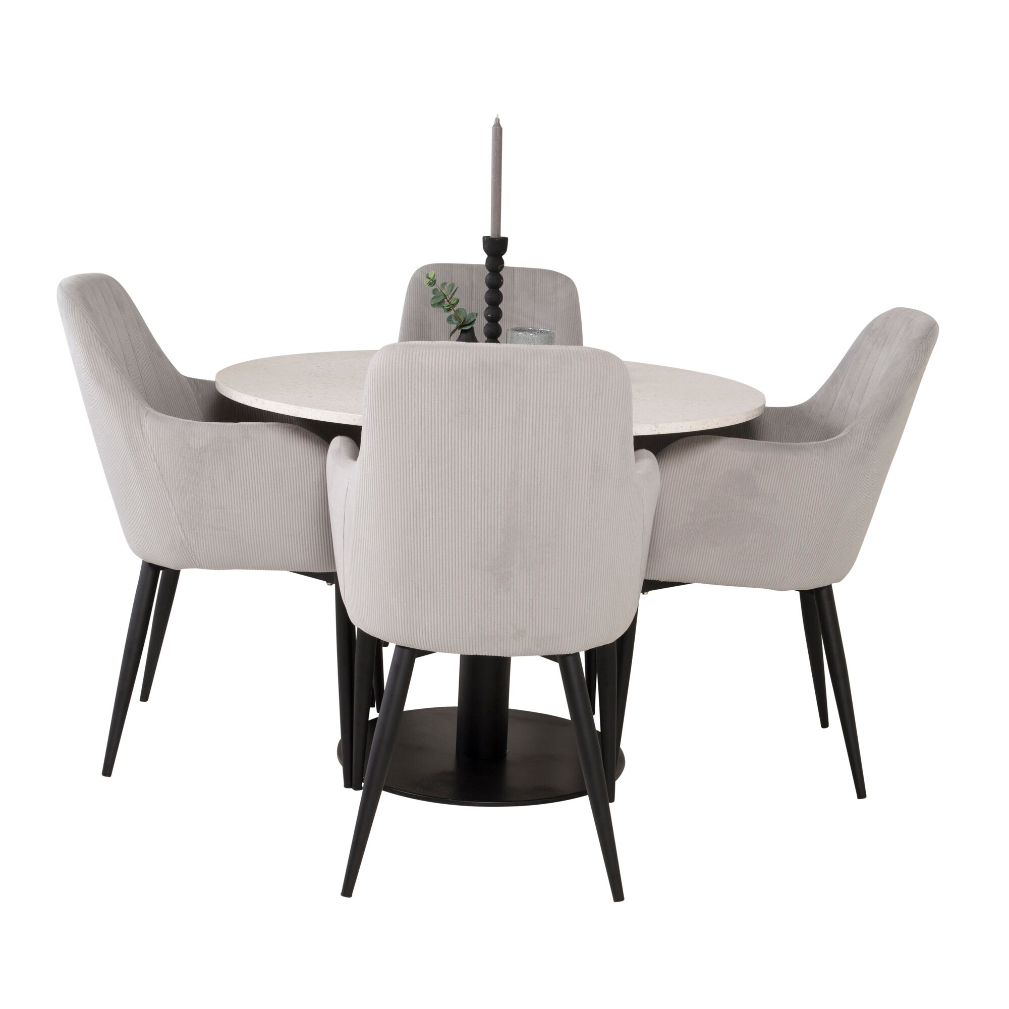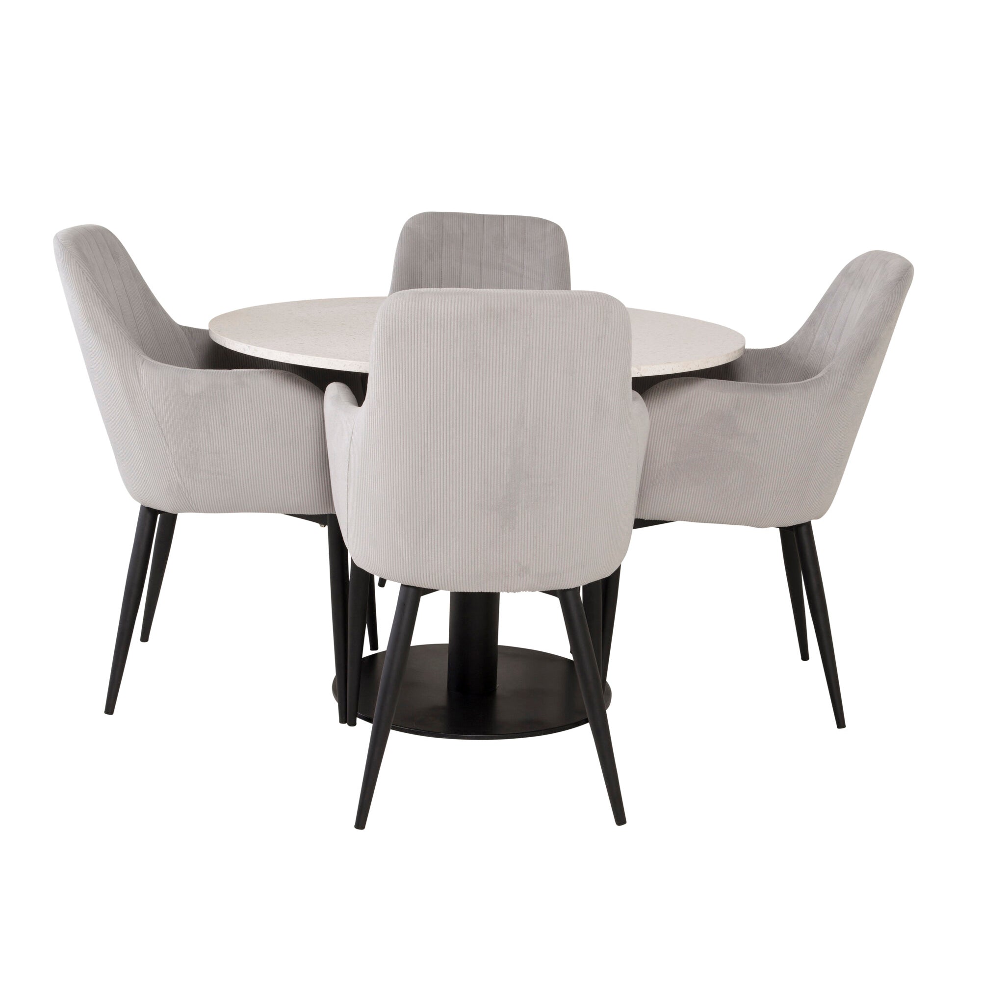 Jídelní stůl Razzia 106 cm -Bílá Terazzo / Černá + Komfortní jídelní židle - Černé nohy / Světle Šedá manšestrová _4