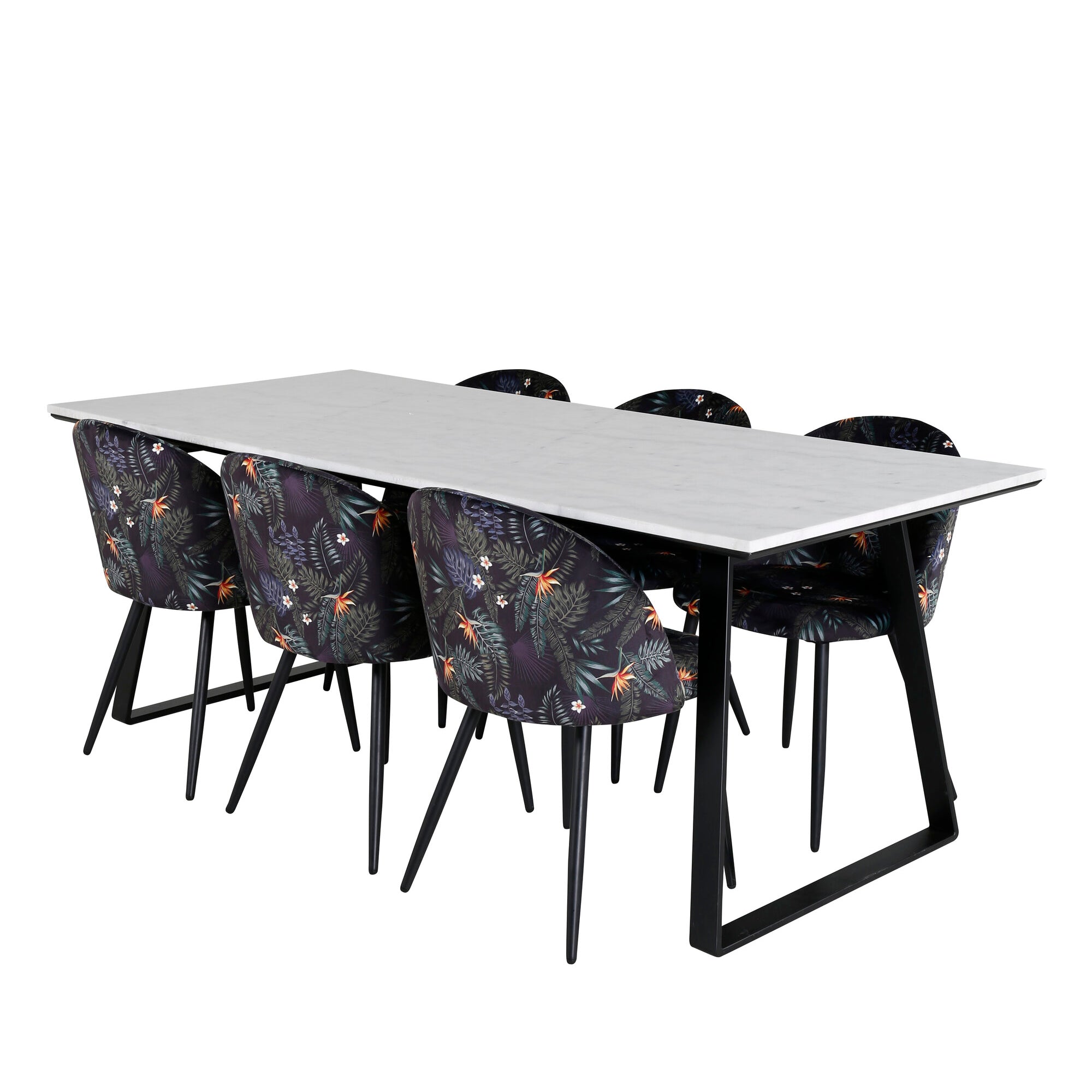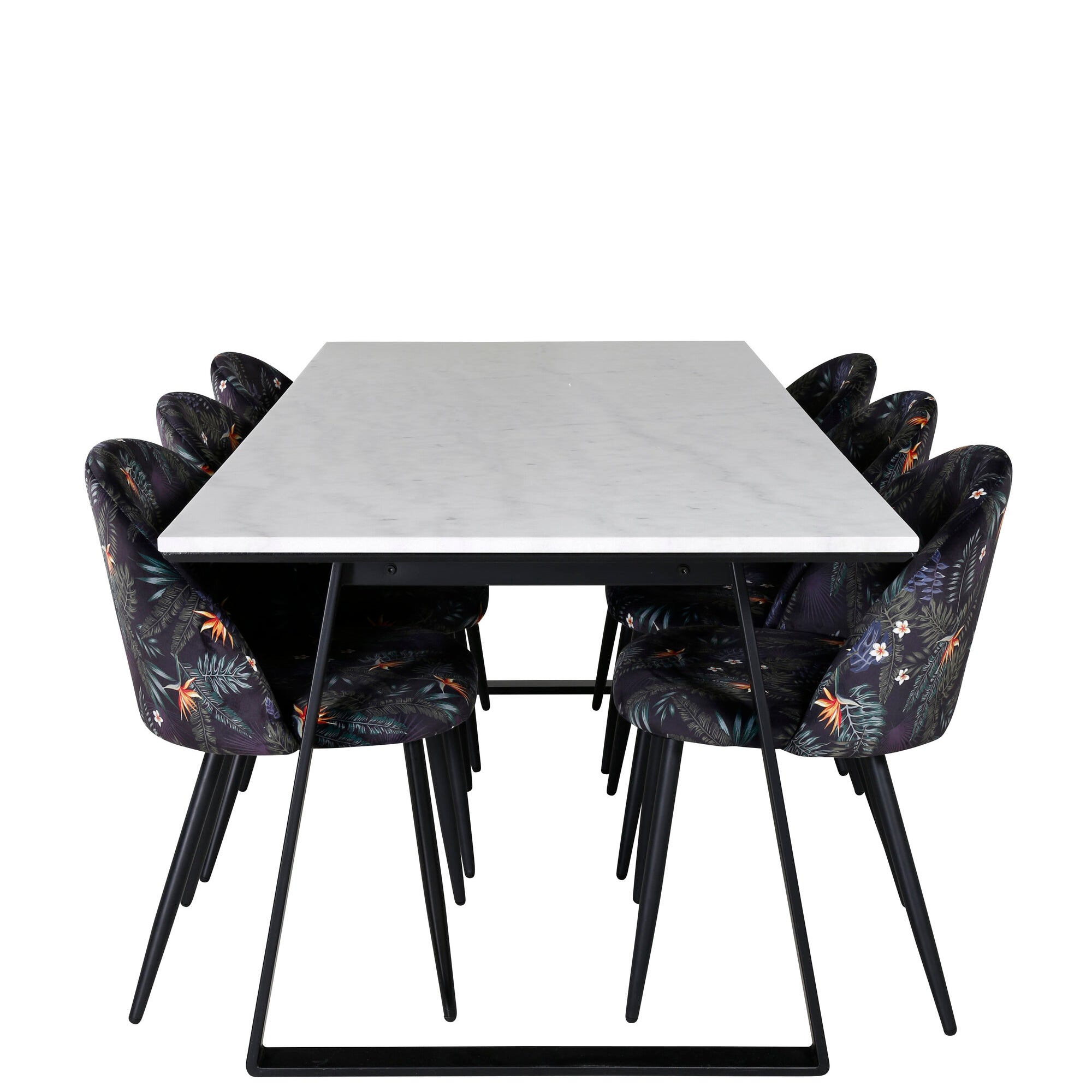 Estelle Jídelní stůl 200*90*H76 - Bílá / Černá + Sametová jídelní židle - Black Flower fabric_6