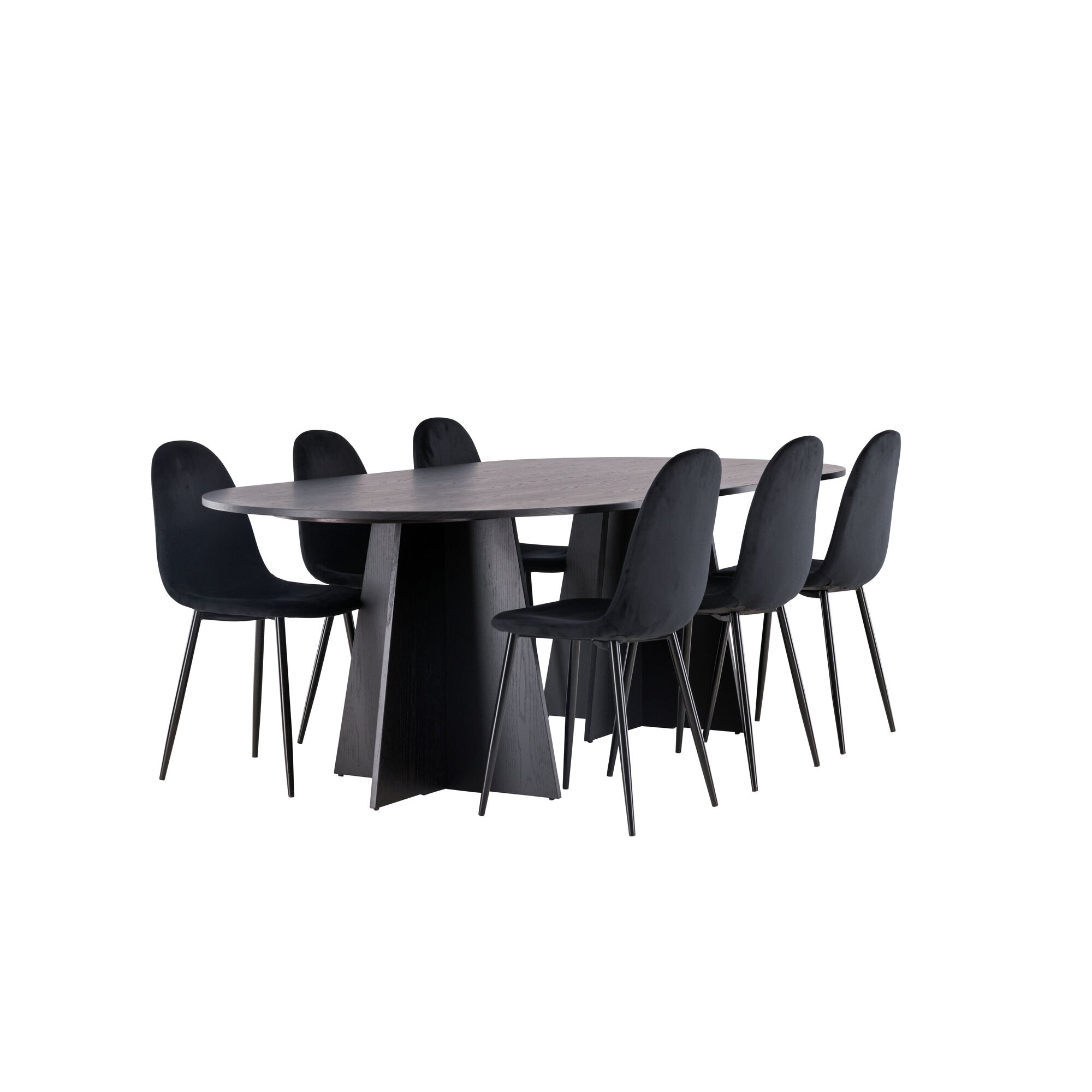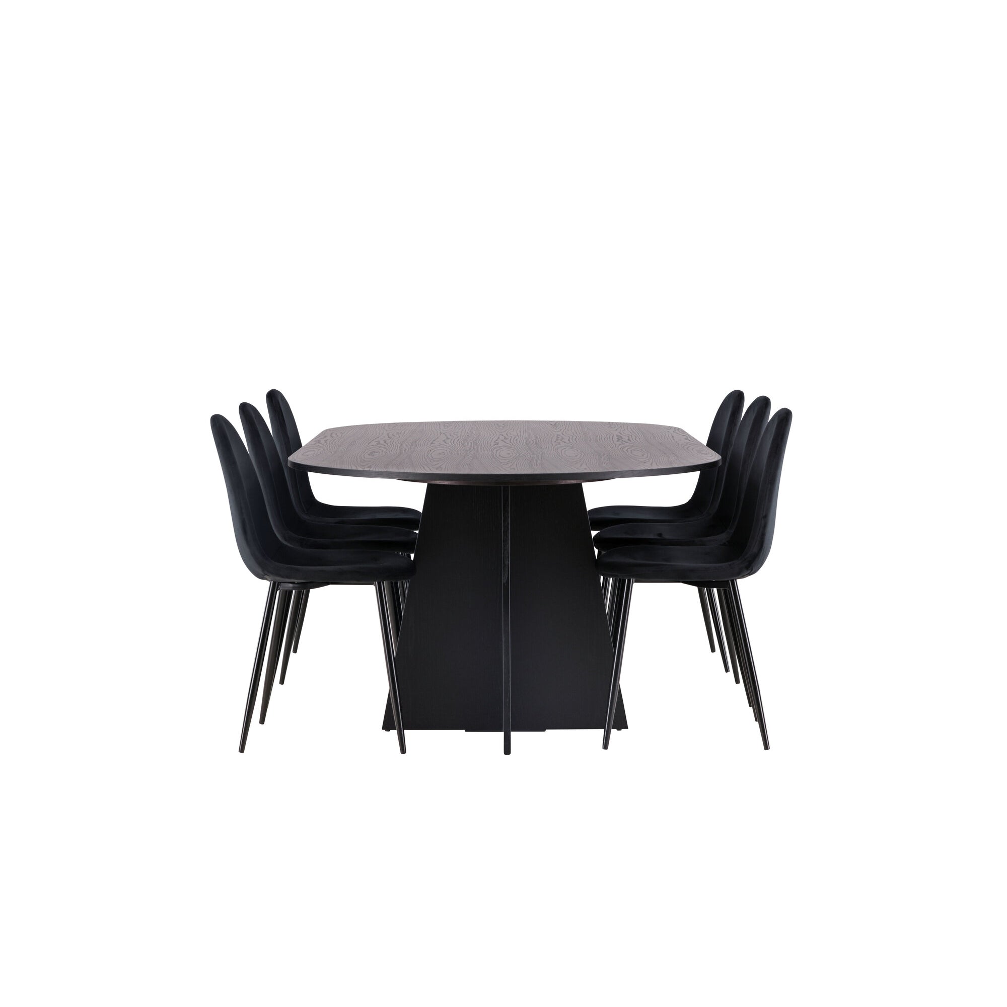 Bootcut Oválný jídelní stůl - Černá / Černá Fanéer + Jídelní židle Polar - Černé nohy / Black Velvet _6