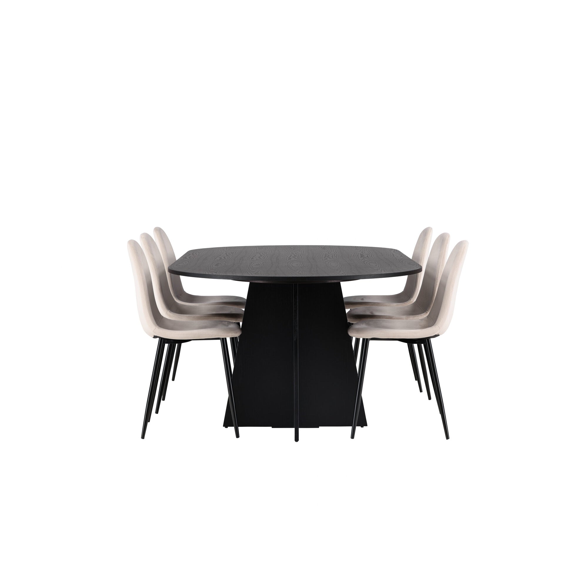 Bootcut oválný jídelní stůl - černá / černá Fanéer + jídelní židle Polar - černé nohy / béžový samet _6