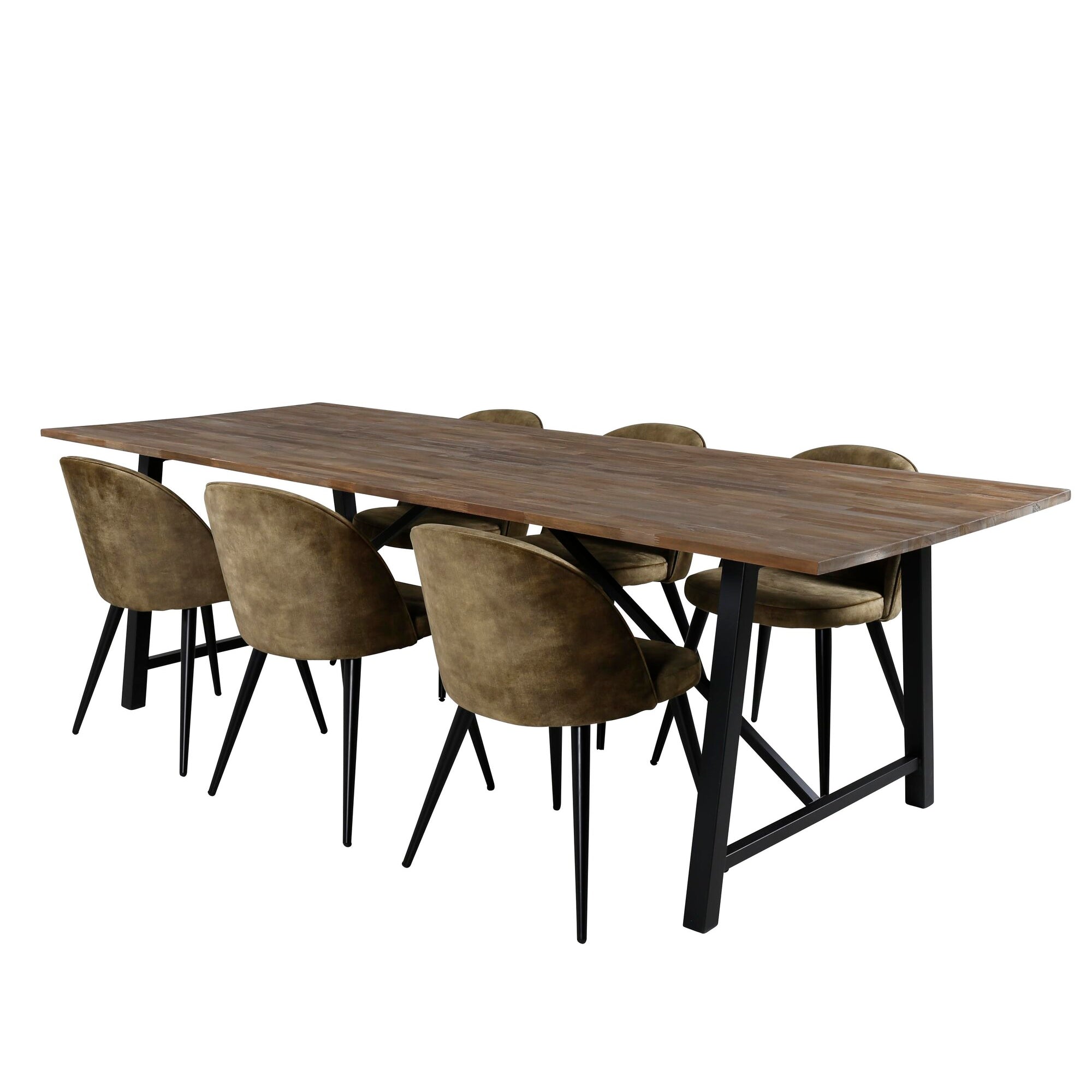 Jídelní stůl Malang - 250*100*H76 - Tmavý týk / Black+Velvet Jídelní křeslo - Černé nohy - Dusty Green Velvet_6