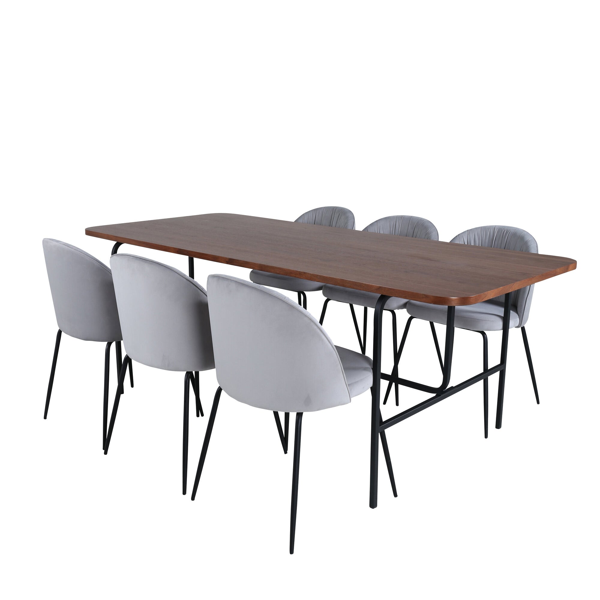 Jídelní stůl Uno , černá ořechová dýha + vrásčitá jídelní židle , černé nohy , šedý samet_6