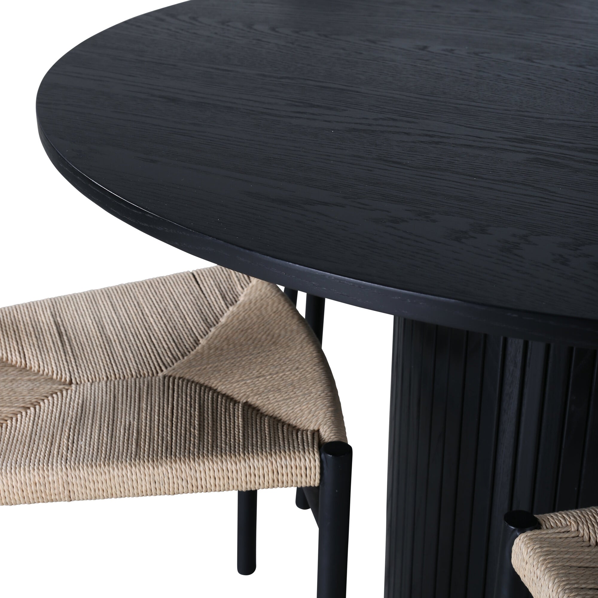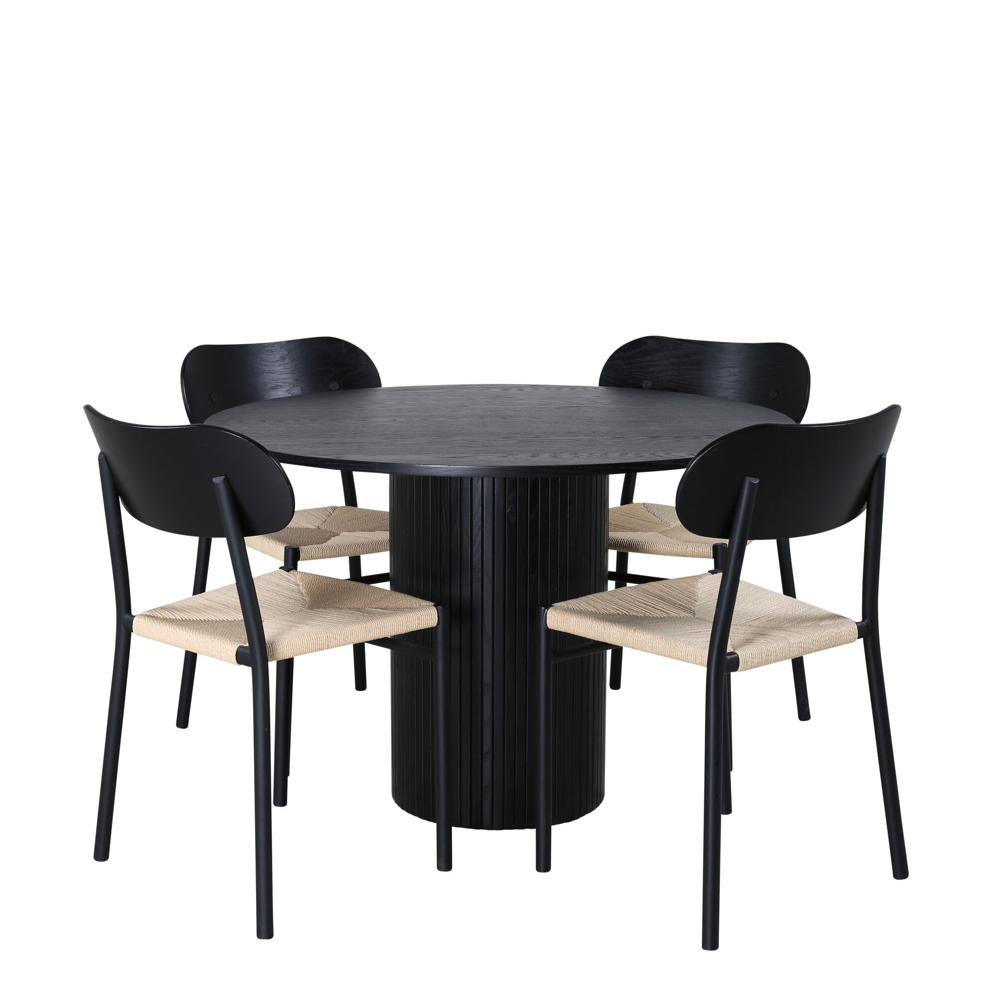 Bianca kulatý jídelní stůl - černá / černá dýha + jídelní židle Polly - černá / přírodní _4