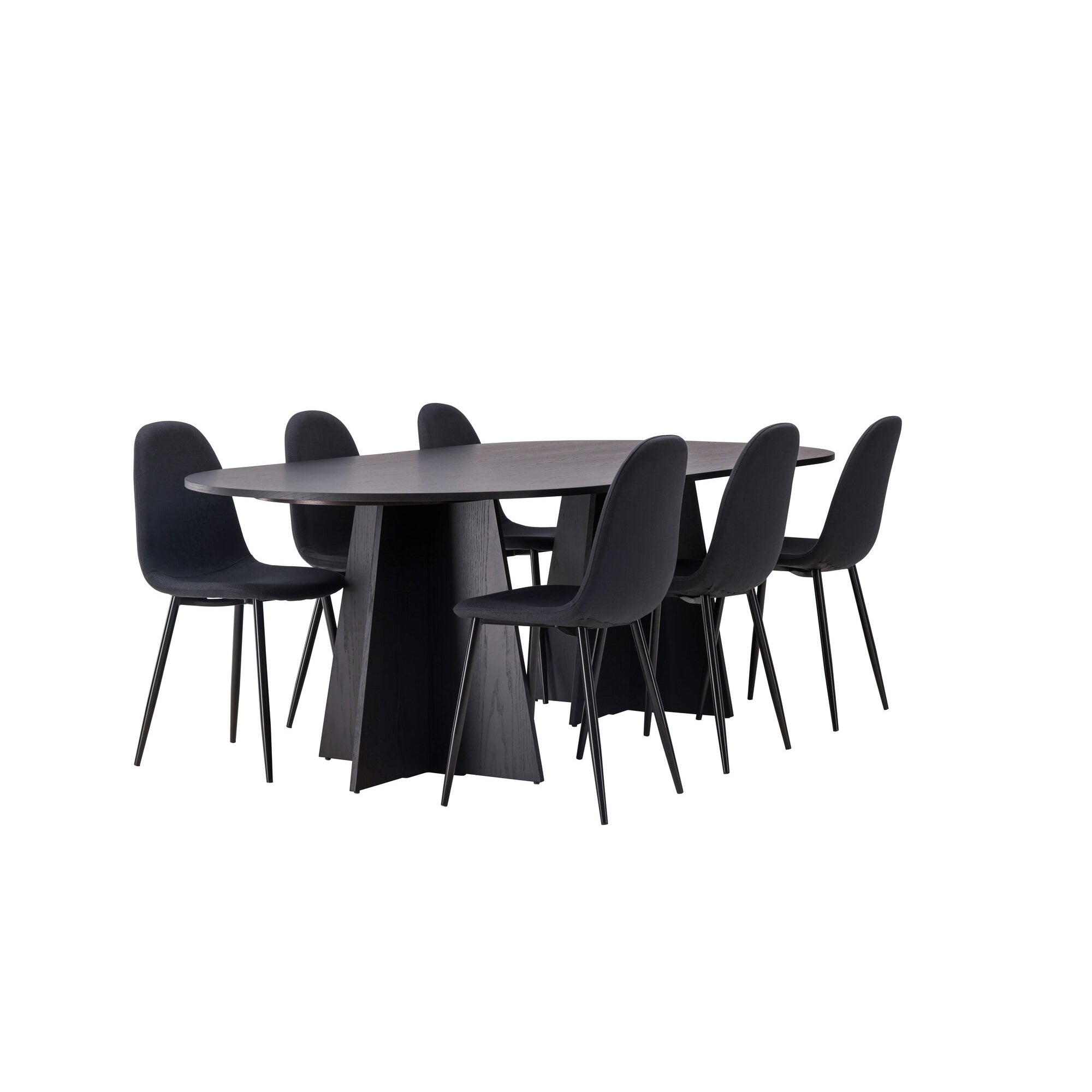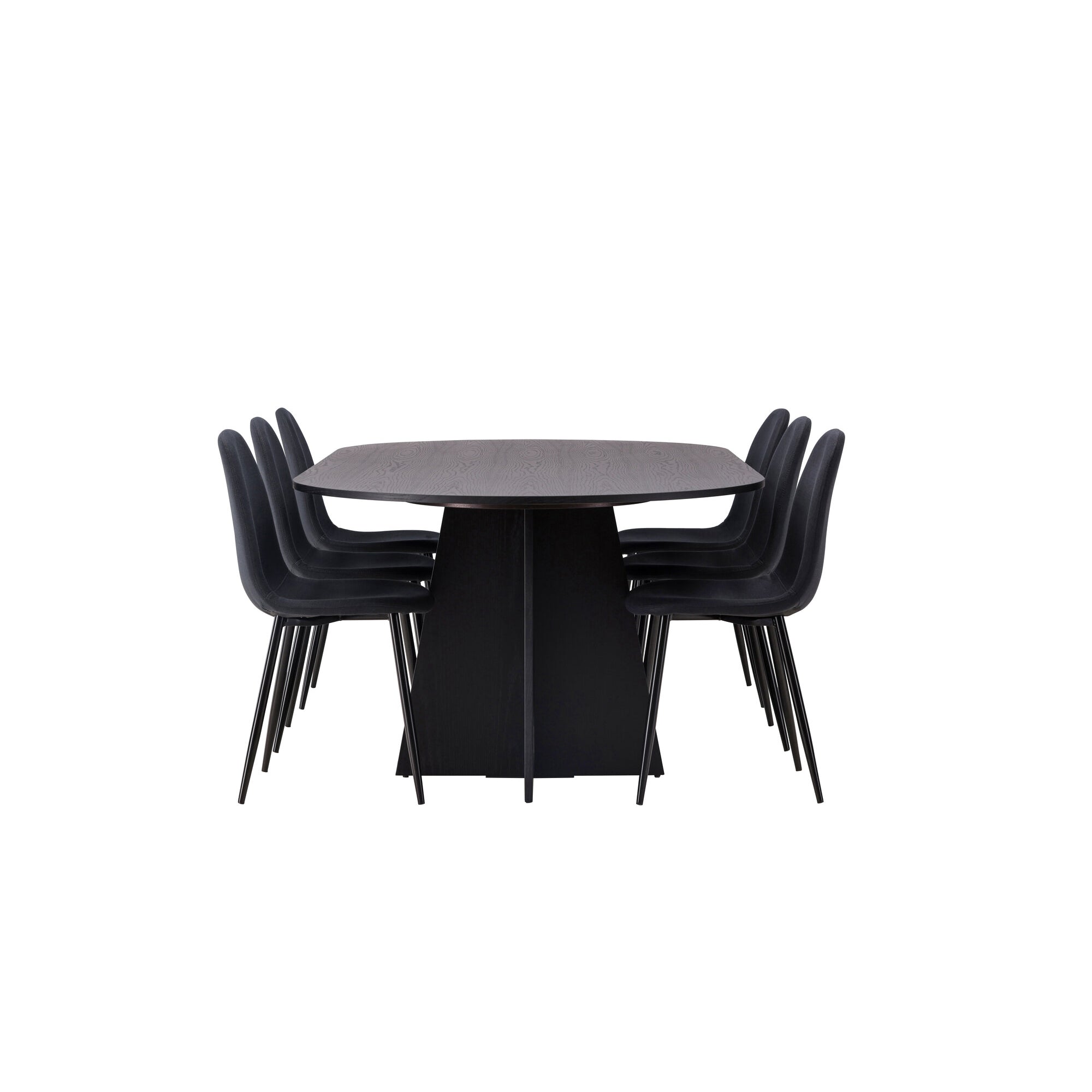 Bootcut oválný jídelní stůl – černá / černá Fanéer + jídelní židle Polar – černé nohy – černá látka _6