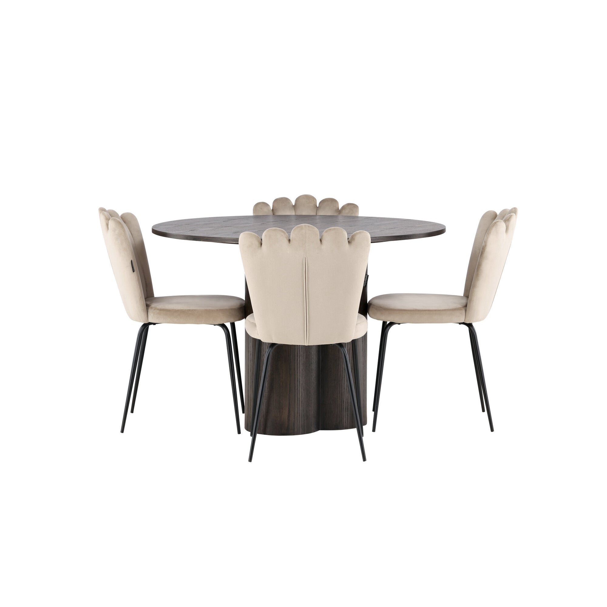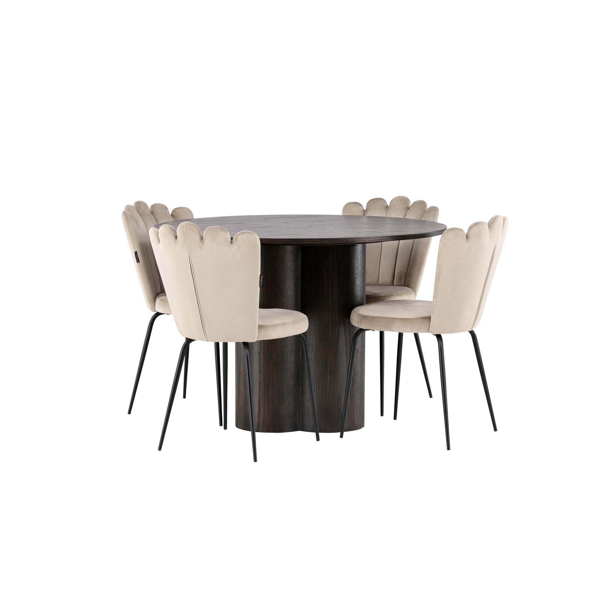 OliviaJídelní stůl-Mocca/MoccaVeneer+LimhamnLightChair-Black/BeigeVelvet_4