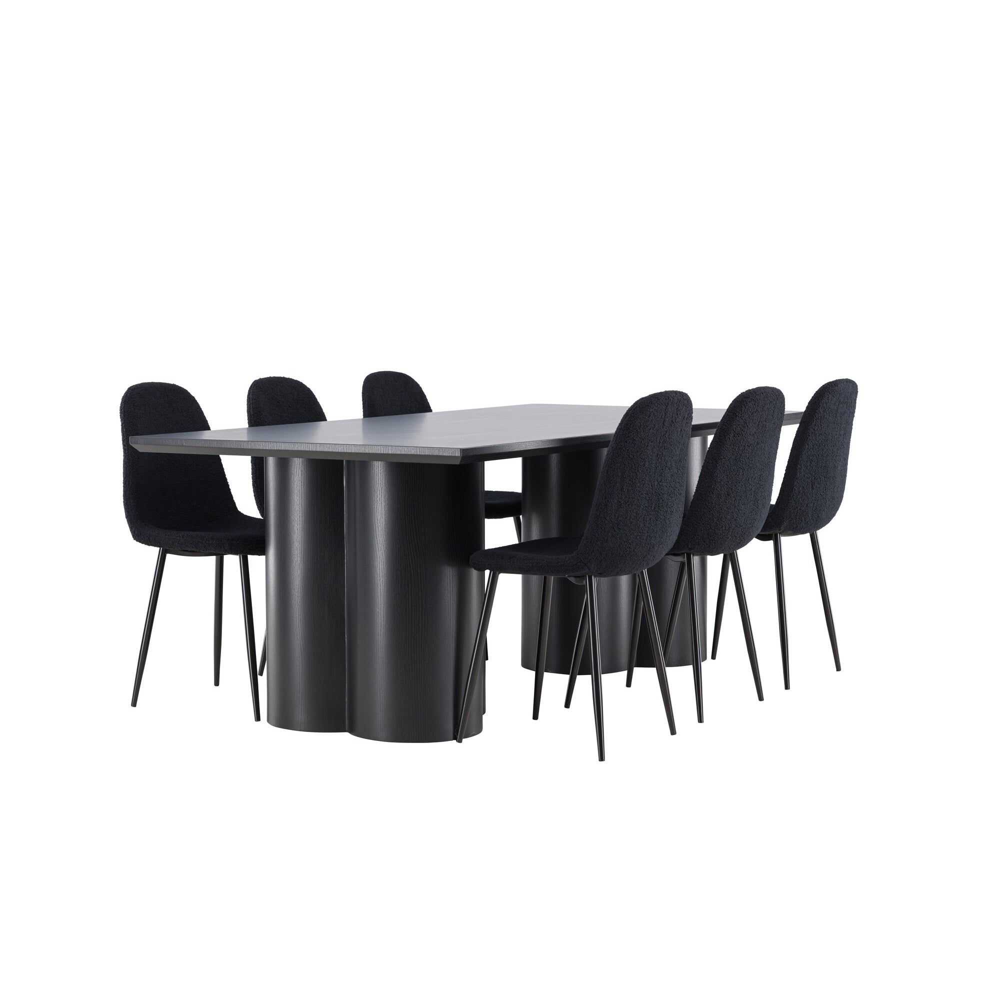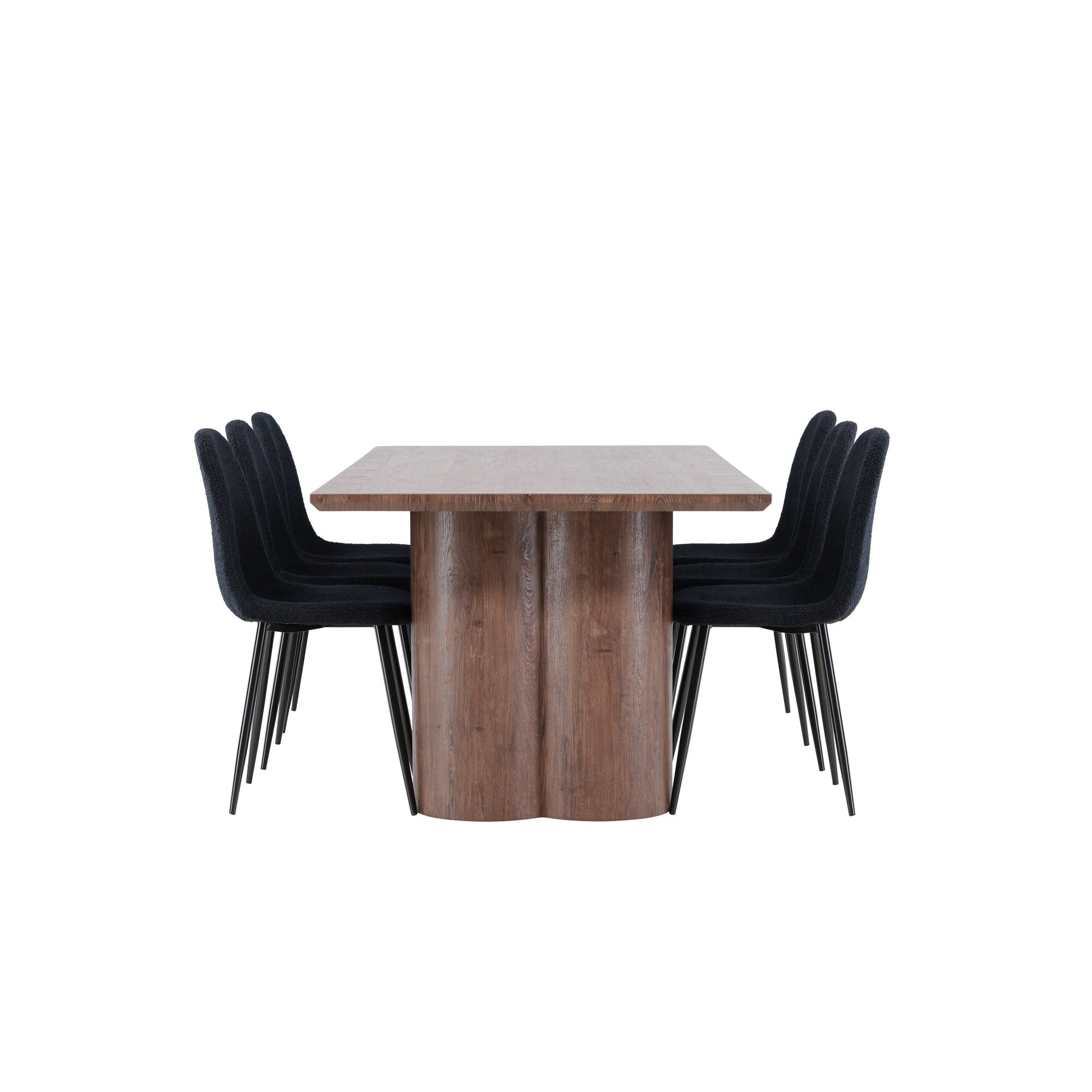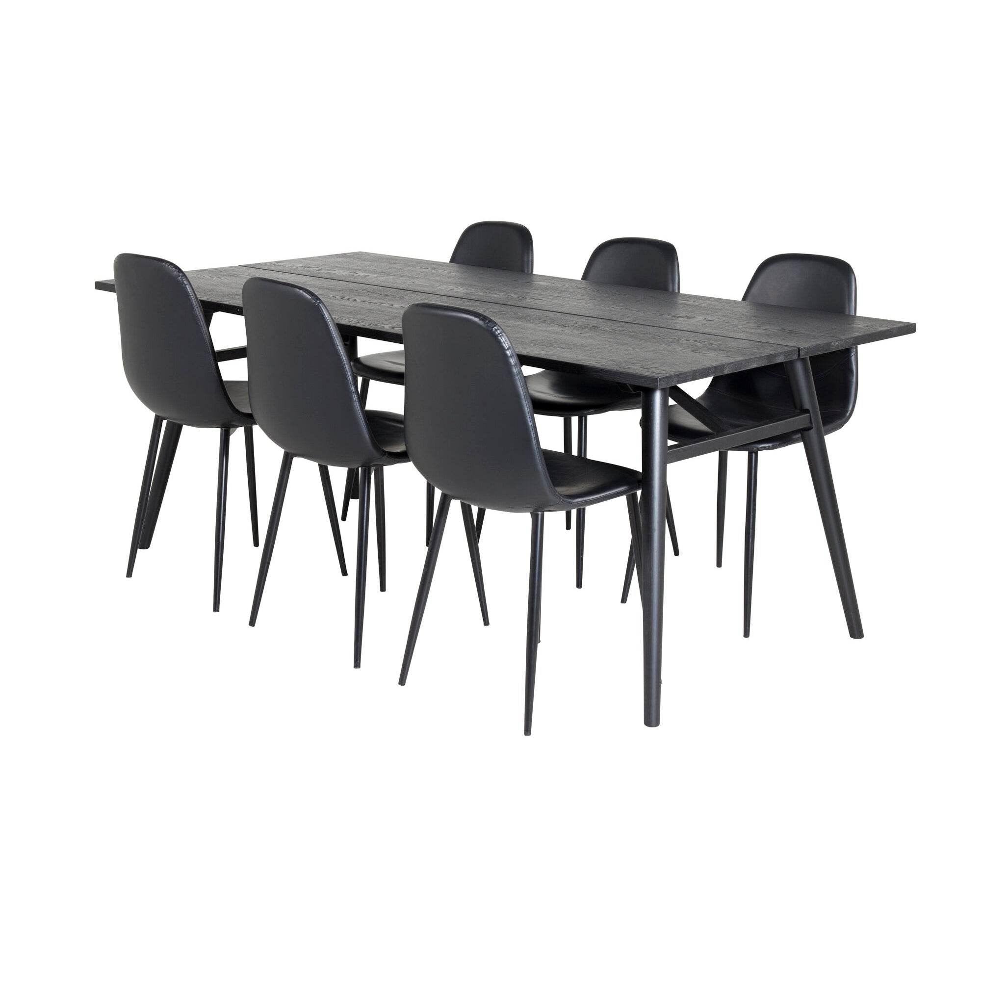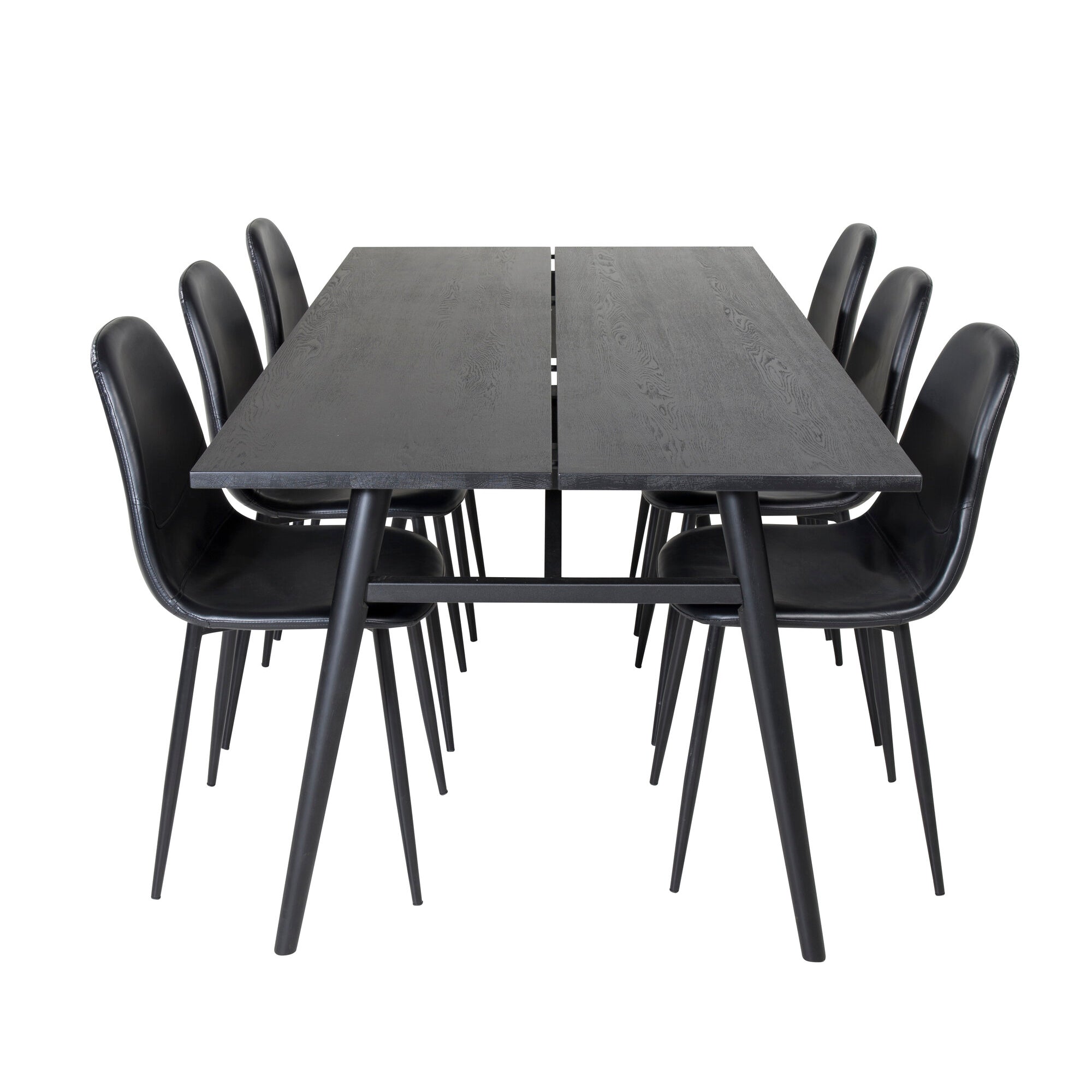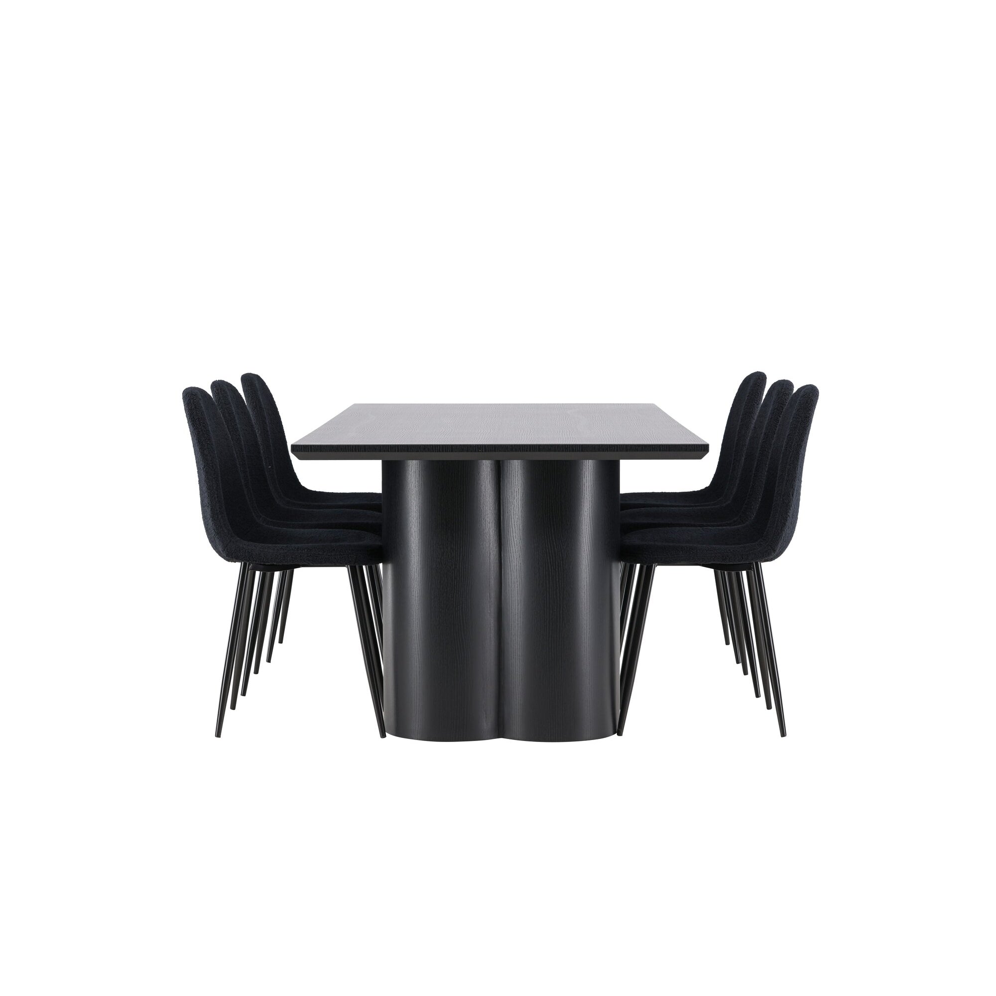 Jídelní stůl Mirko – černá + jídelní židle Levanzo – černá x 6