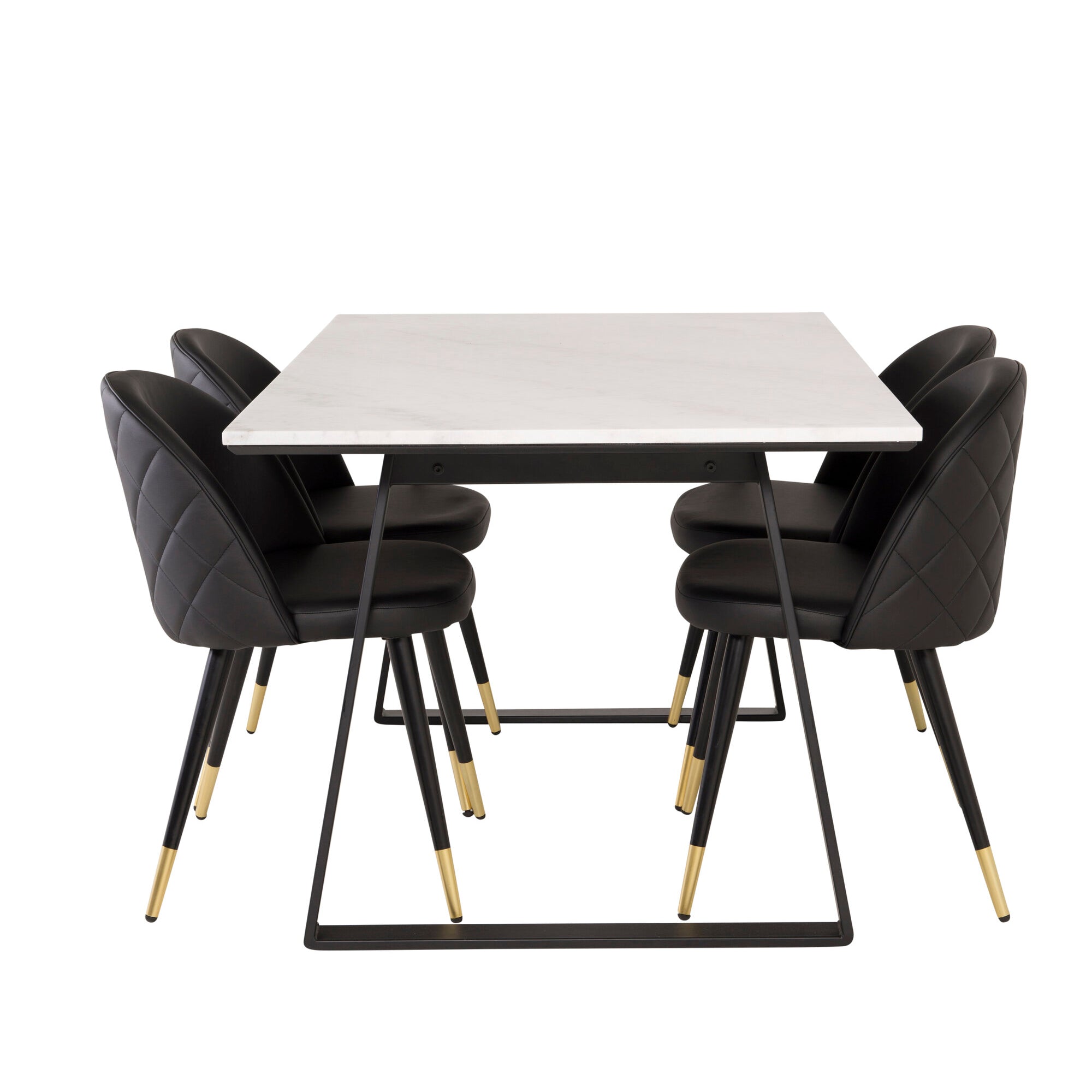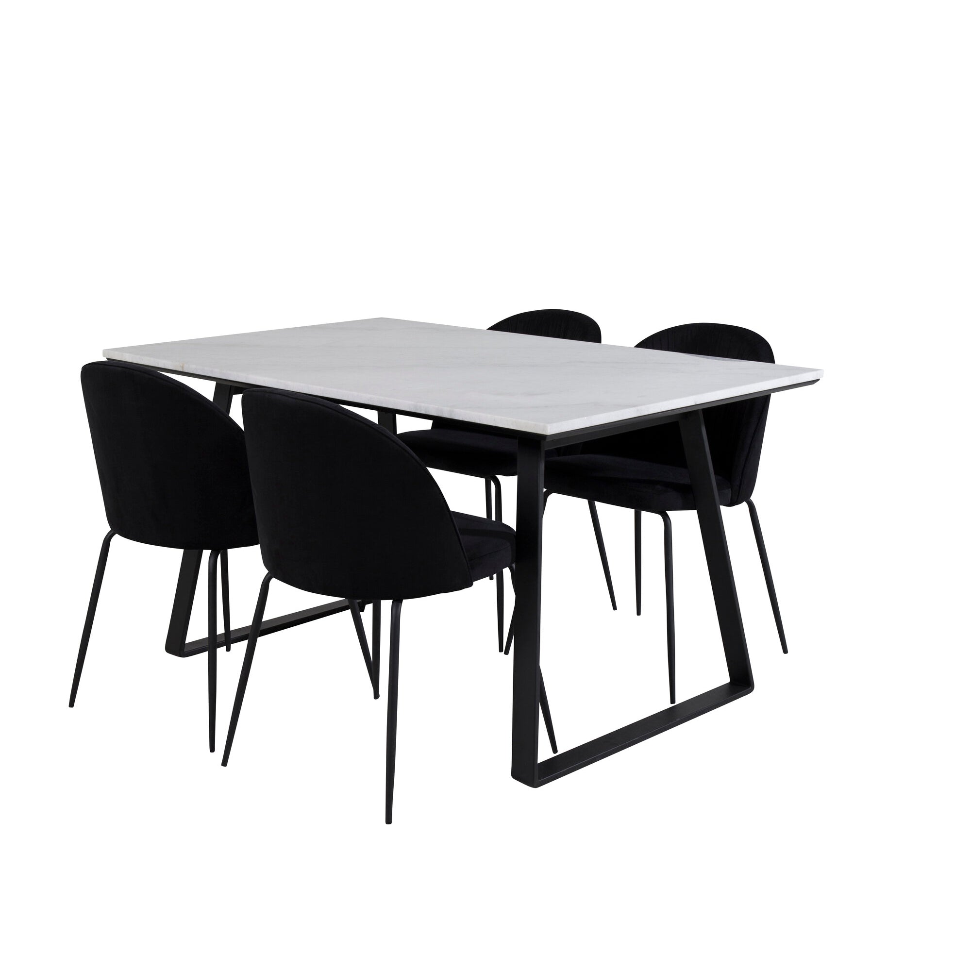 Estelle Jídelní stůl 140*90 – Bílá / Černá+Wrinkles Jídelní židle – Černé nohy – Black Velvet_4