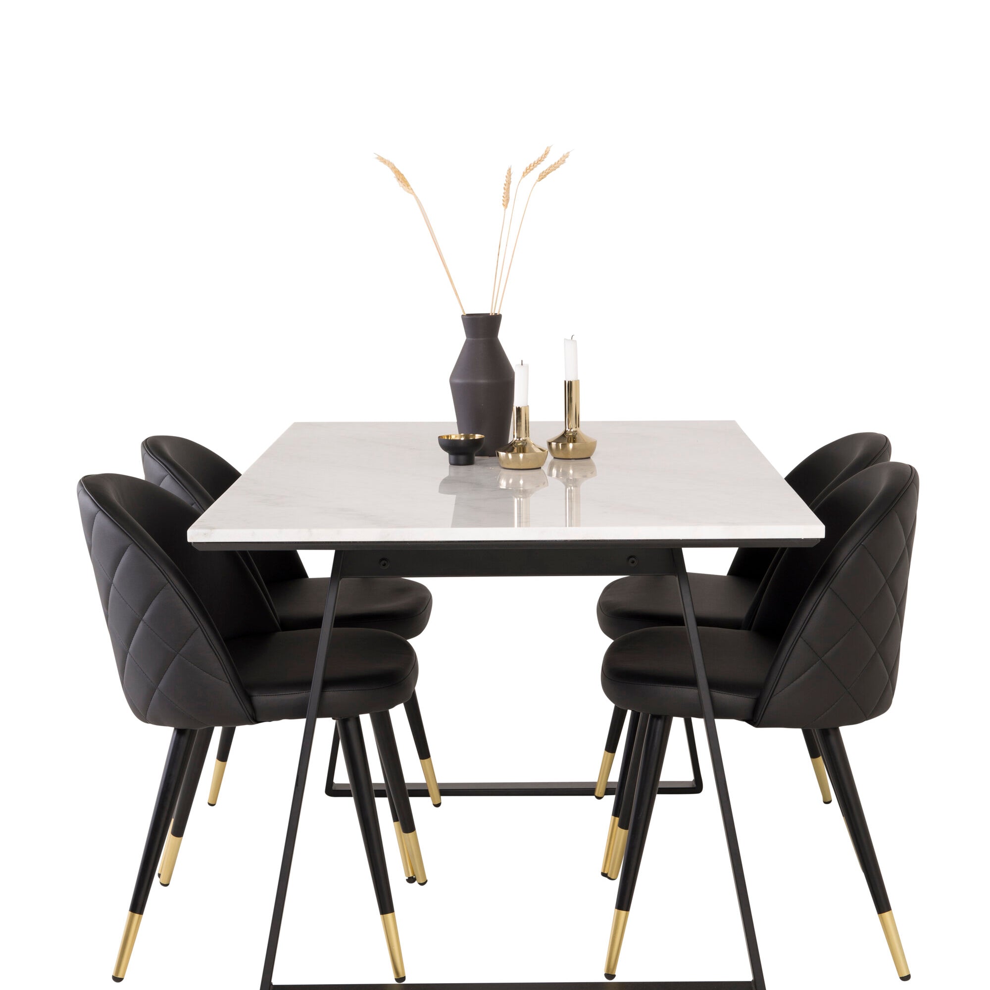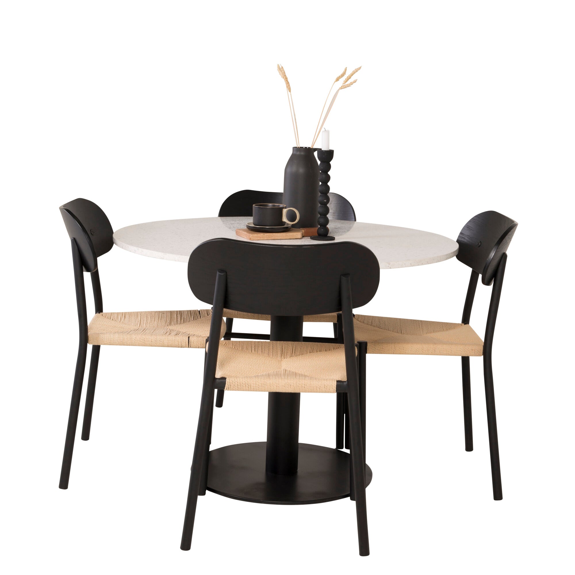 Jídelní stůl Razzia 106cm -Bílá Terazzo / Černá +Polly Steel Jídelní židle 2-balení, K/D, černé podsvícení sedadla _4