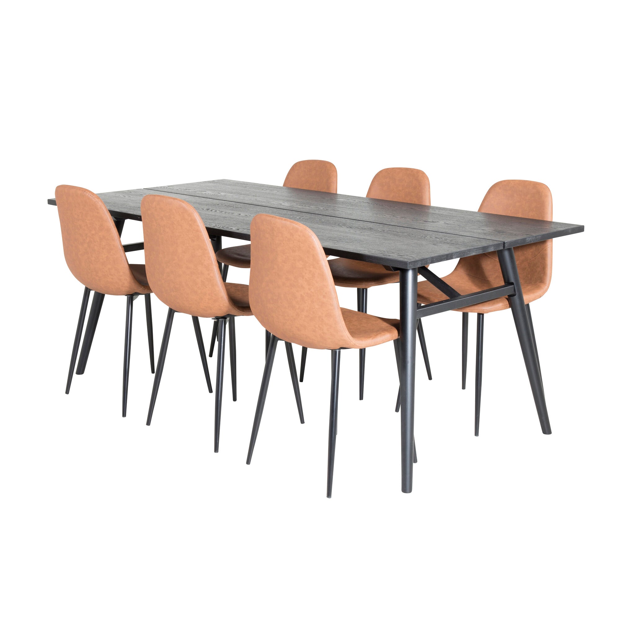 Cirebon Jídelní stůl 200*90cm - Teak / Černá +Polly Jídelní židle 2-balení - Černá / Černá _6