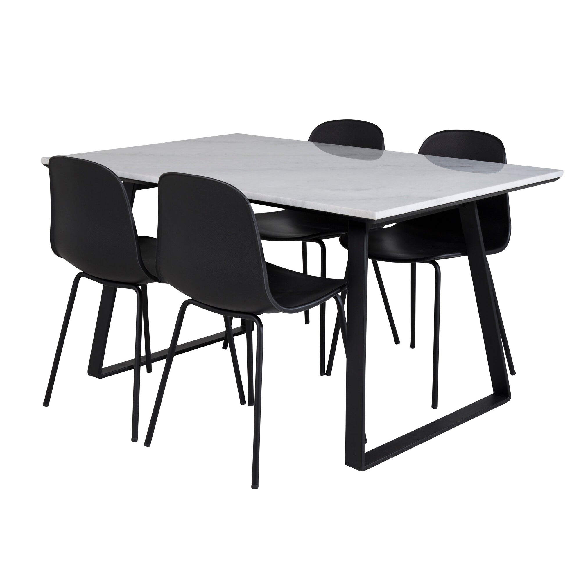 Jídelní stůl Estelle 140*90 - Bílá / Černá + Jídelní židle Arctic - Černé nohy - Černý plast_4