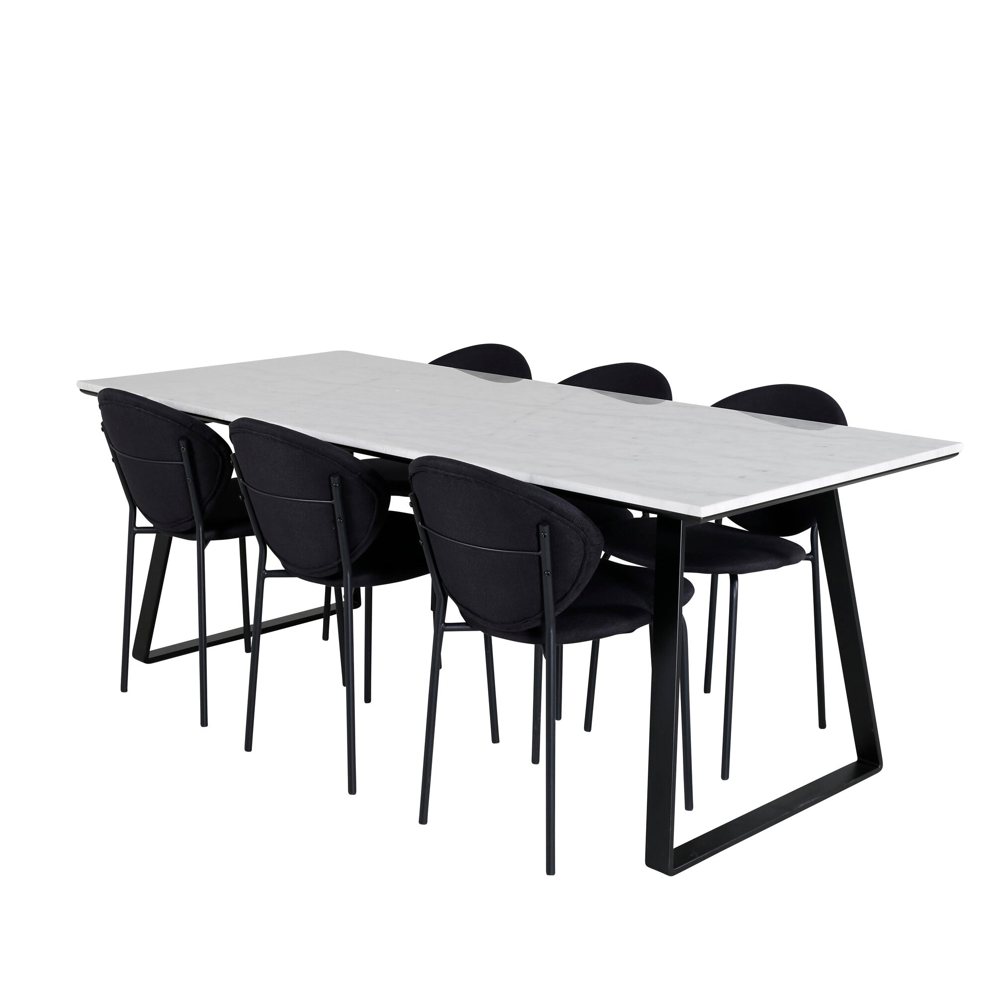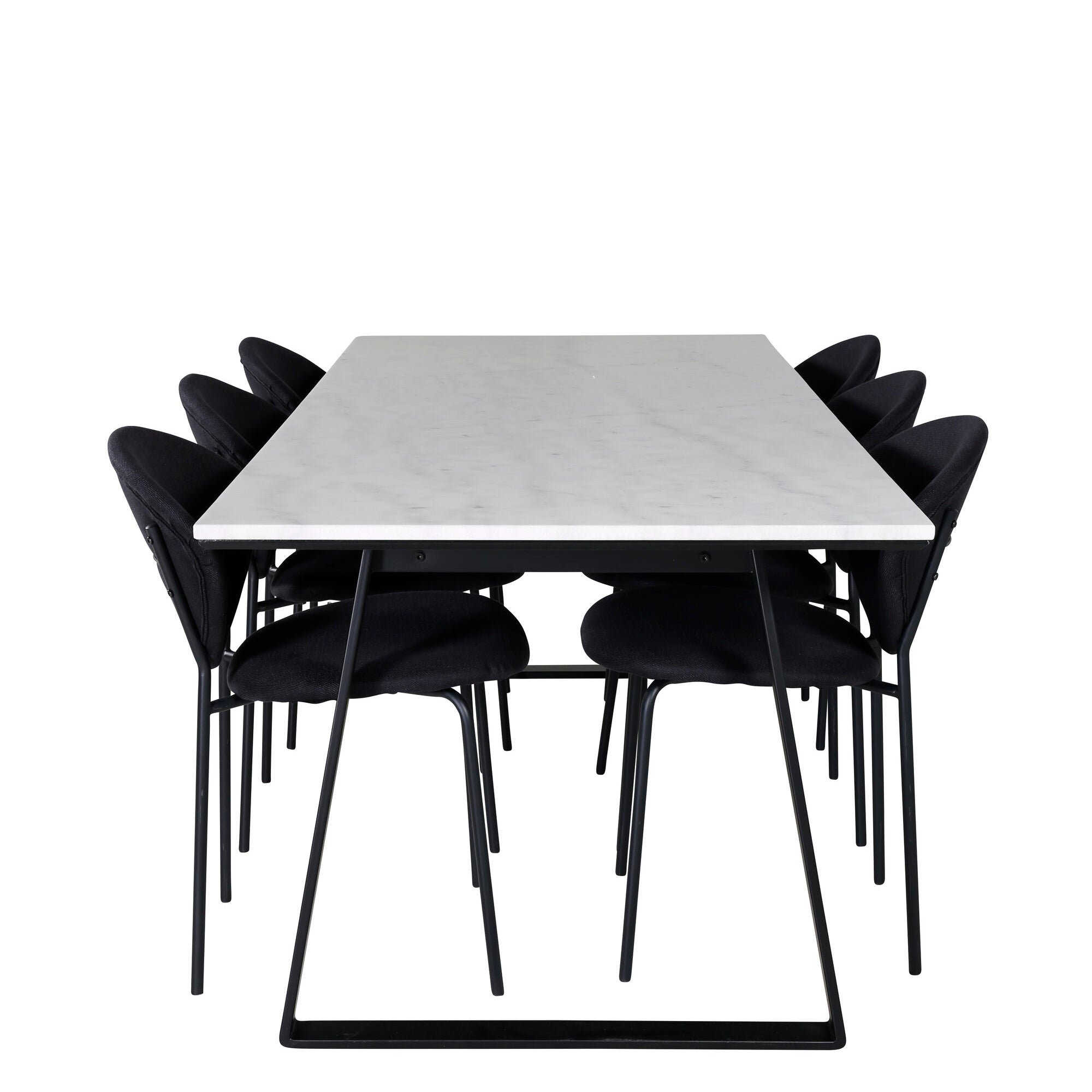 Estelle Jídelní stůl 200*90*H76 - Bílá / Černá + Jídelní židle Vault - Černé nohy - Černá Fabric_6