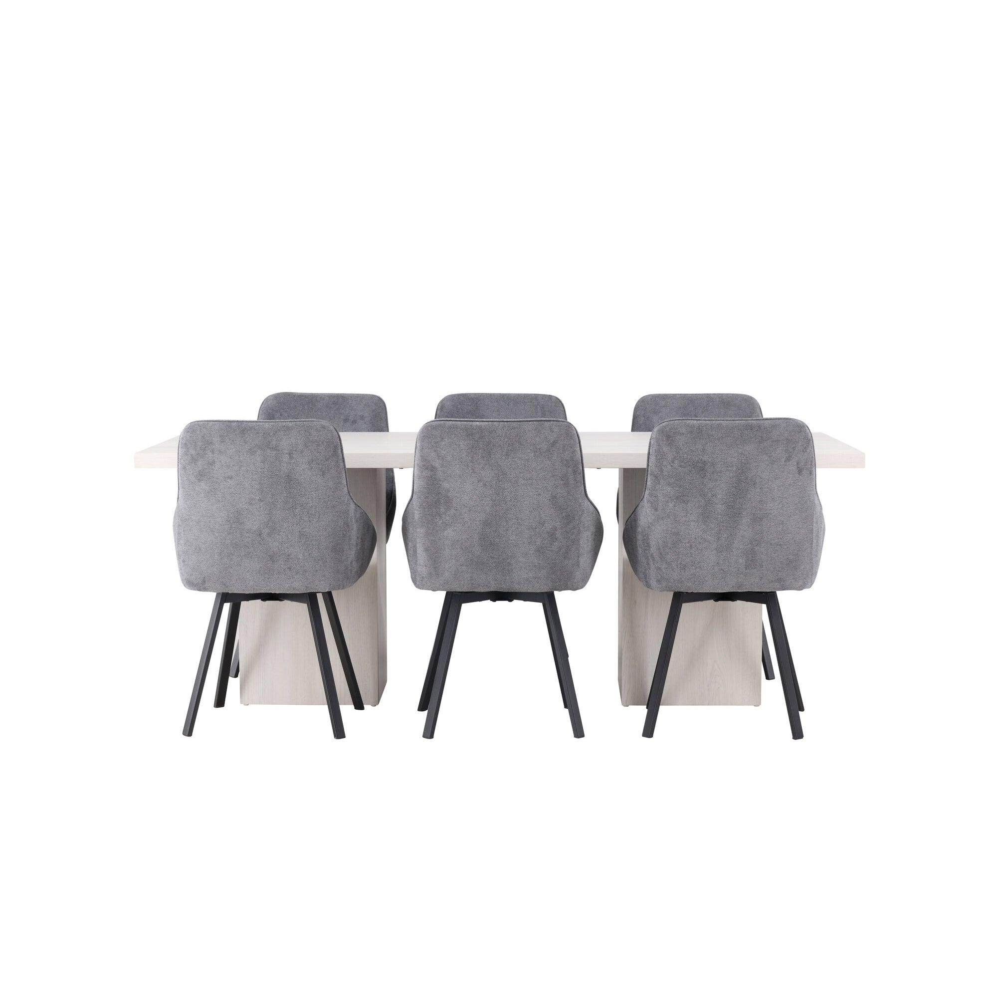 Jídelní stůl Olga 200*75 - White Wash + Rosie Jídelní židle - Černá / Tmavě šedá látka _6