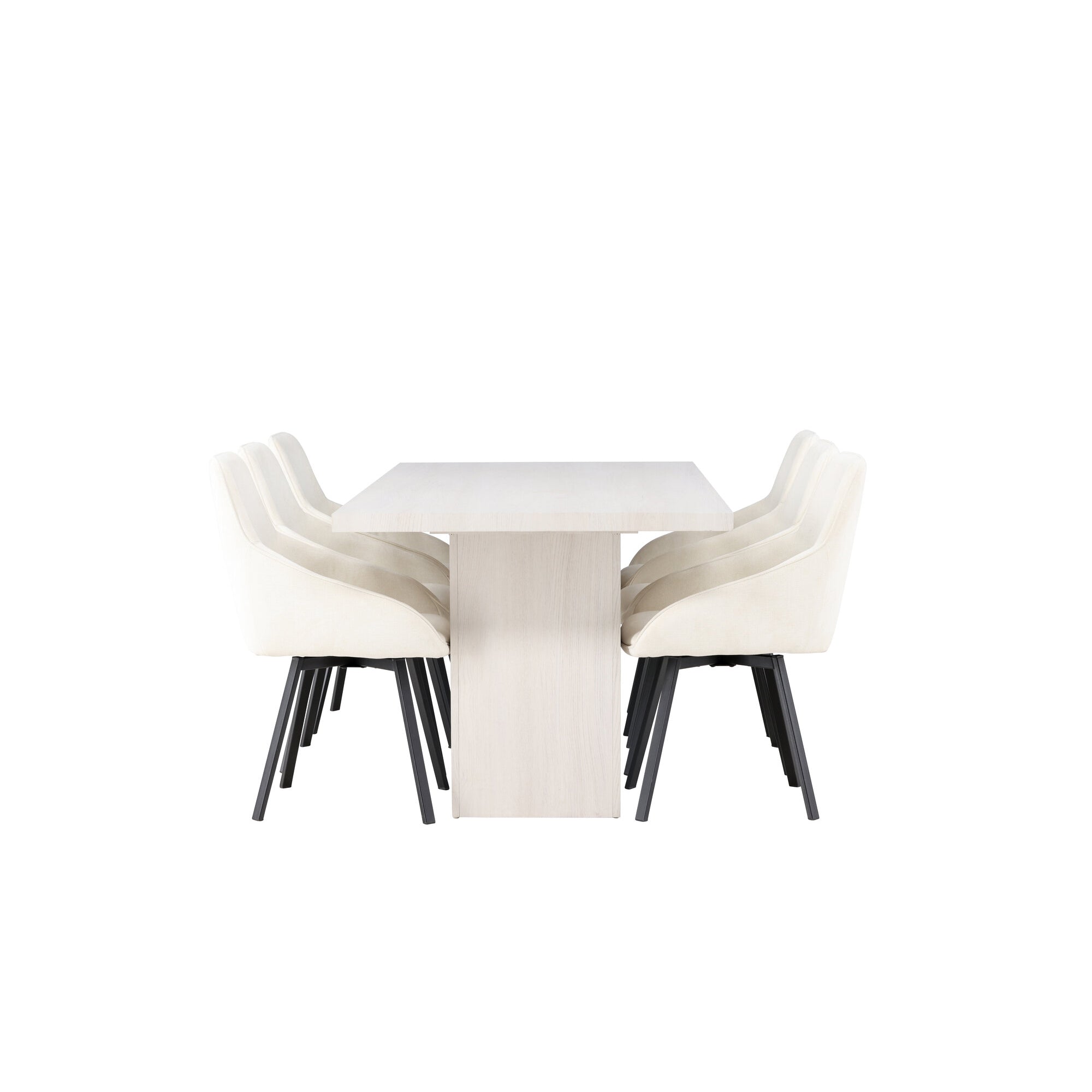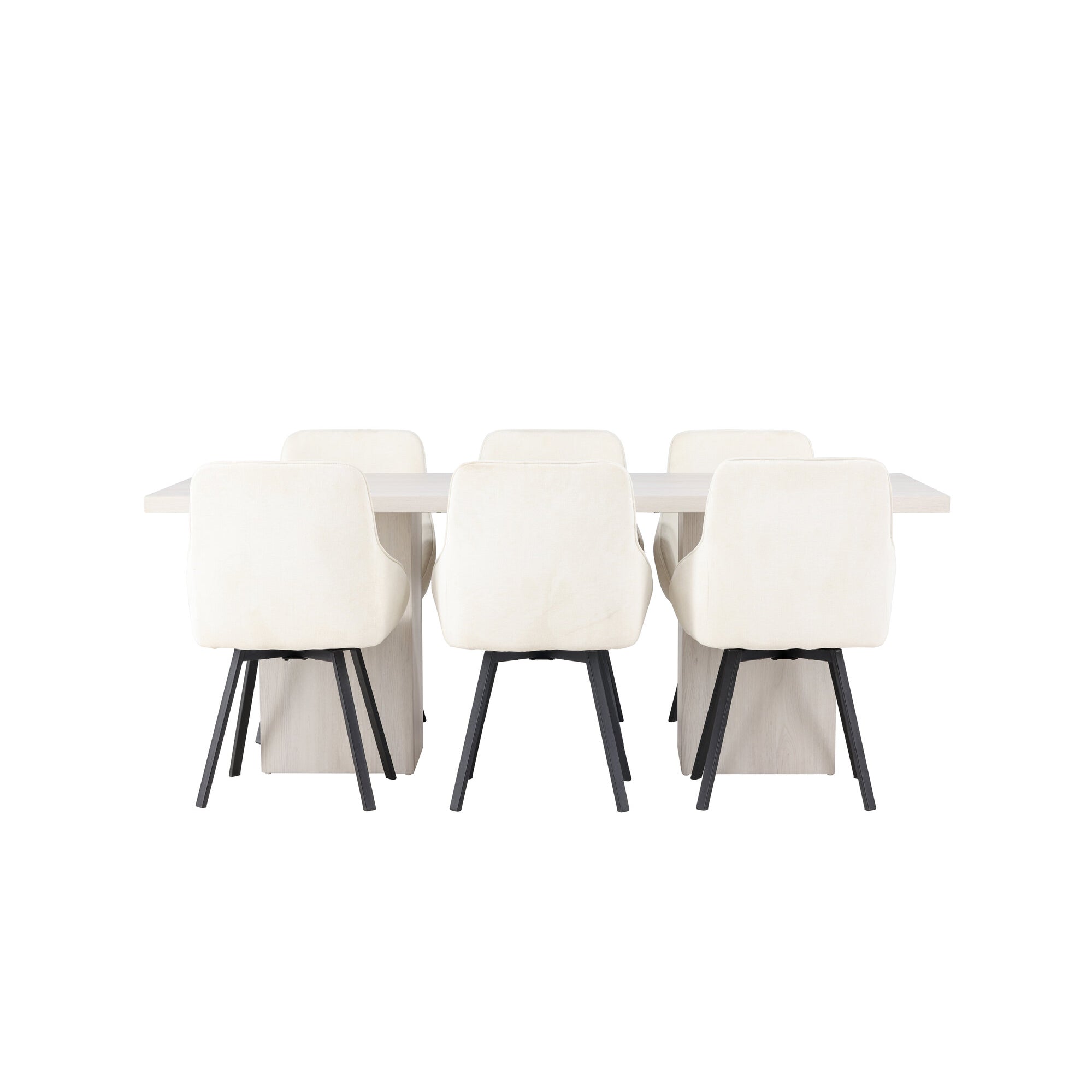 Jídelní stůl Olga 200*75 - White Wash + Rosie Jídelní židle - Černá / Béžová látka _6
