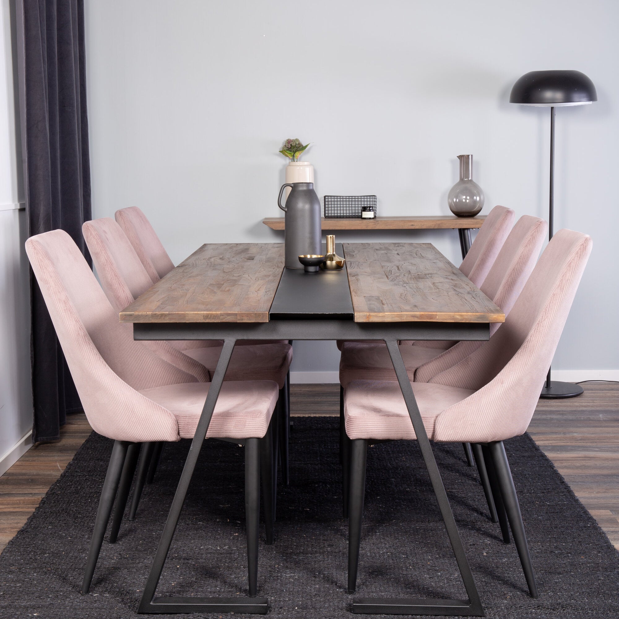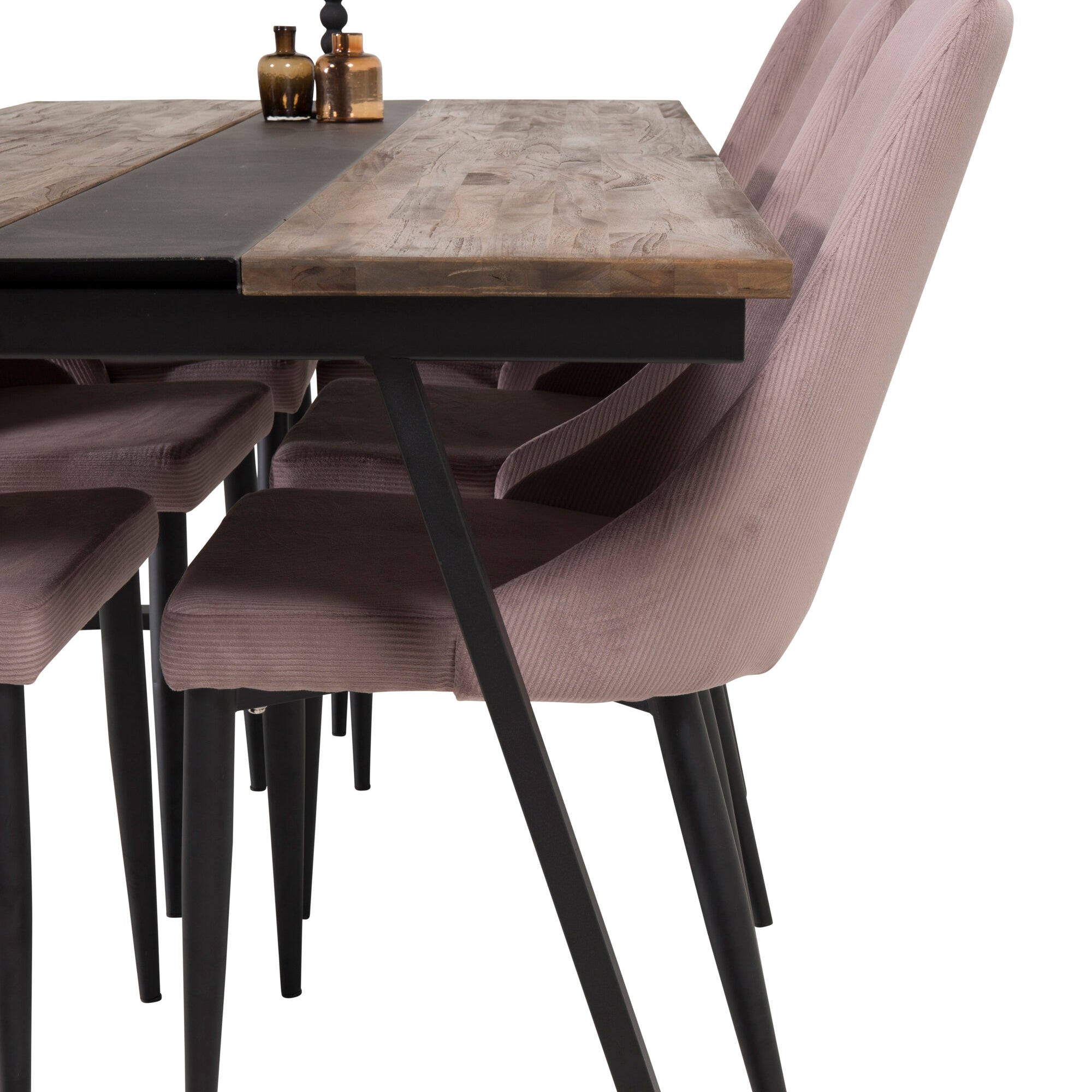 Jakarta Matbord - Svart / mörk Teak - 200*90*H75 +Jídelní židle Leone - černé nohy / Dusty PinkCorduroy _6