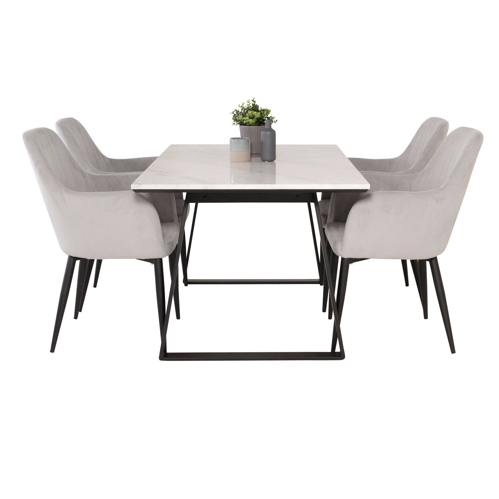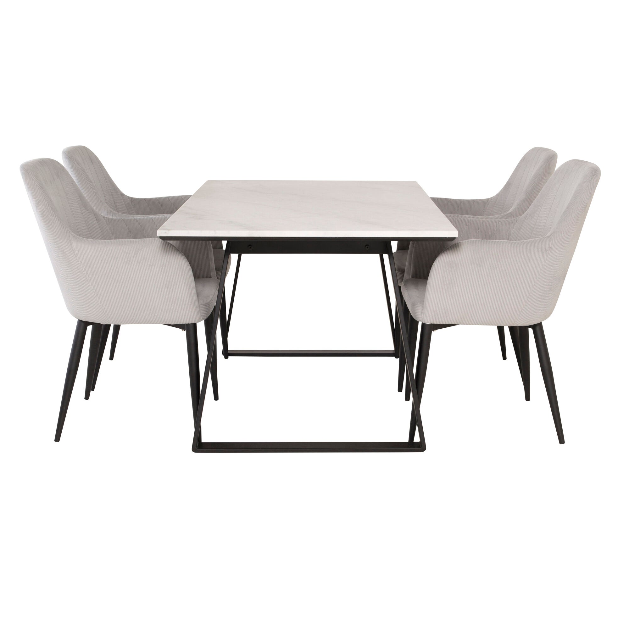 Jídelní stůl Estelle 140*90 – bílý mramor / černé nohy + komfortní jídelní židle – černé nohy / světle šedý manšestr _4
