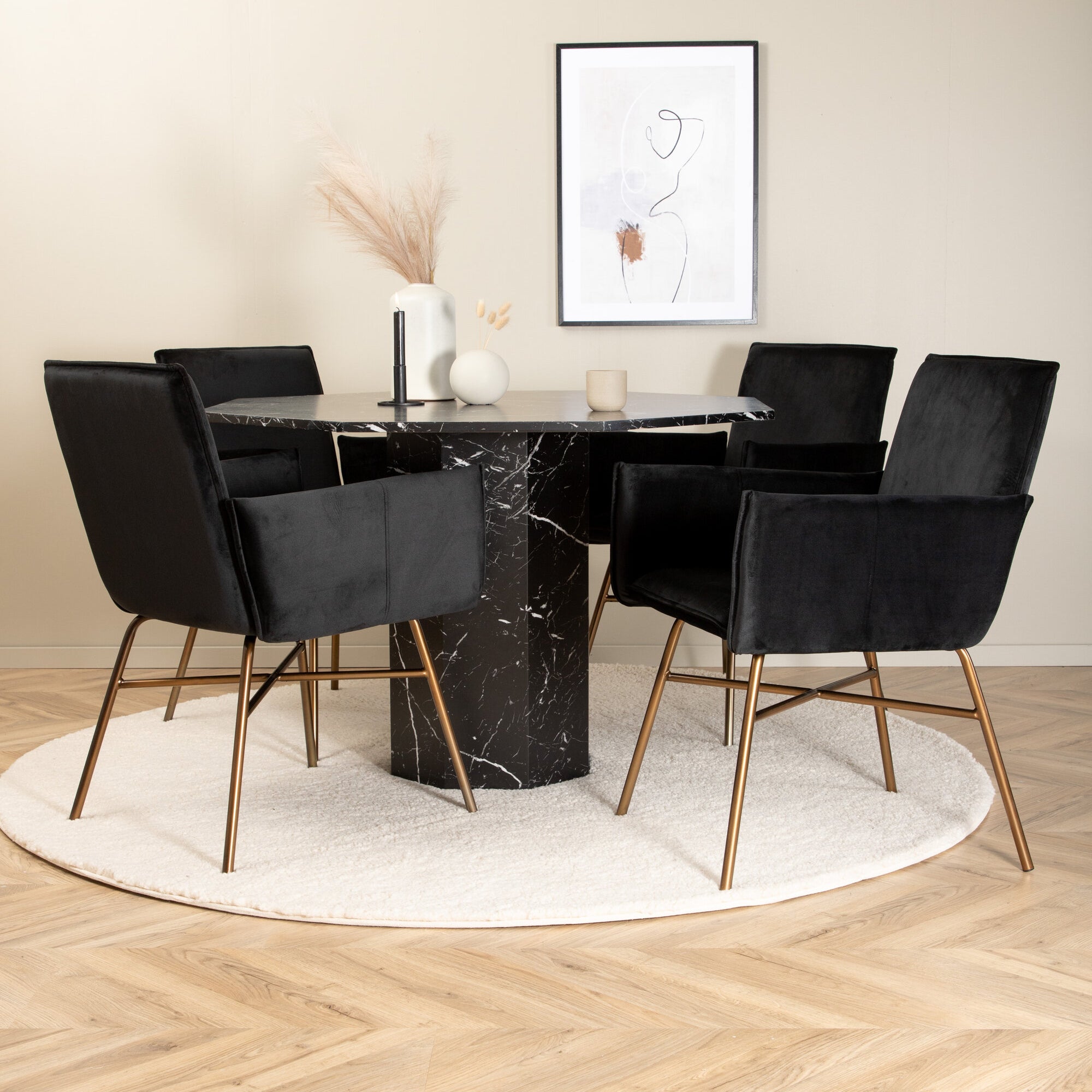 Kulatý jídelní stůl Marbs - černá / černá skleněná židle Marble+Petra - měď / černý samet_4