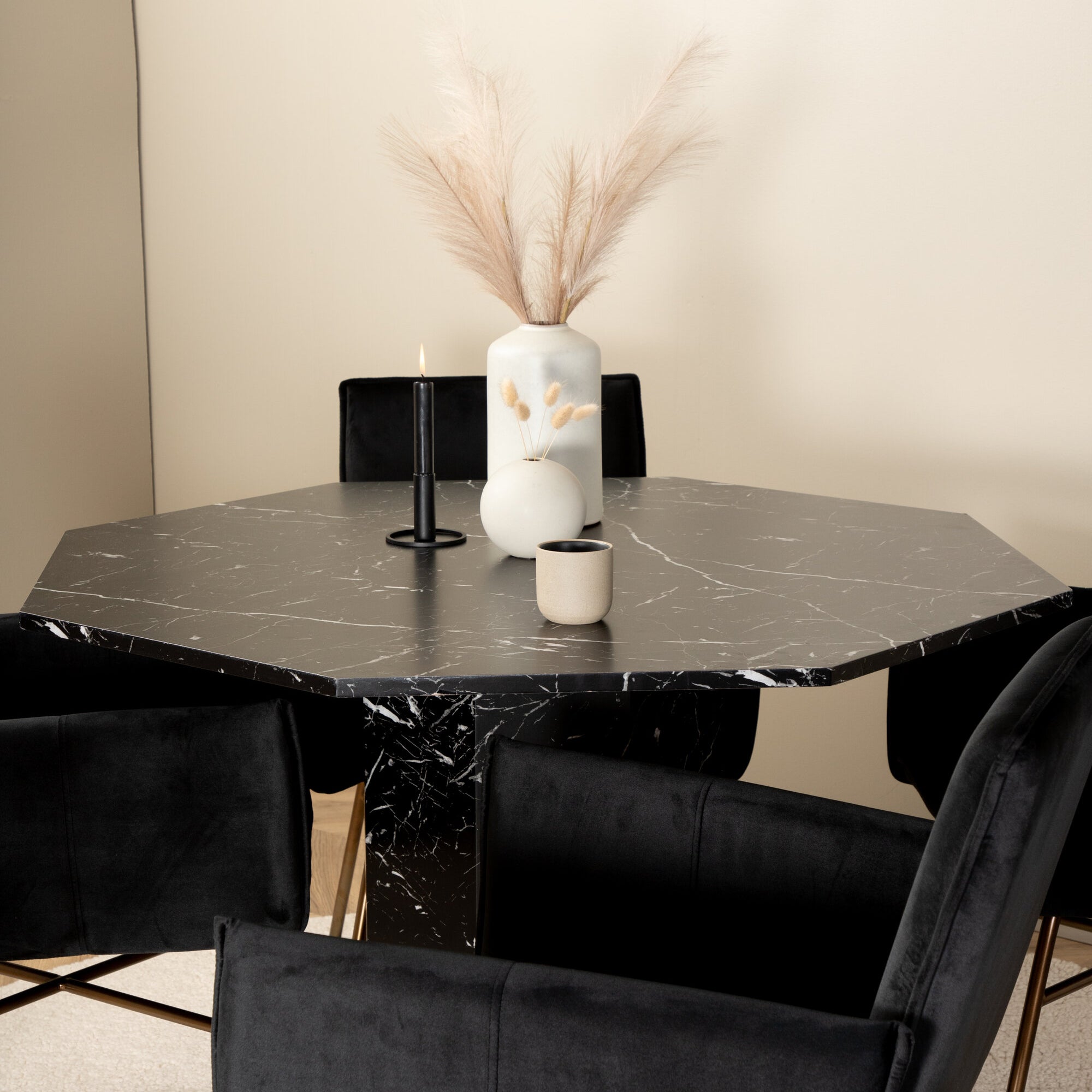 Kulatý jídelní stůl Marbs - Černá / Černé sklo Marble+Židle Petra - Černá / Černá Velvet_4