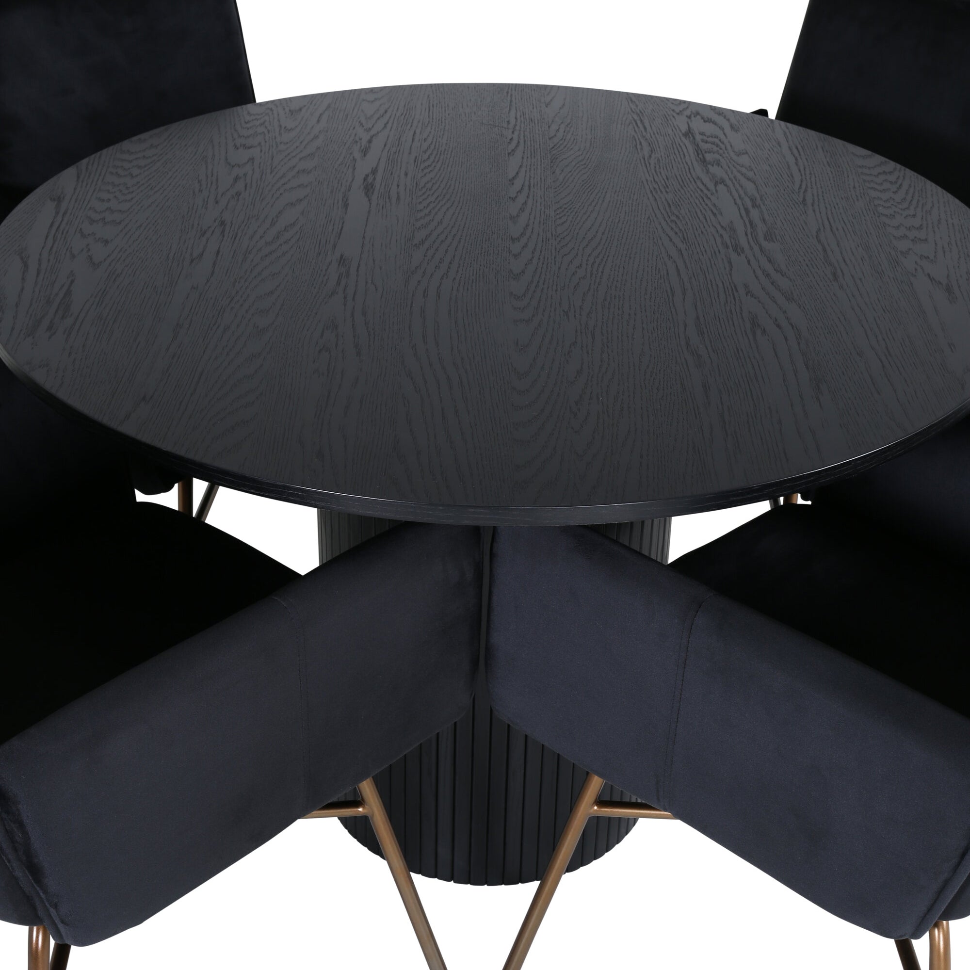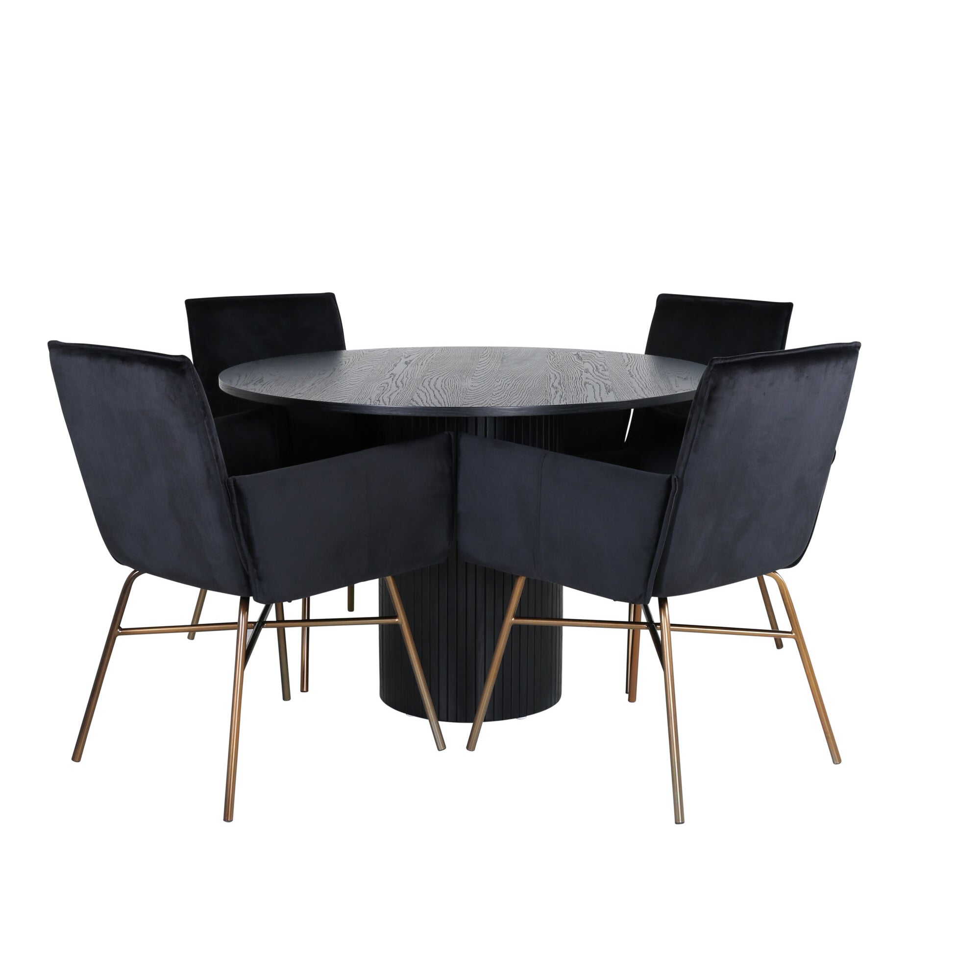 Bianca kulatý jídelní stůl - černá / černá dýha + židle Petra - distressed měď / černý samet_4