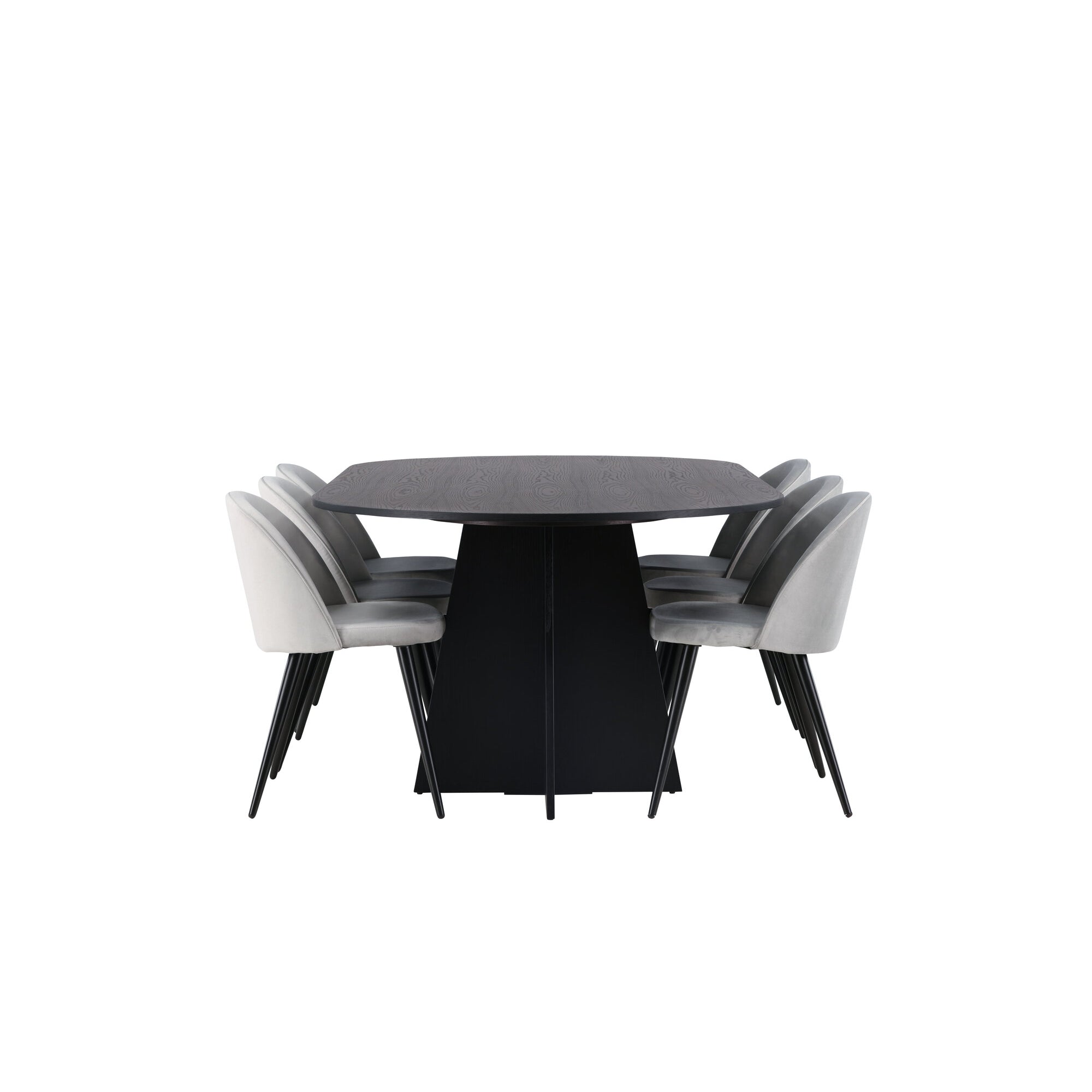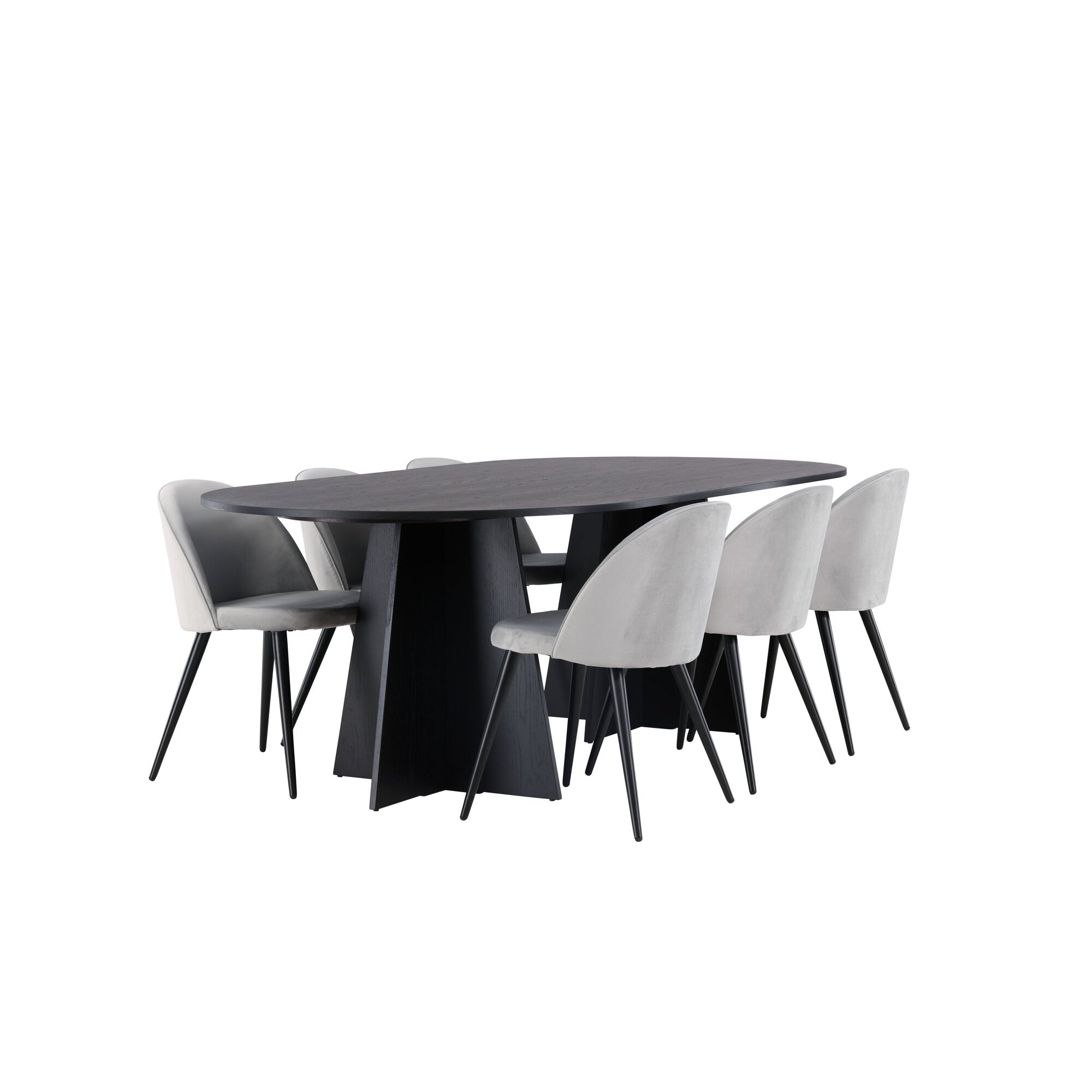 Bootcut oválný jídelní stůl – černá / černá Fanéer + sametová jídelní židle – světle šedá / černá _6