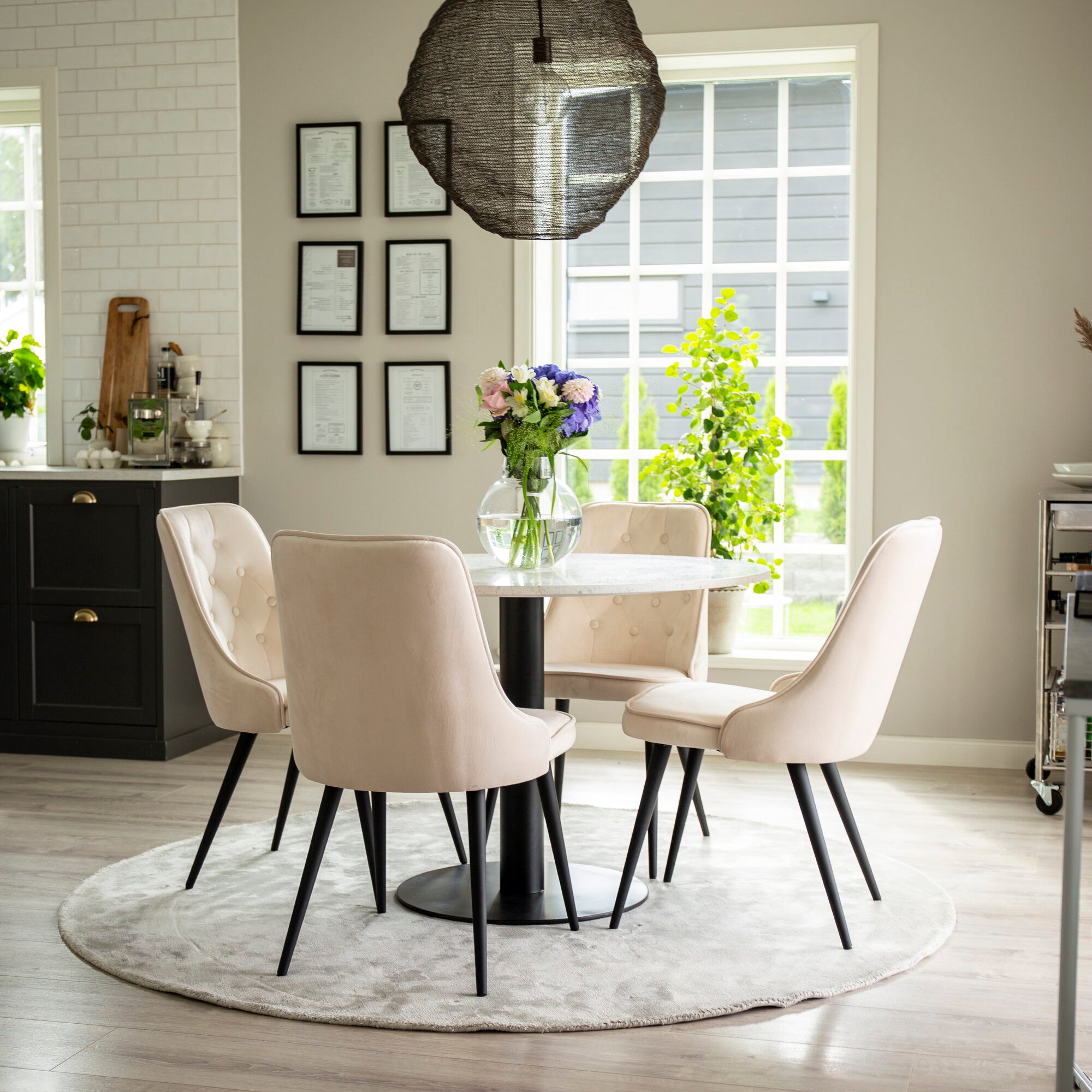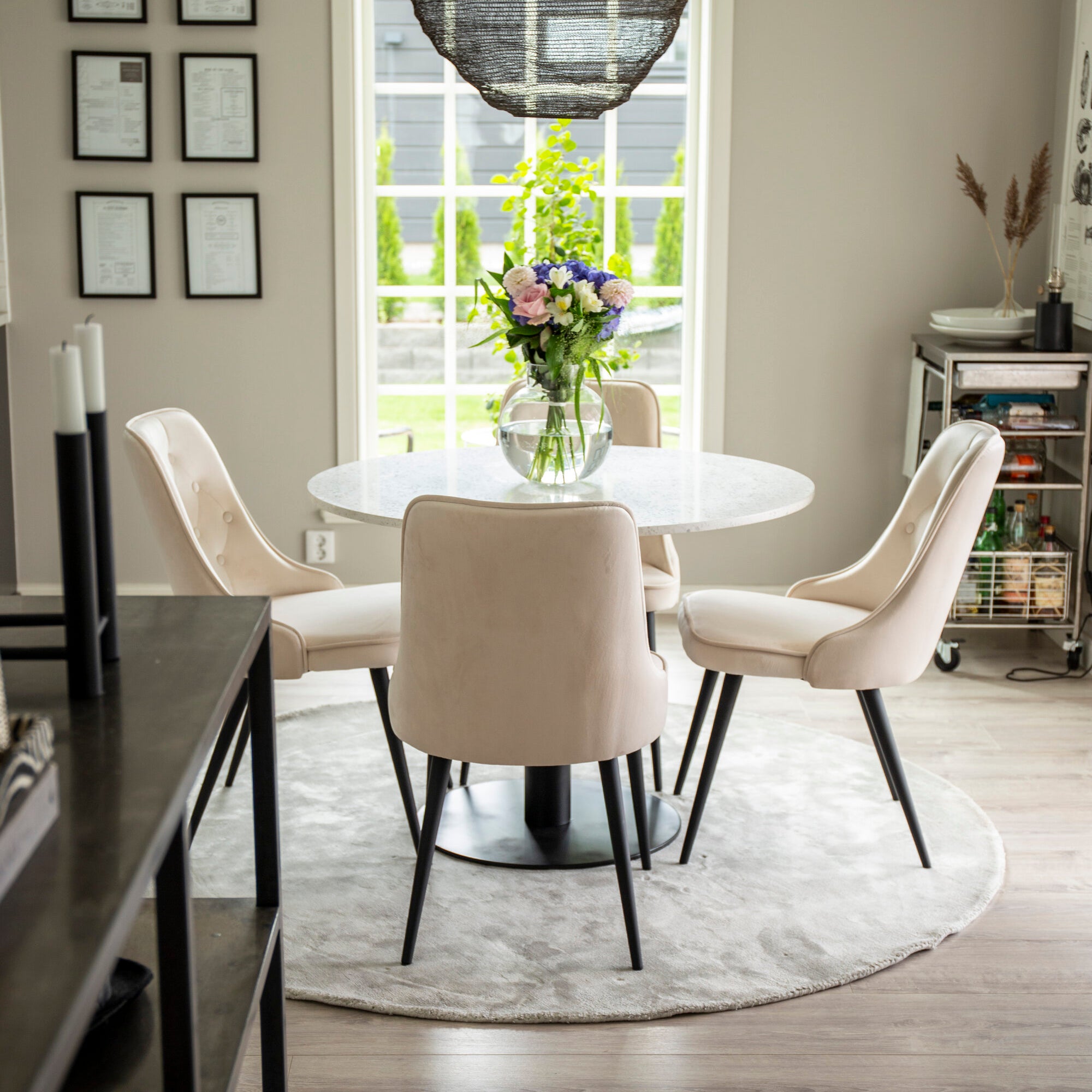 Jídelní stůl Razzia 106 cm -Bílá Terazzo / Černá - Velvet Deluxe Jídelní židle - Černé nohy / Béžový samet 4