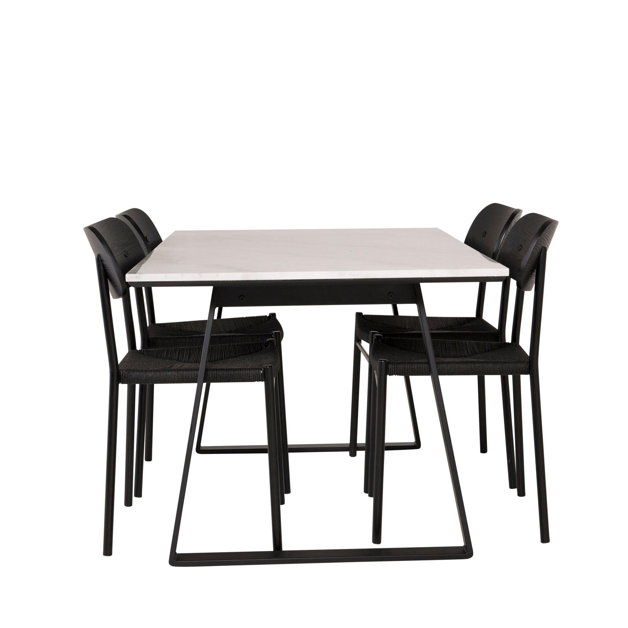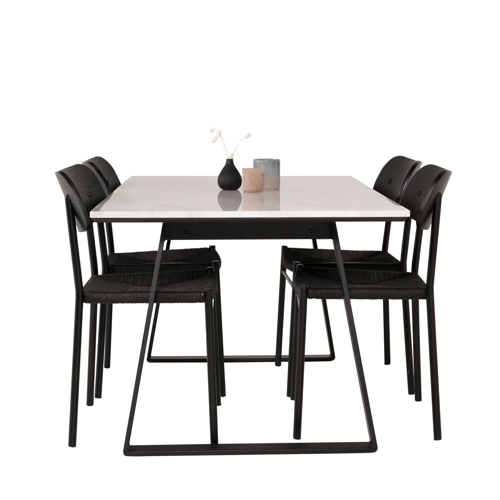 Jídelní stůl Estelle 140*90 – bílý mramor / černé nohy + jídelní židle Polly – černá / černá _4