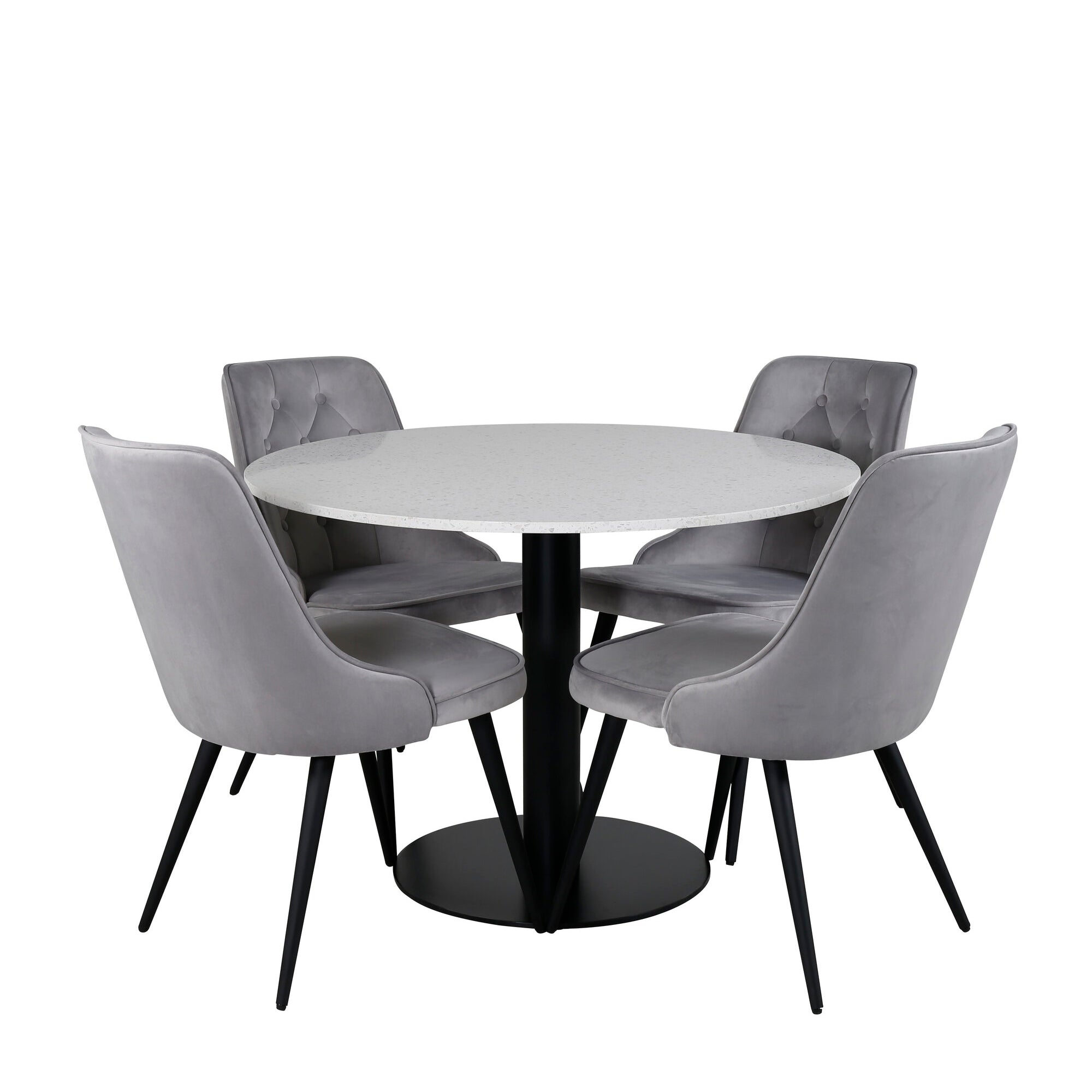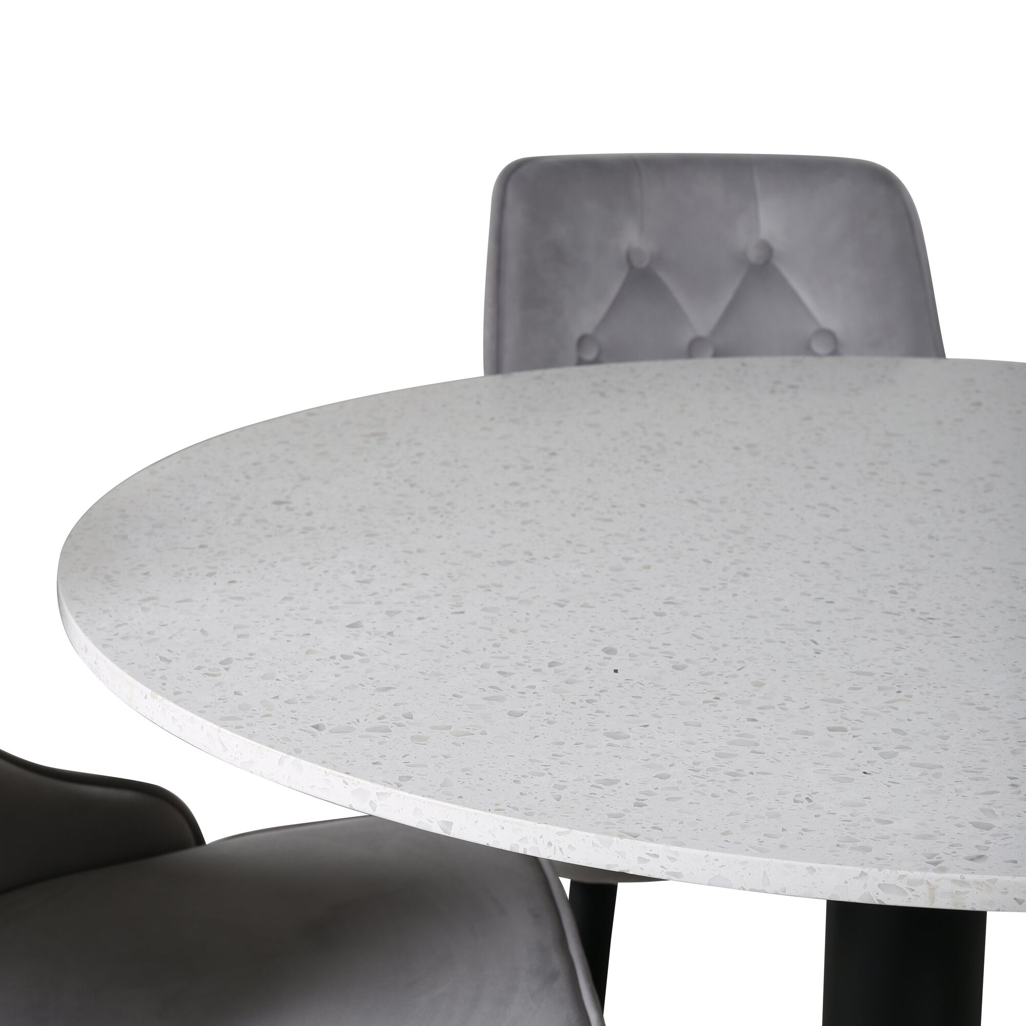Jídelní stůl Razzia 106 cm - Bílá Terazzo / Černá+Velvet Deluxe Jídelní židle - Černé nohy / Světle šedá samet_4