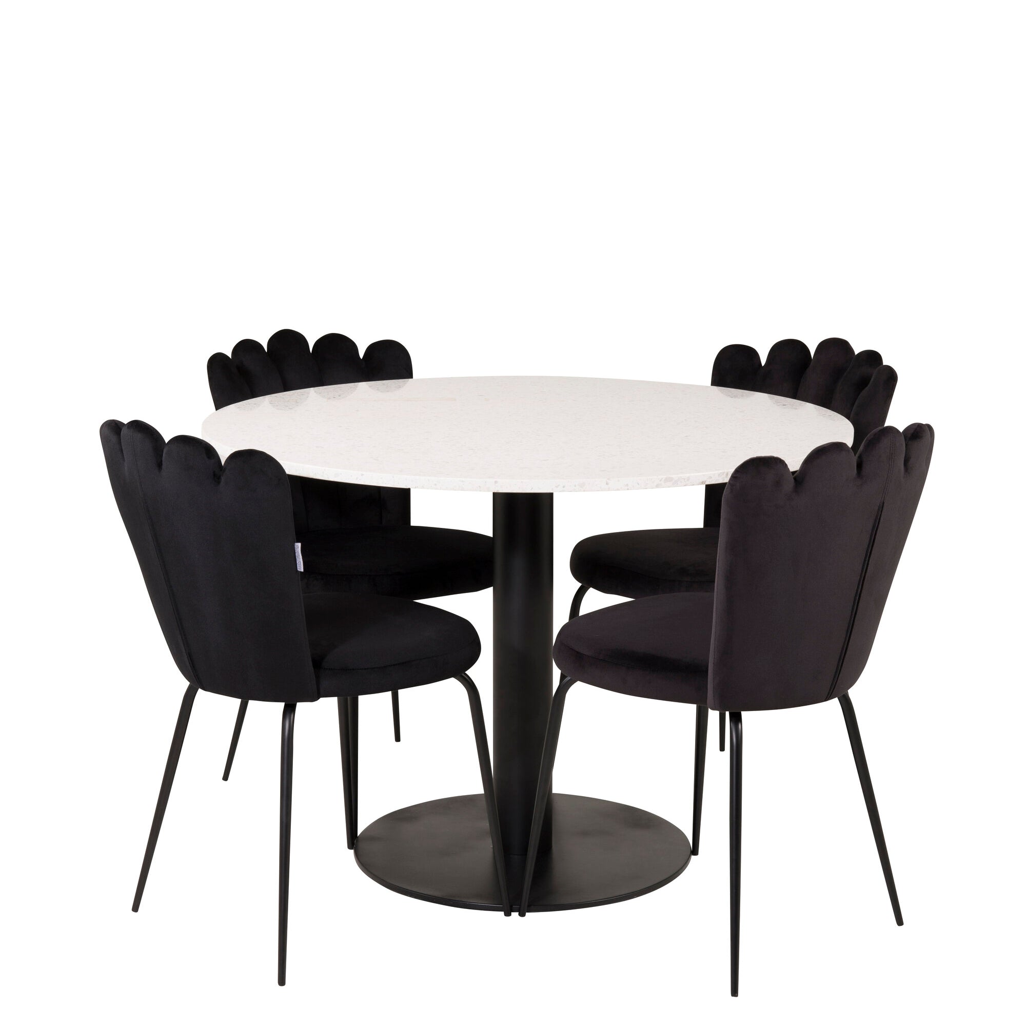 Razzia Jídelní stůl 106cm - White Terazzo / Black+Limhamn Light - Židle - Black Velvet_4